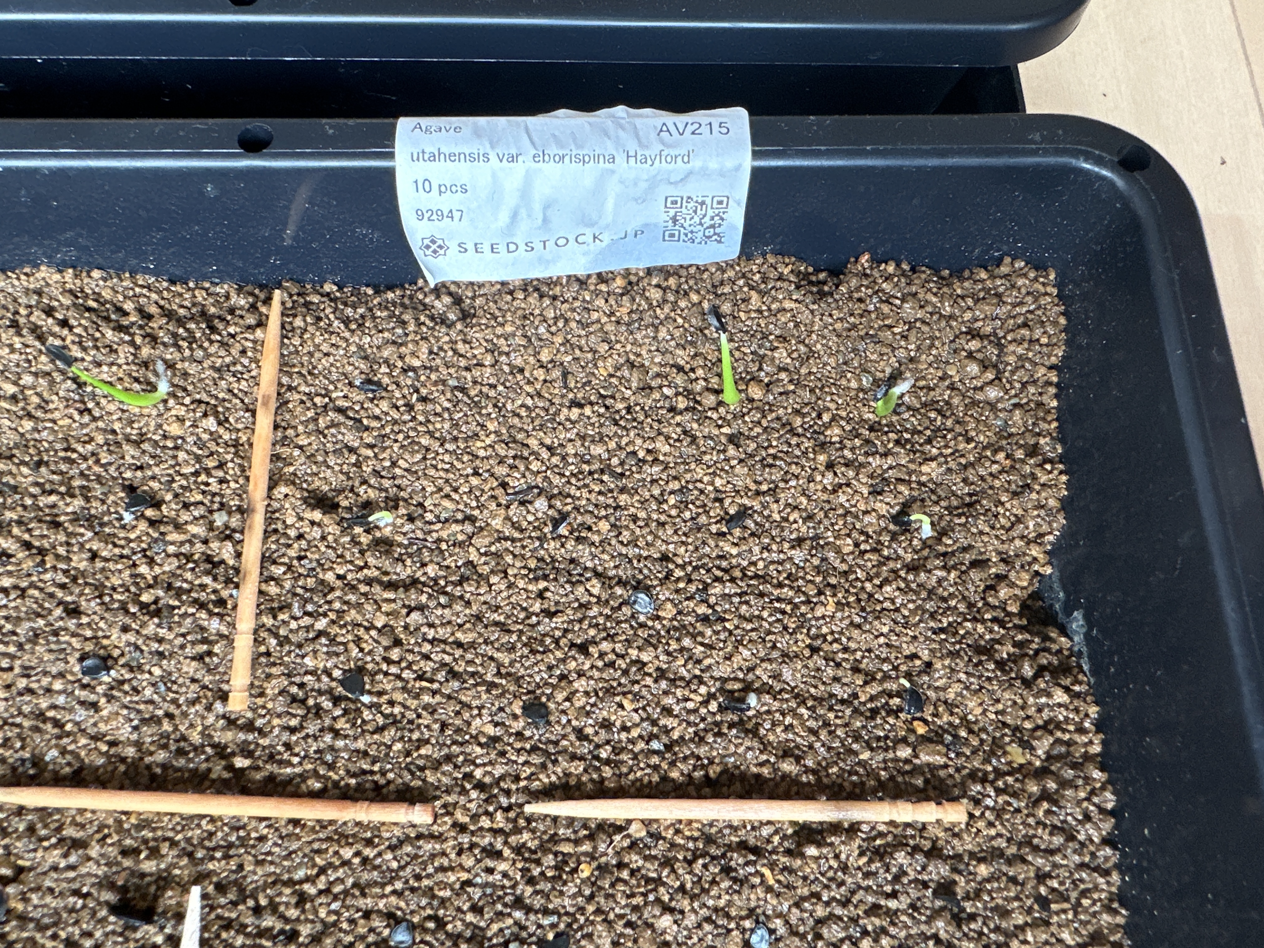 播種日:4/26撮影日:5/23発芽数:1/5粒特に前処理はせず、腰水にした赤玉土メインの用土へ刺し...