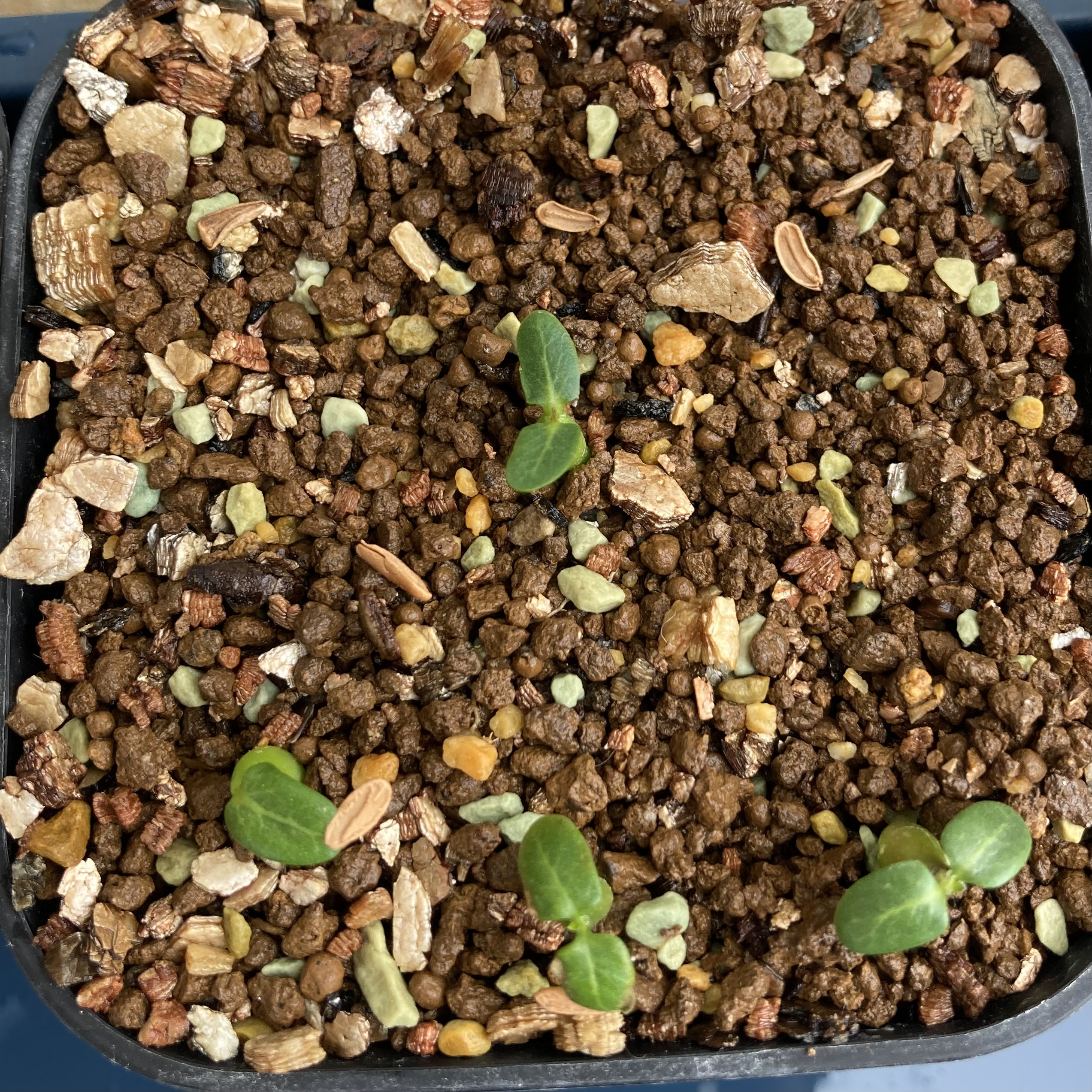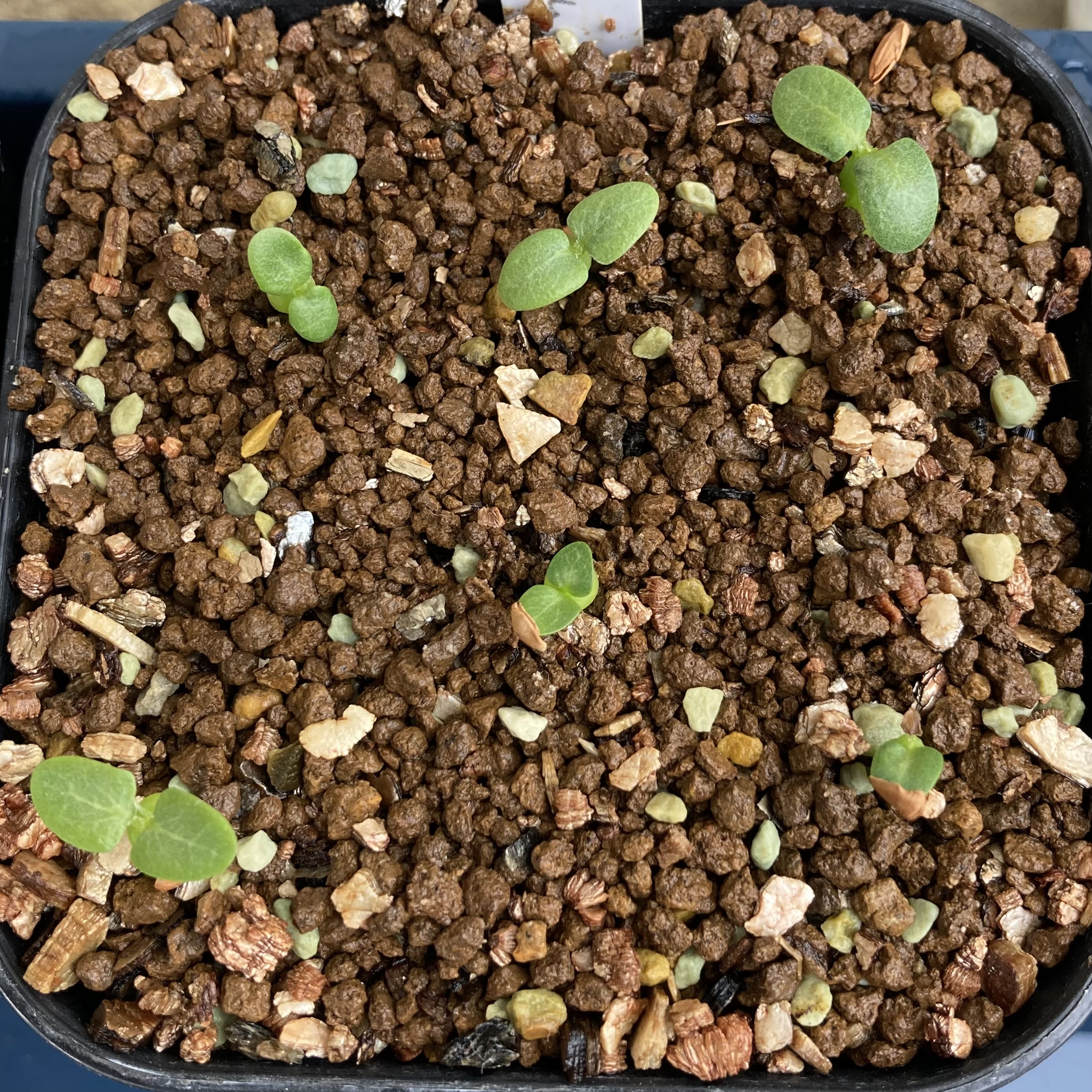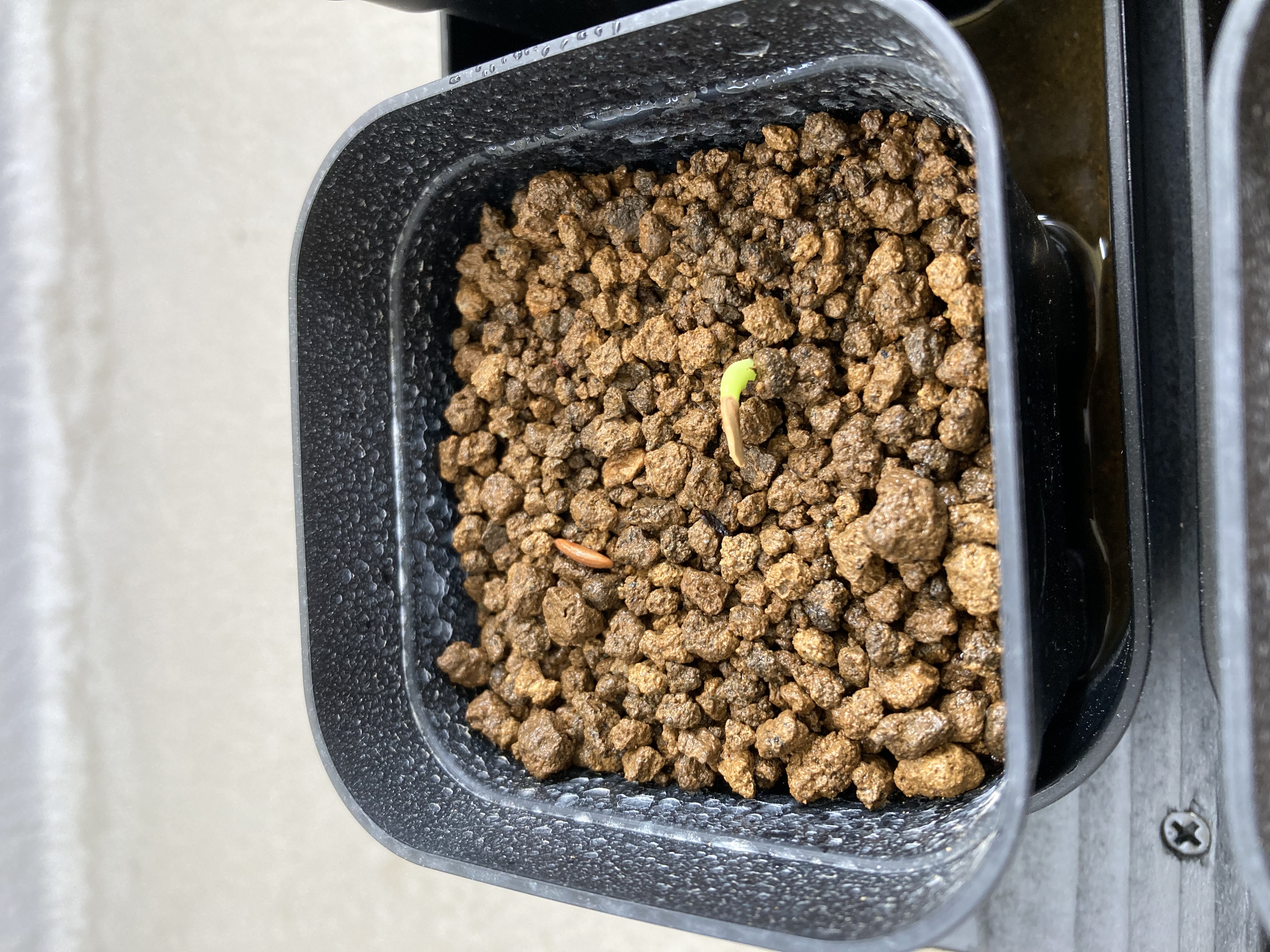 24/4/23播種、24/5/23撮影。播種から5日程で発芽。6粒中6粒発芽。下層は赤玉小粒、中層は...