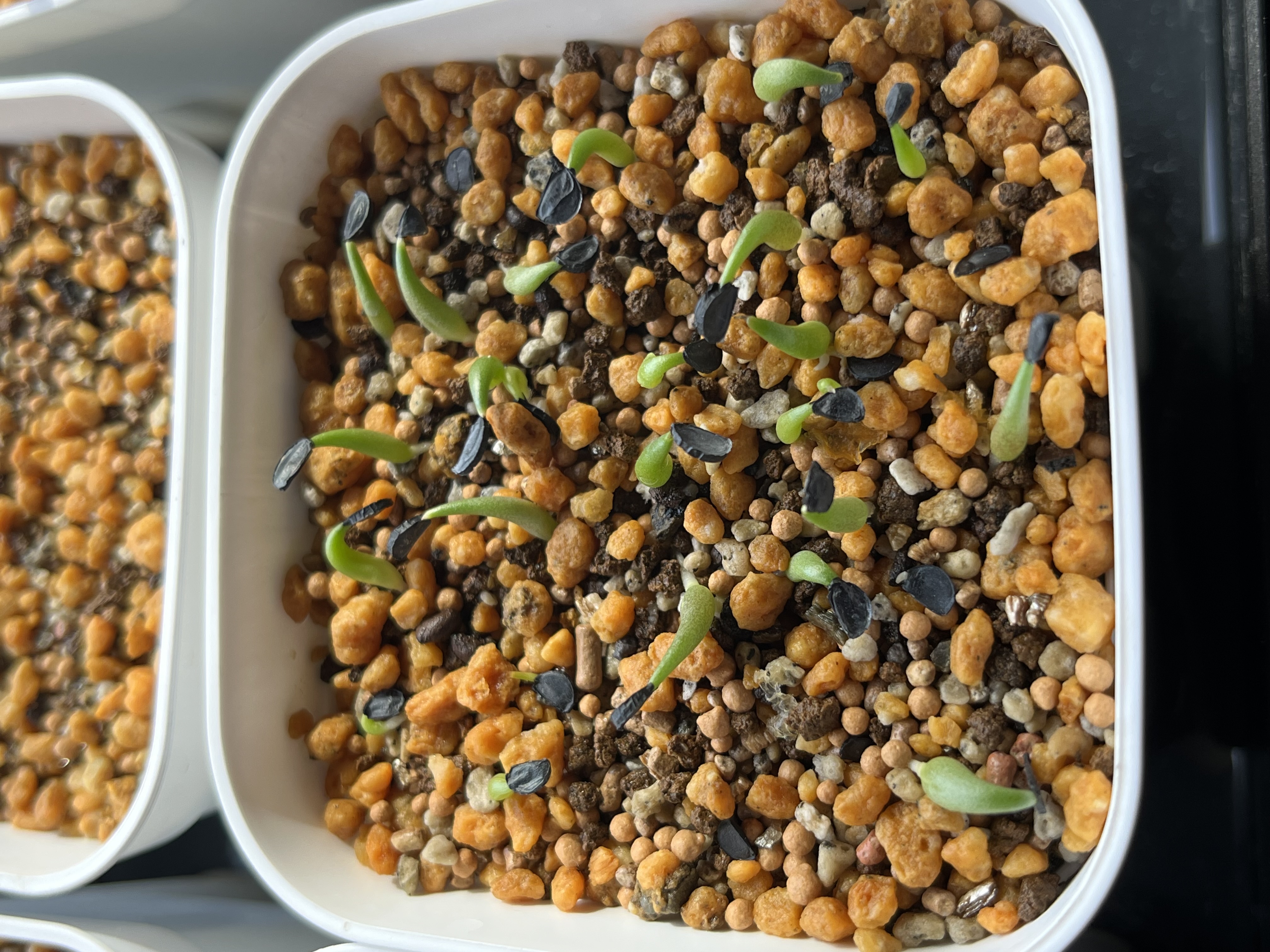 • 2024/5/4播種 2024/5/10撮影[ 播種数 / 発芽数 ] 12粒/ 8粒播種前にダコ...