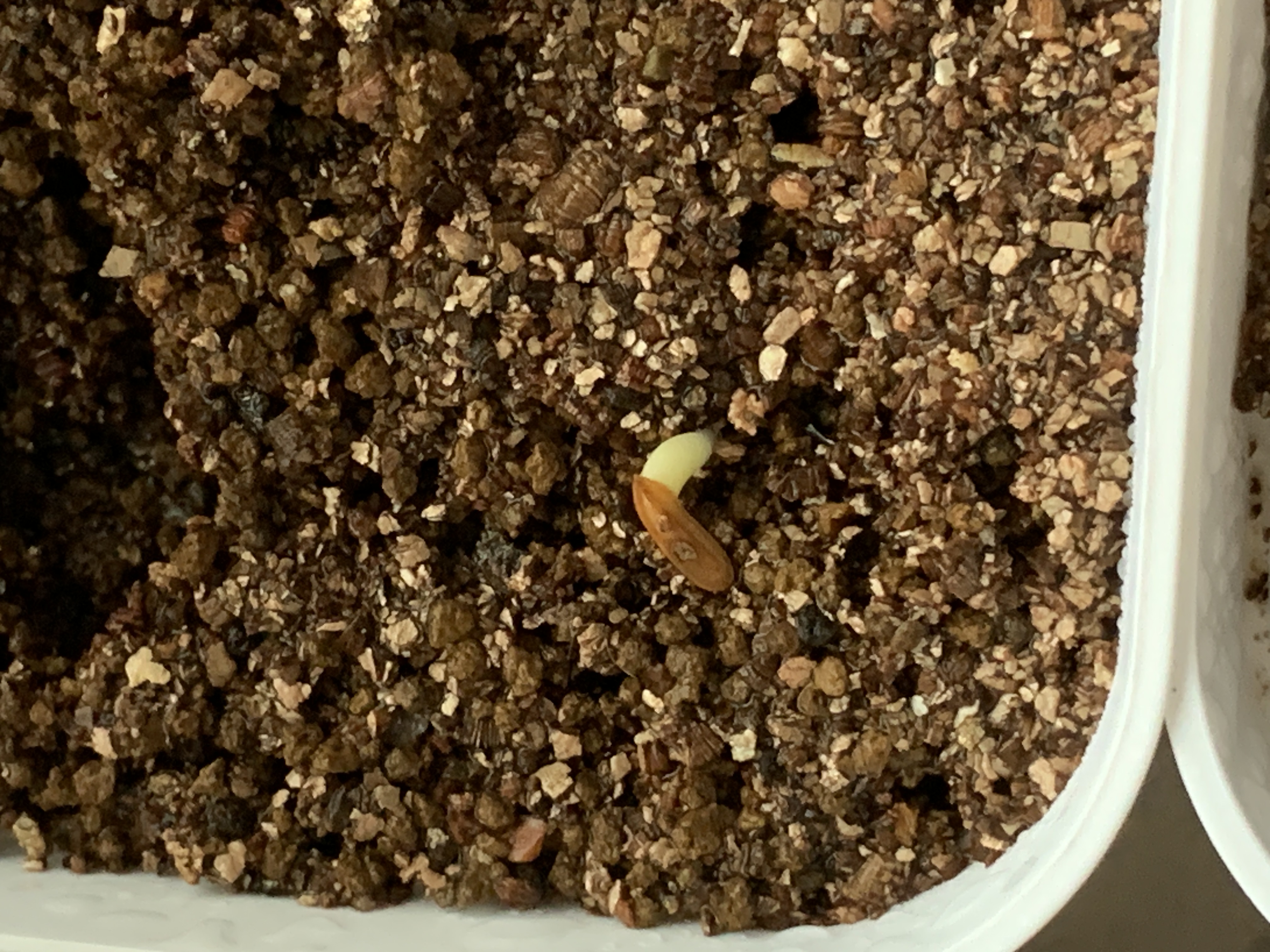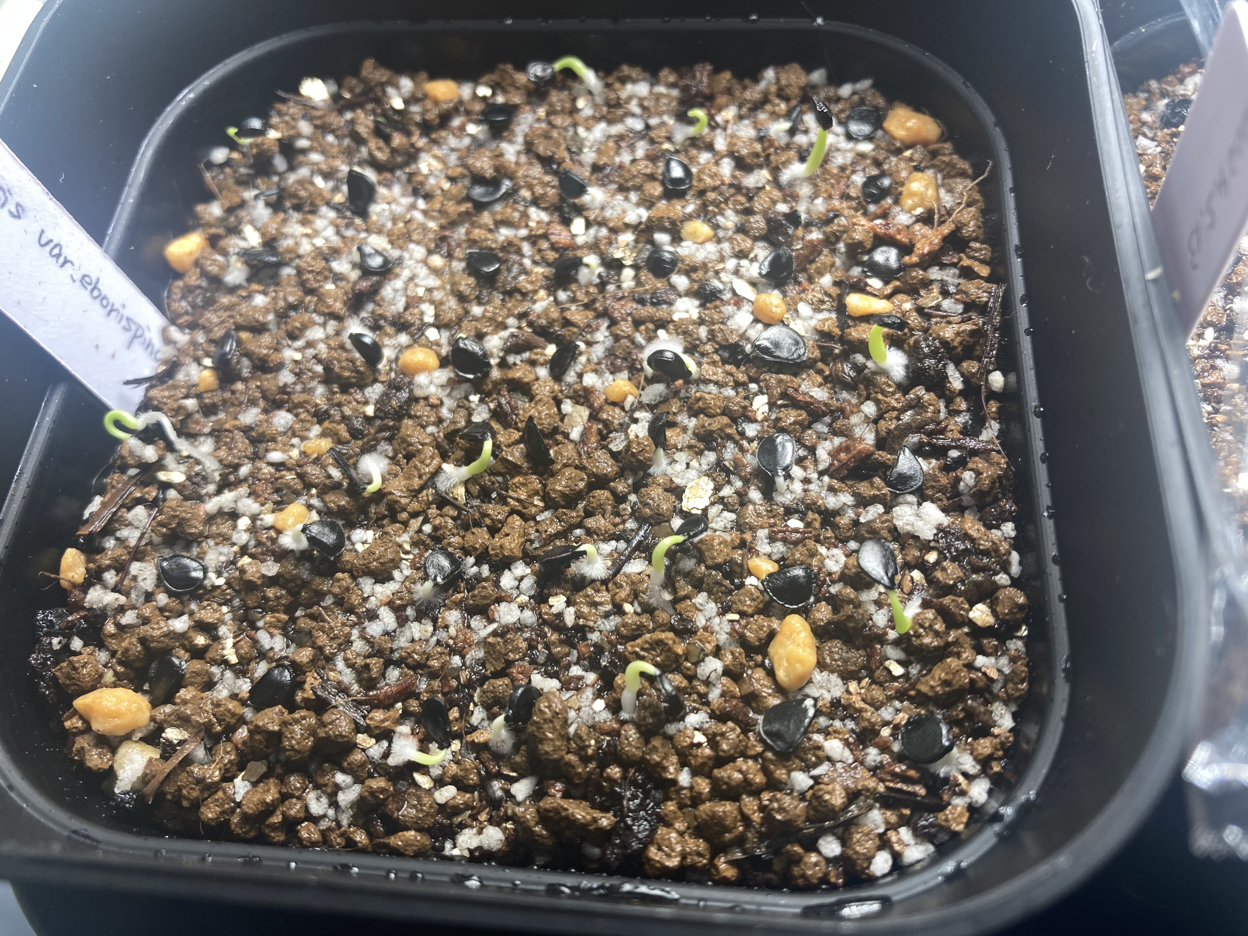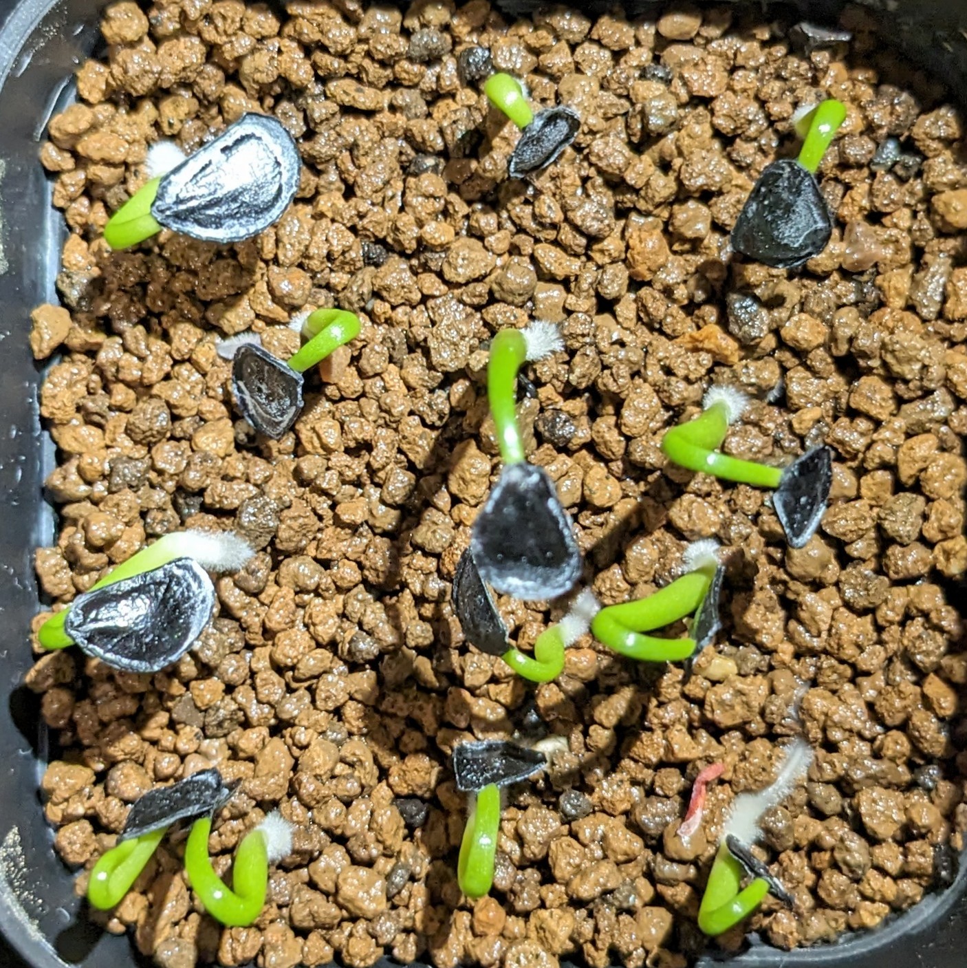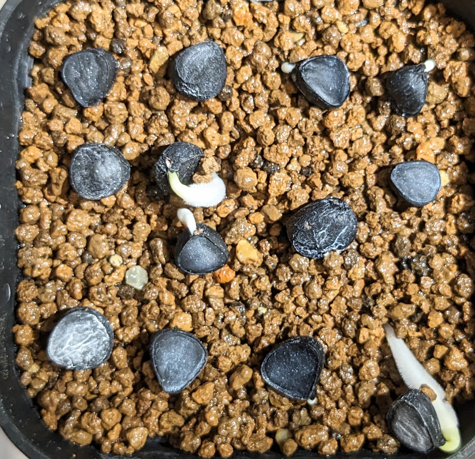 播種日5月13日2024/5/16撮影播種2/1乾いた種子の状態で蓋をあけその後メネデールを入れた水...