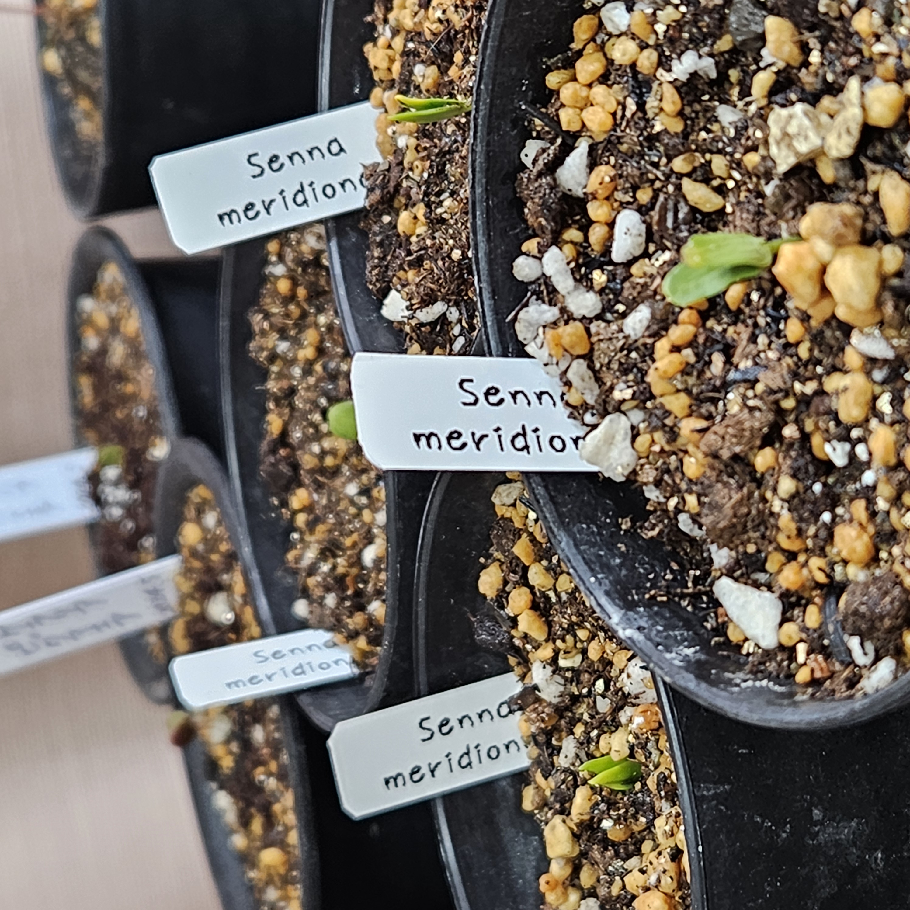 播種5月8日 撮影5月17日播種数6粒 発芽6粒種が届いた日にセンナメリディオナリスの尖った方を少し...