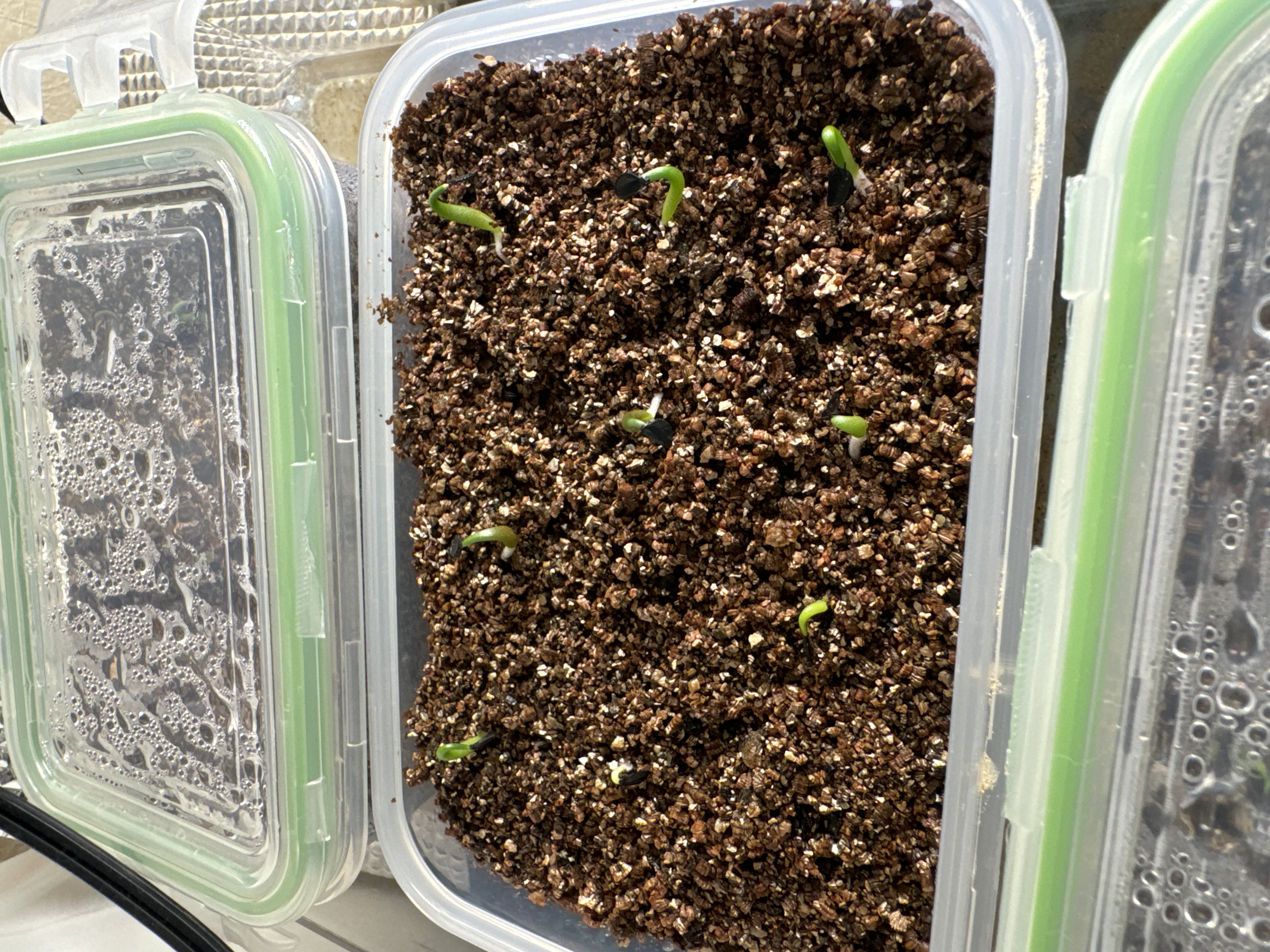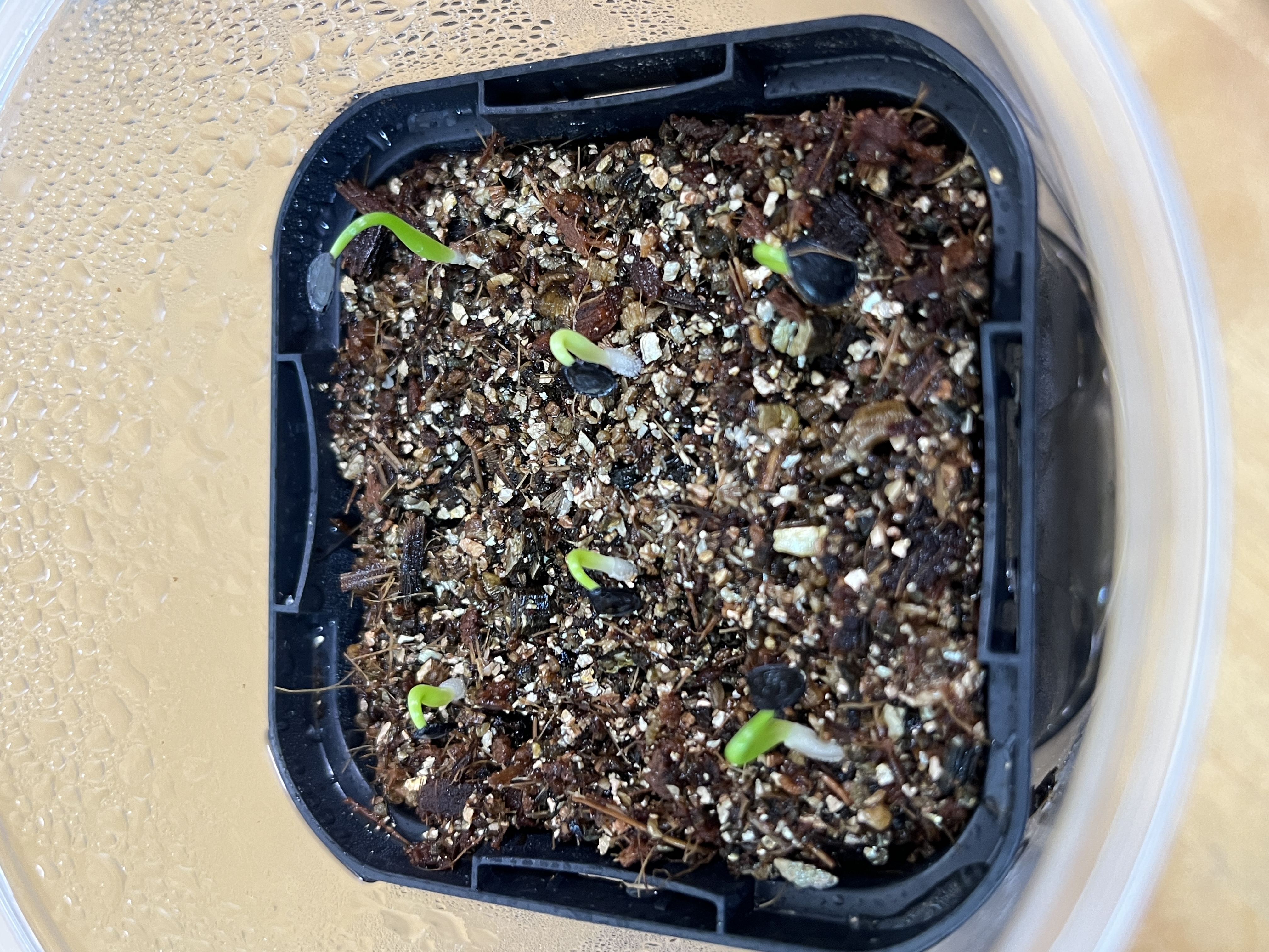 2024/4/5播種 5/10撮影播種10粒 発芽6粒ルートン6時間くらいつけ。蓋取り外し。メネデー...