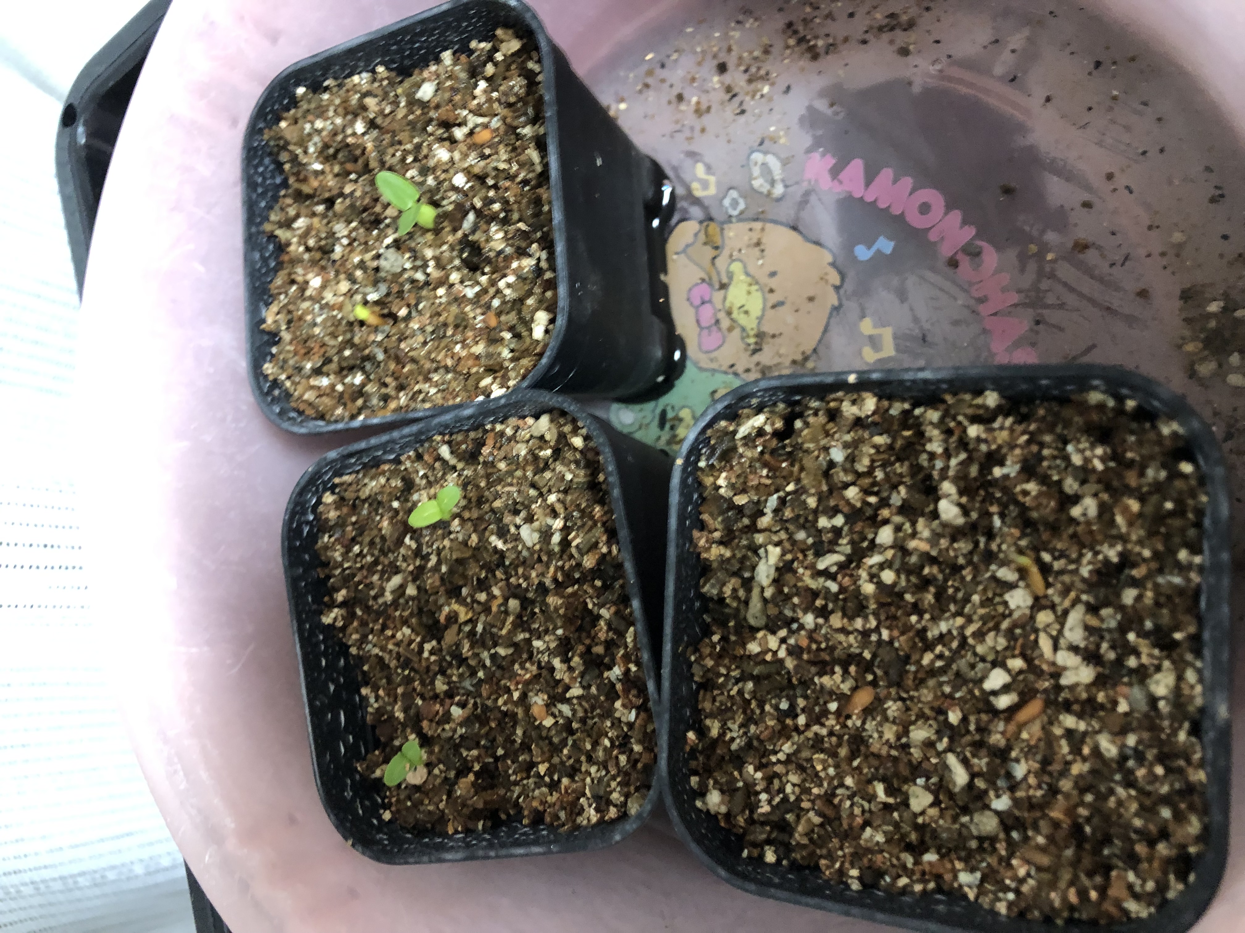 播種日 2024/5/5撮影日 2024/5/8播種数50粒発芽10粒赤玉中粒を底に敷き、芝の目土の...