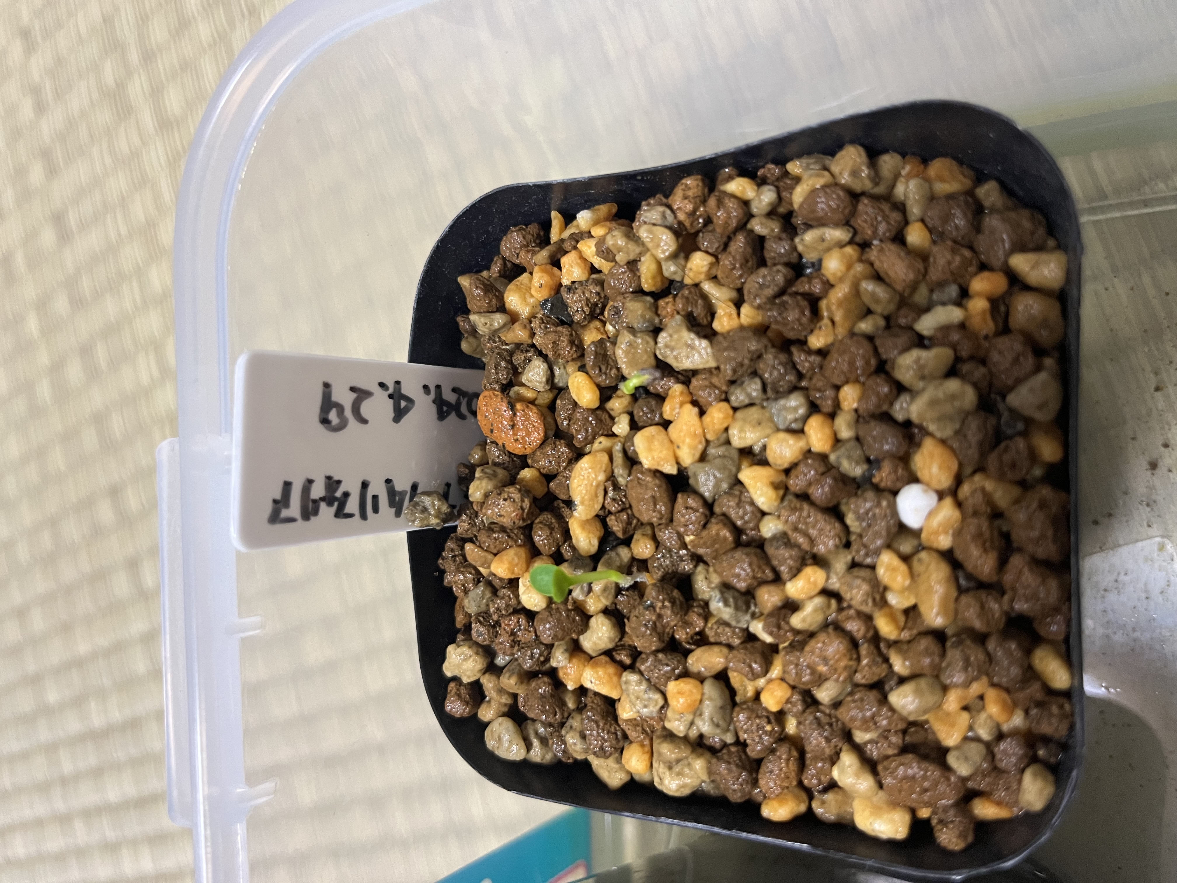 播種日 2024/5/5撮影日 2024/5/8播種数50粒発芽10粒赤玉中粒を底に敷き、芝の目土の...