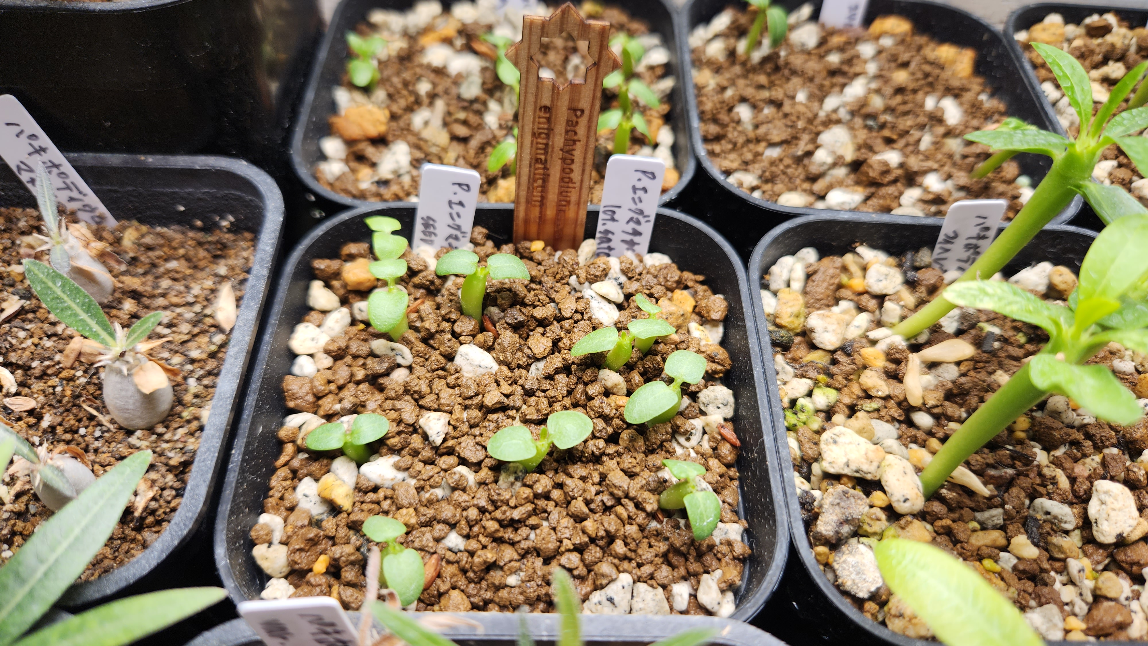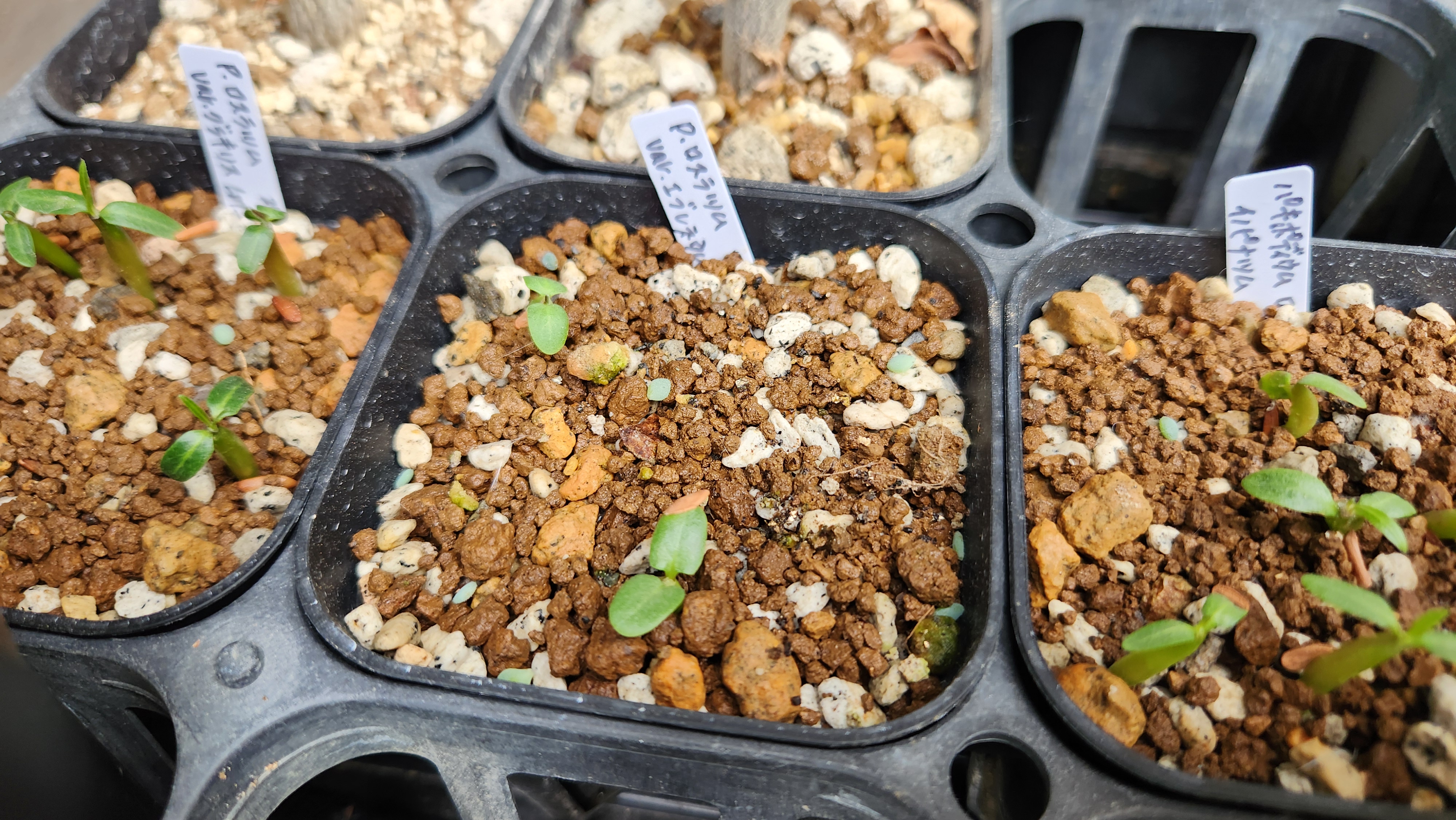 • 24/03/28播種24/05/05撮影4粒/6粒発芽赤玉軽石半々、腰水、加温あり発芽まで時間かかっ...