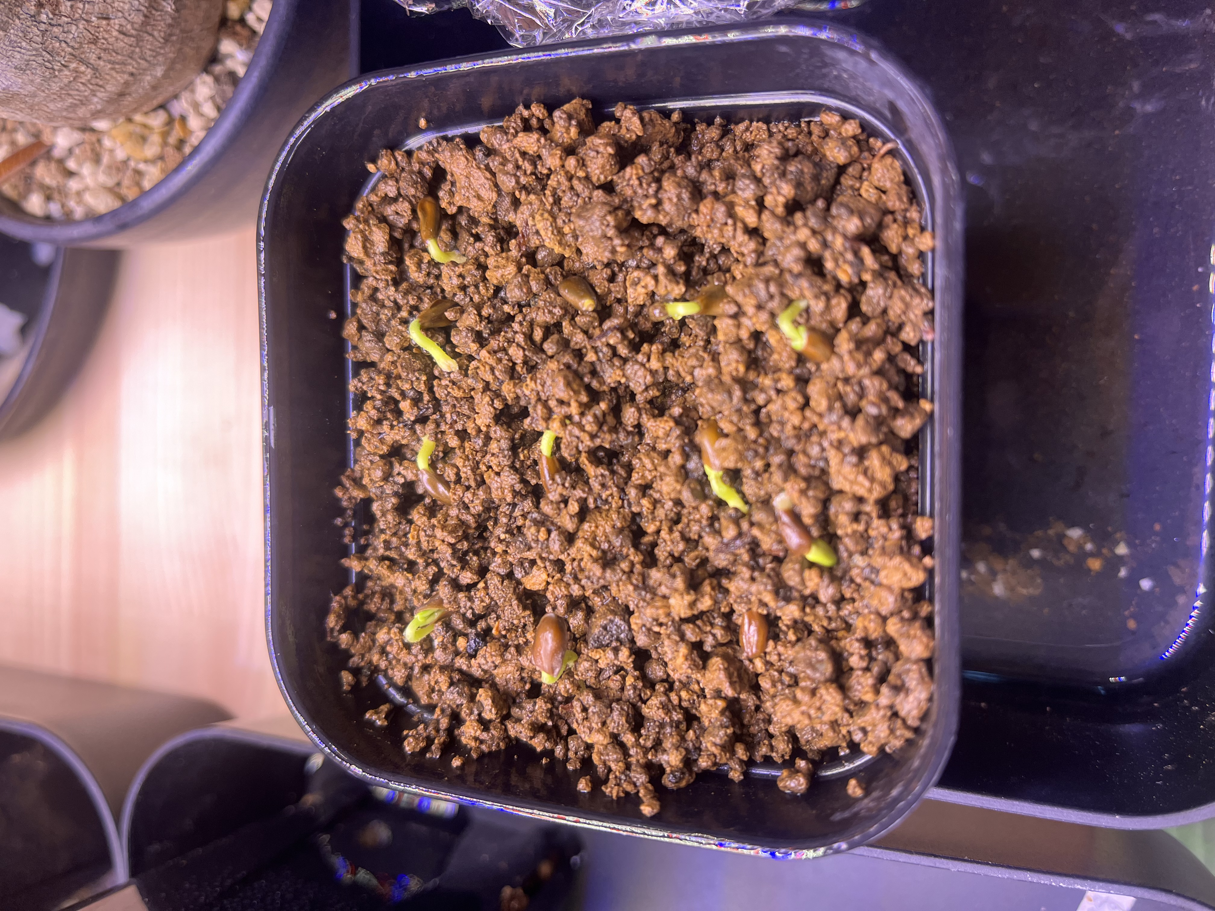 • 2024/4/7播種2024/5/2撮影6粒/10粒発芽モニターでもらった。ダコニール+メネデールに...