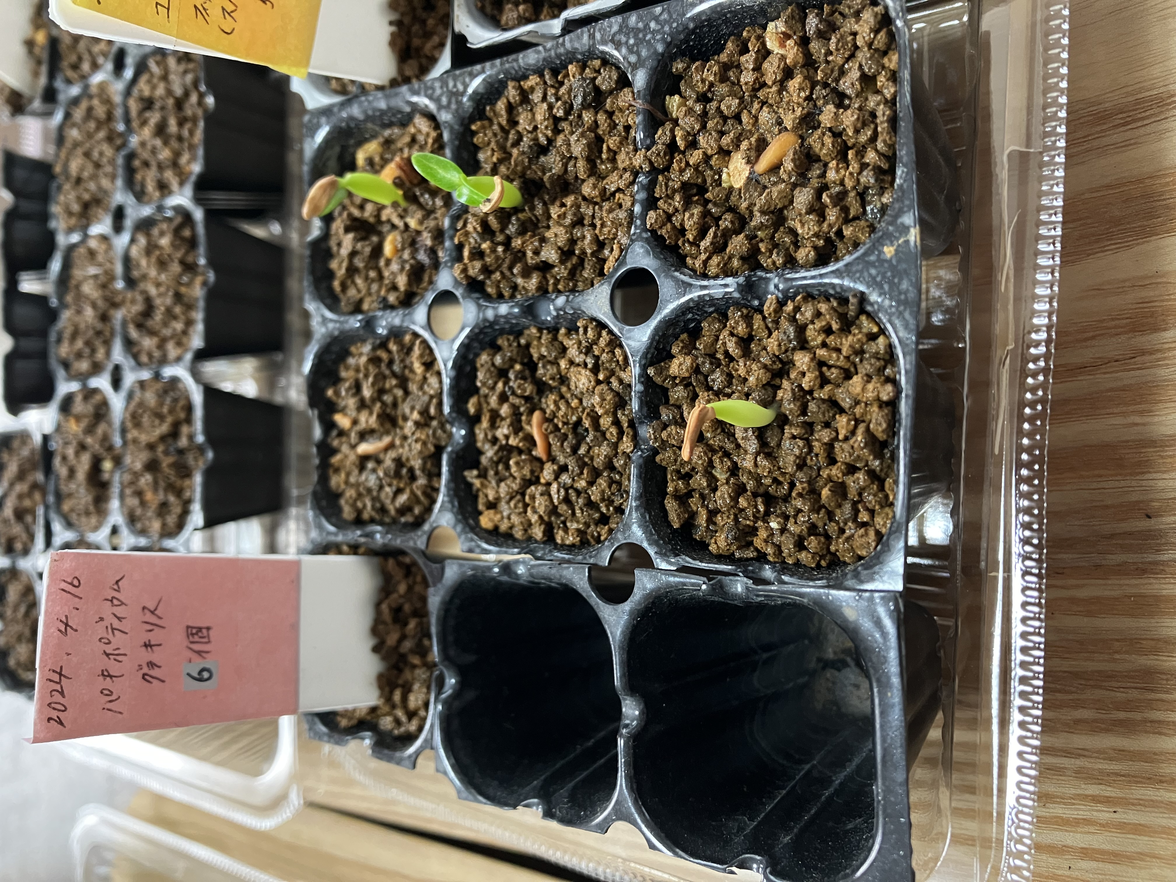 • 2024/4/7播種2024/5/2撮影10粒/12粒発芽ダコニール+メネデールに9hスリットプラ鉢...