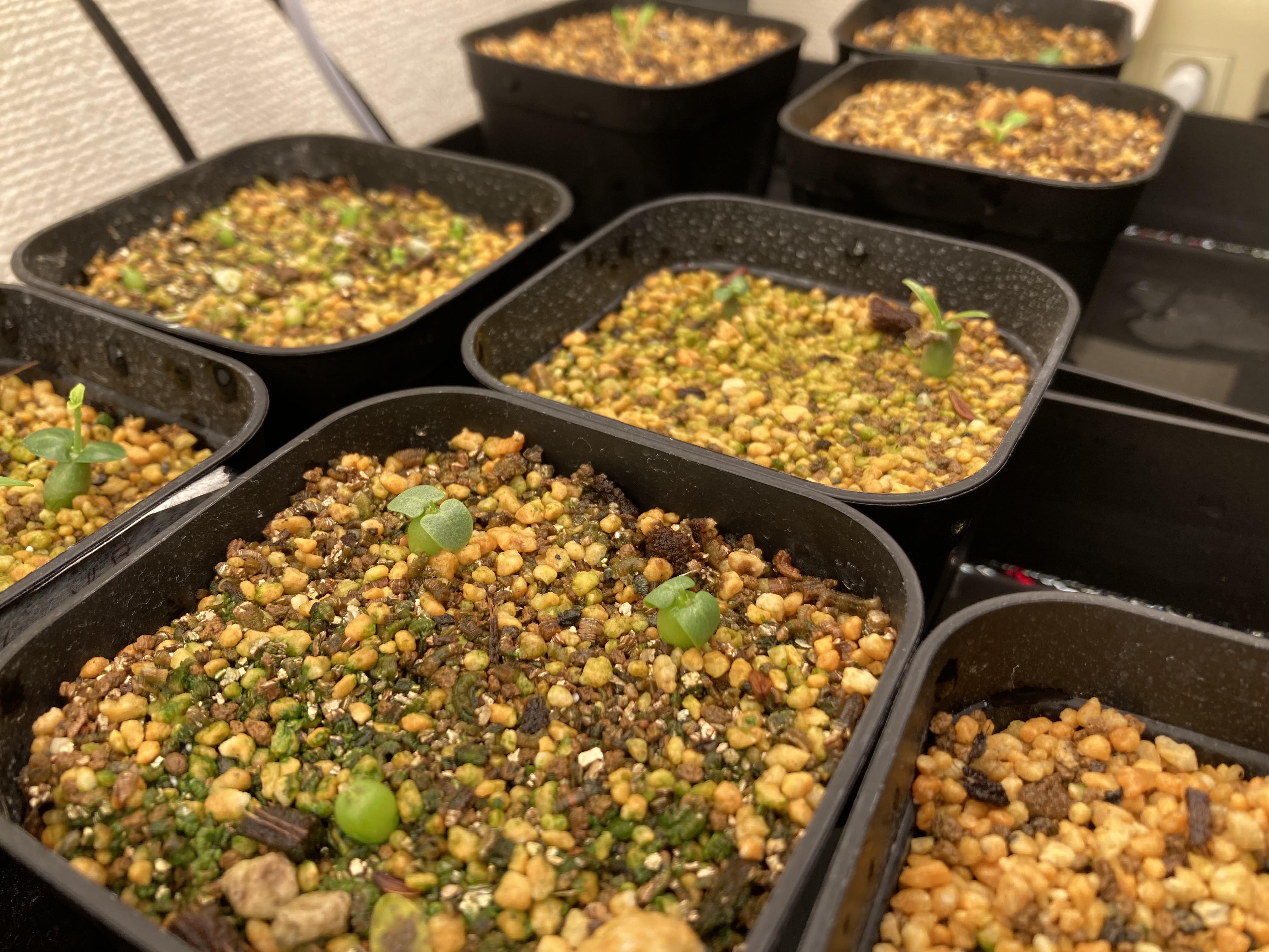 • 2.14播種、5.1撮影発芽率は50%程度だったが発芽したものは順調に成長中...
