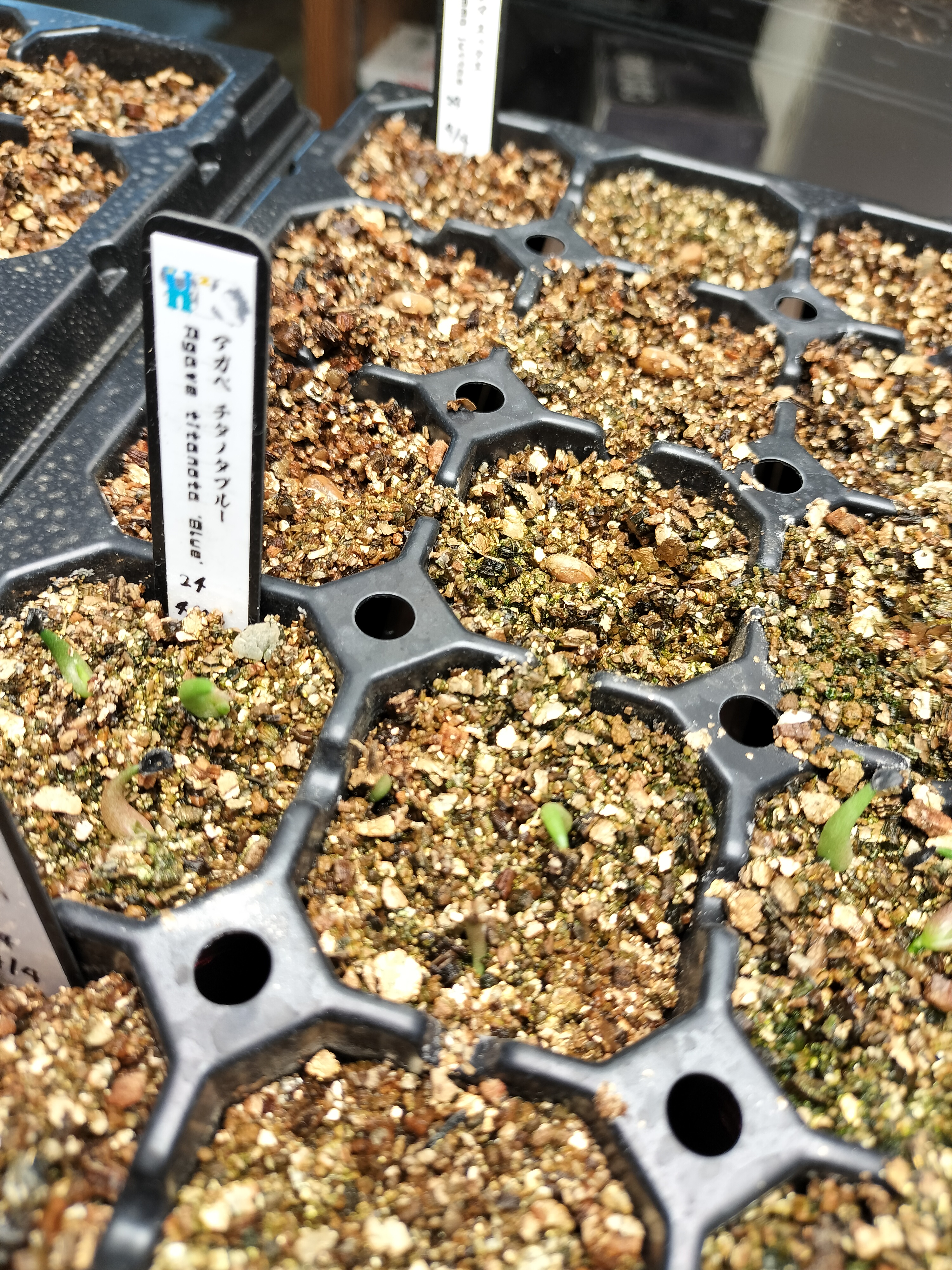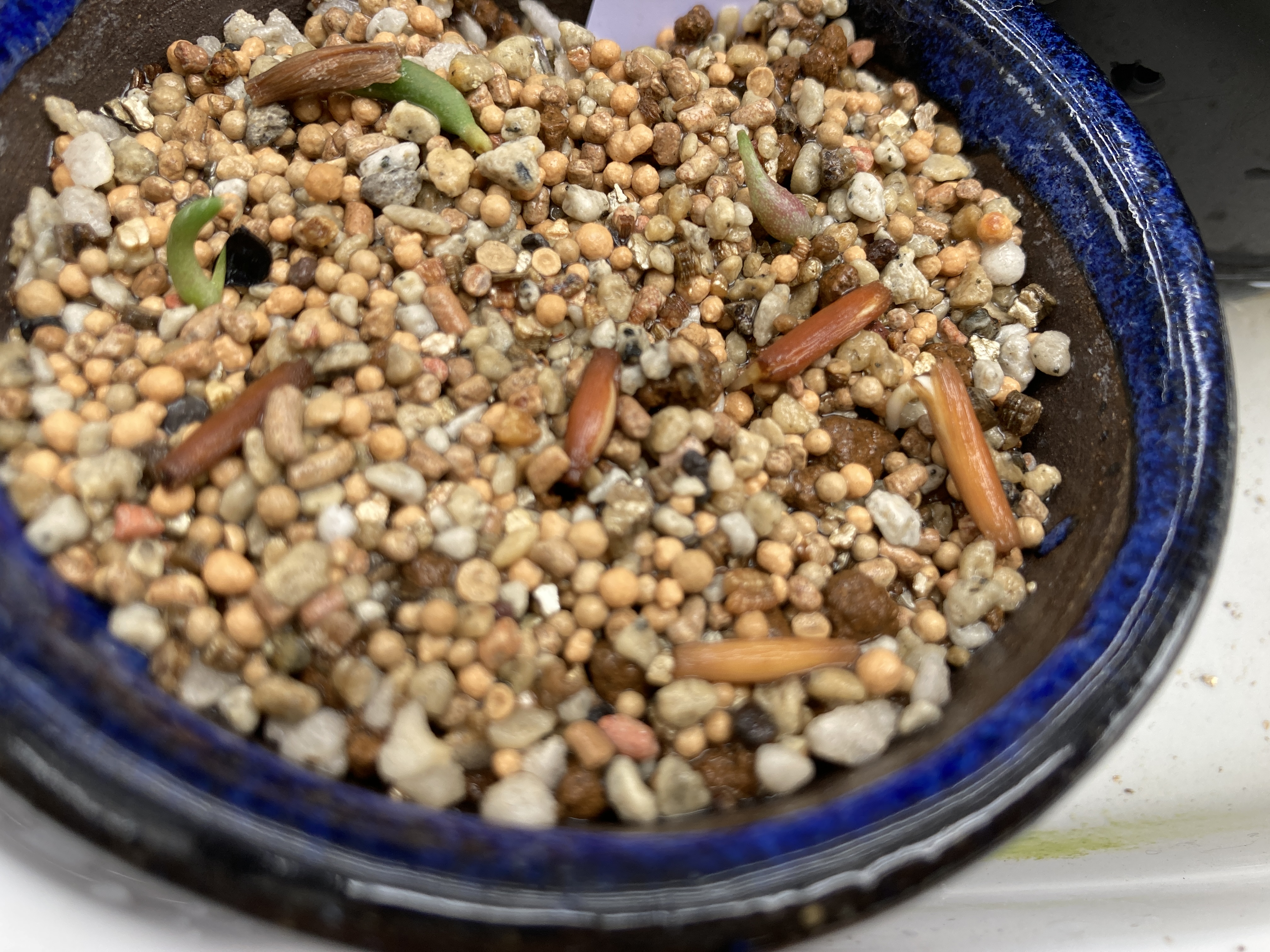 4月中旬播種、赤玉メインの用土、メネデール溶液使用