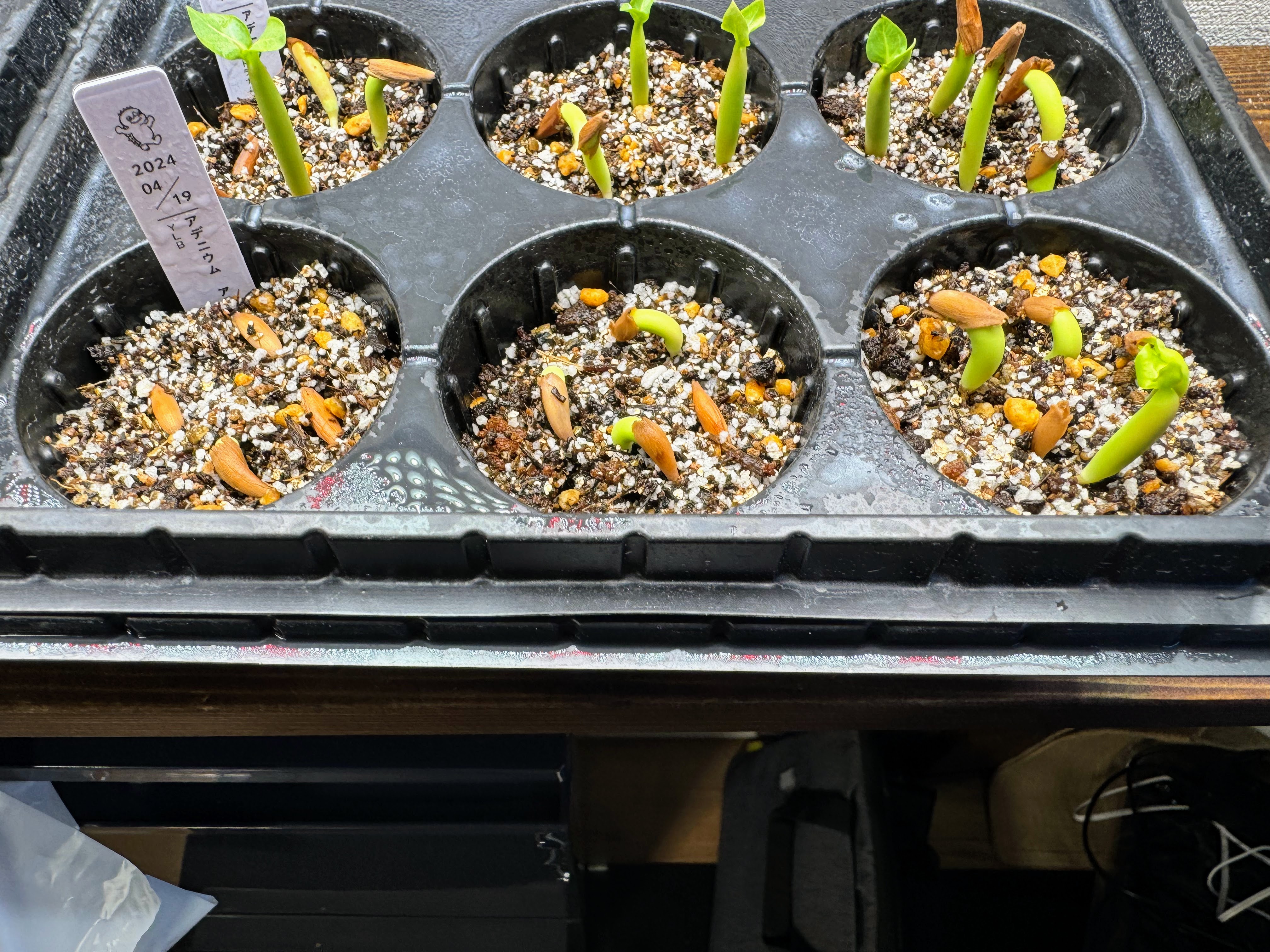 [ 播種日 / 撮影日 ]2024/4/24播種 2024/4/30撮影3日で発芽[ 播種数 / 発...