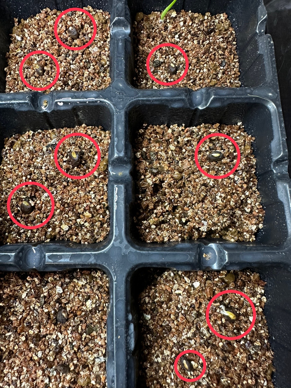 • 2023年10月15日播種2024年4月27日撮影メネデールとベンレートの液に8時間ほど浸けてから播...