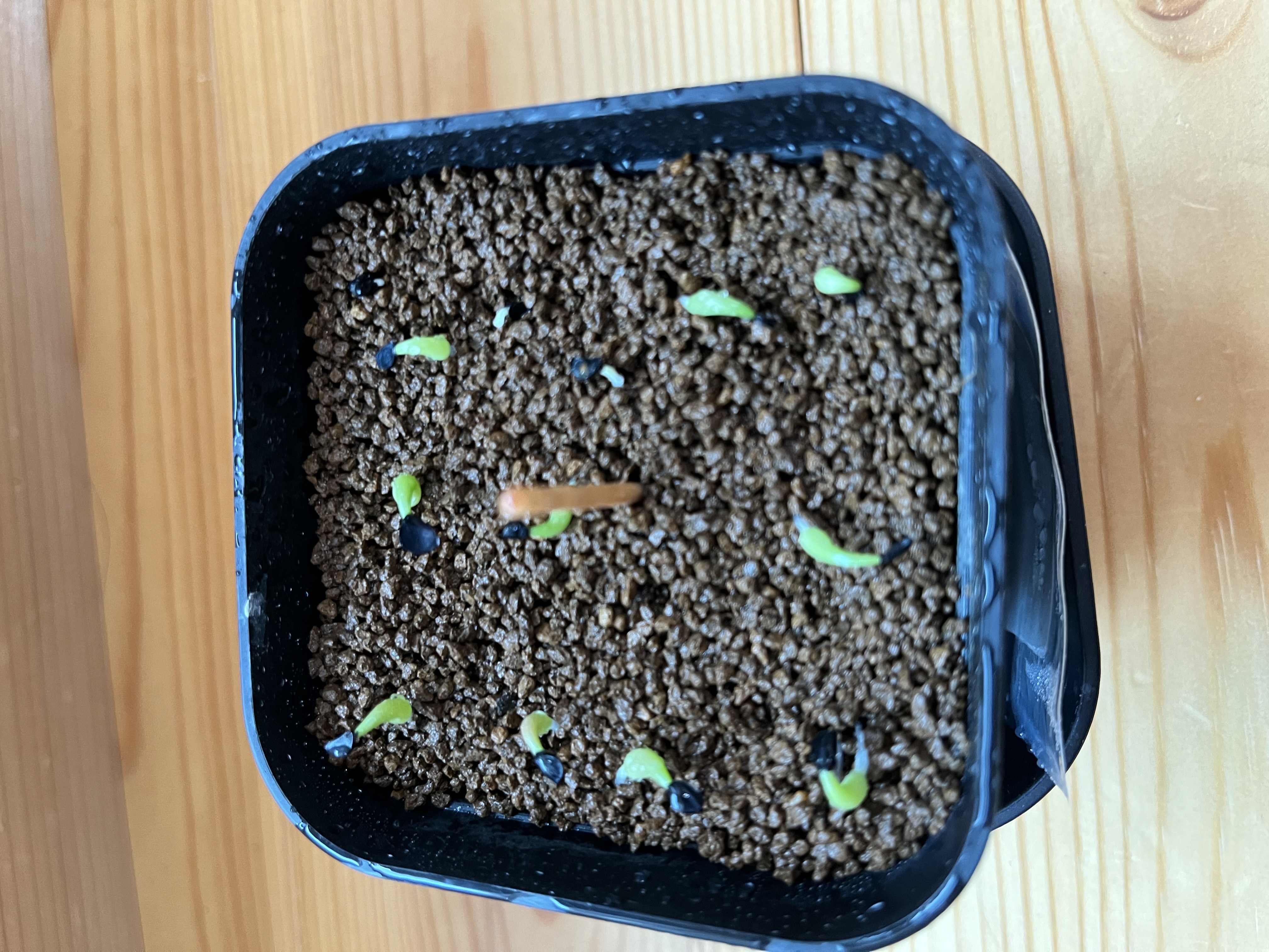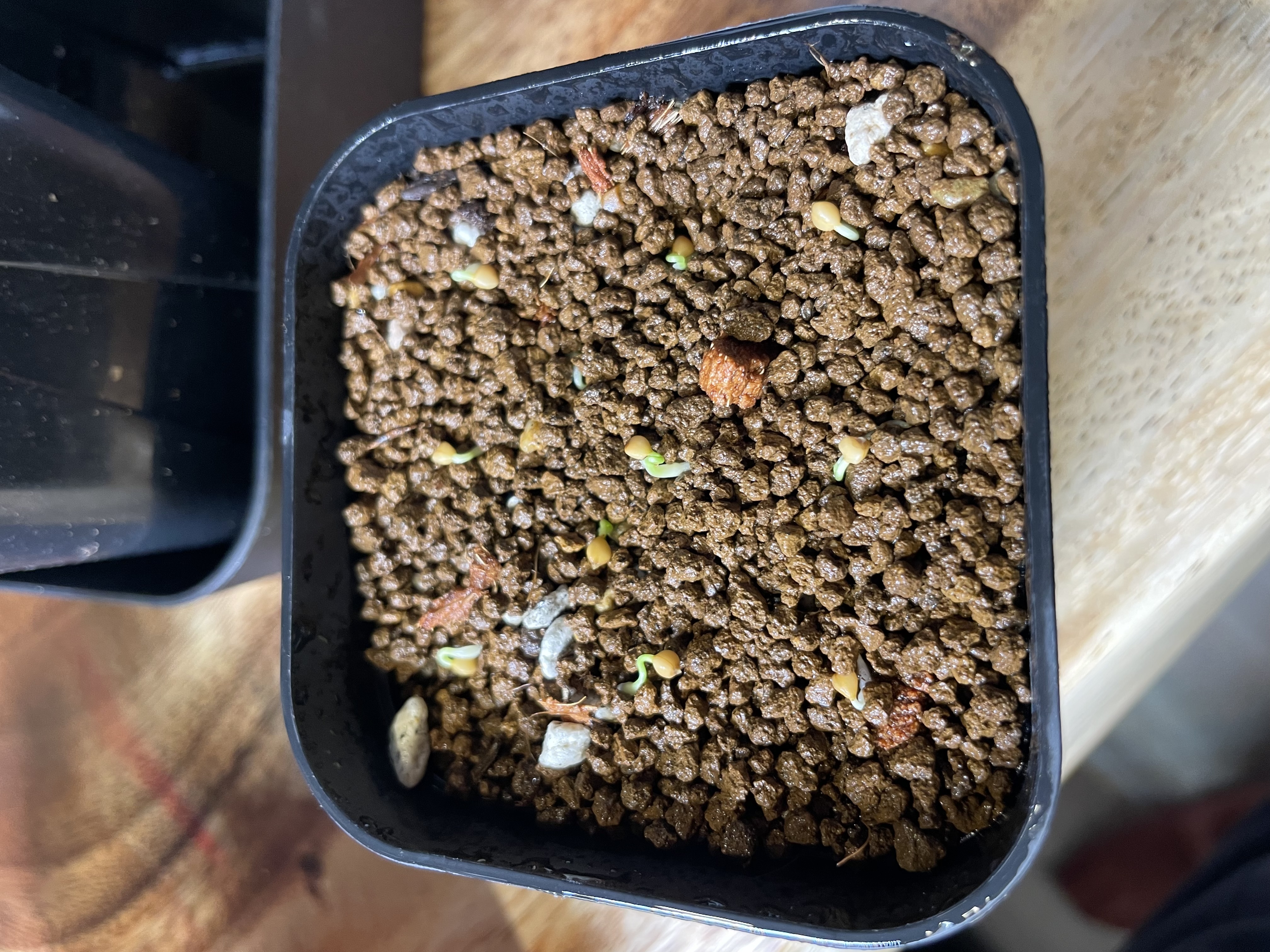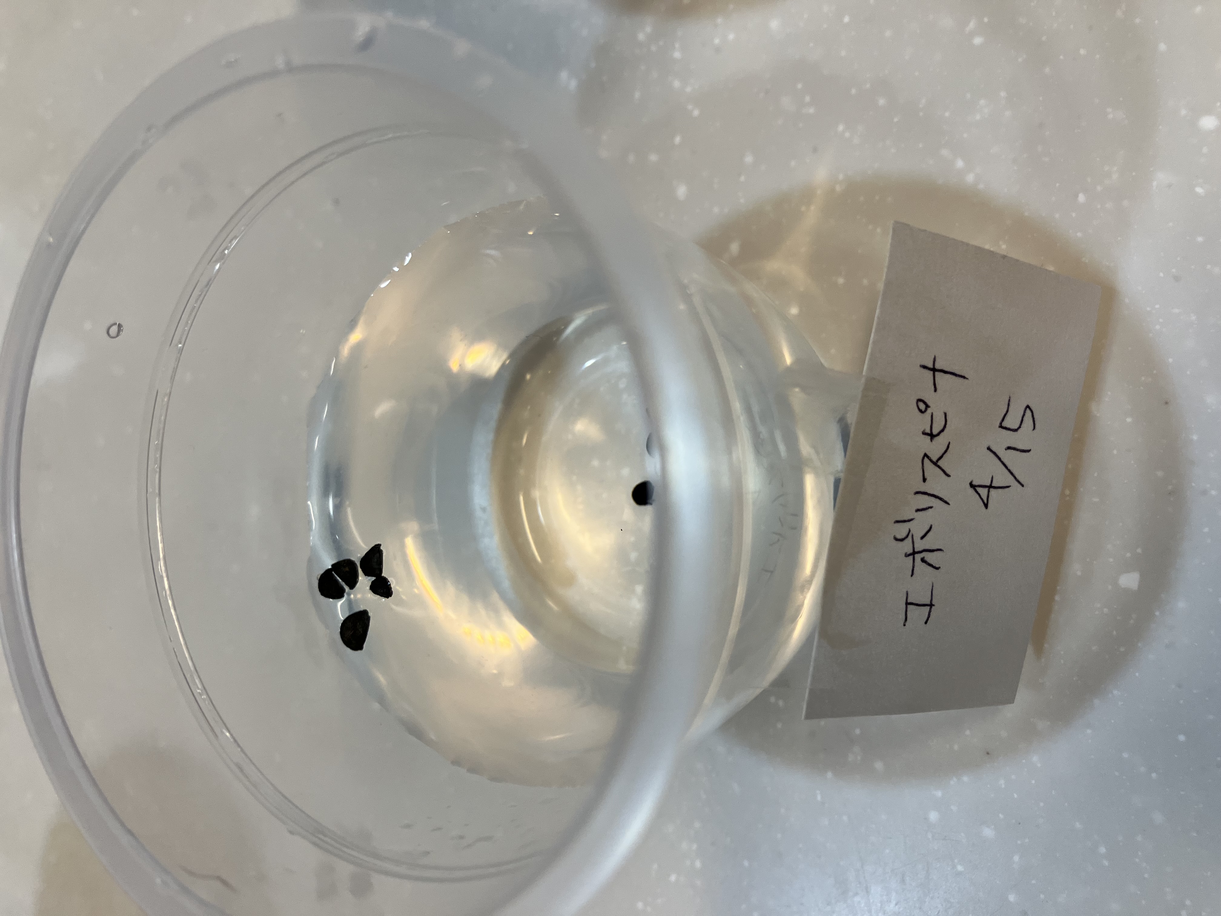 • 2024/4/15 播種。2024/4/15 撮影。メネデールに4時間浸漬。腰水管理開始。さし芽土使...