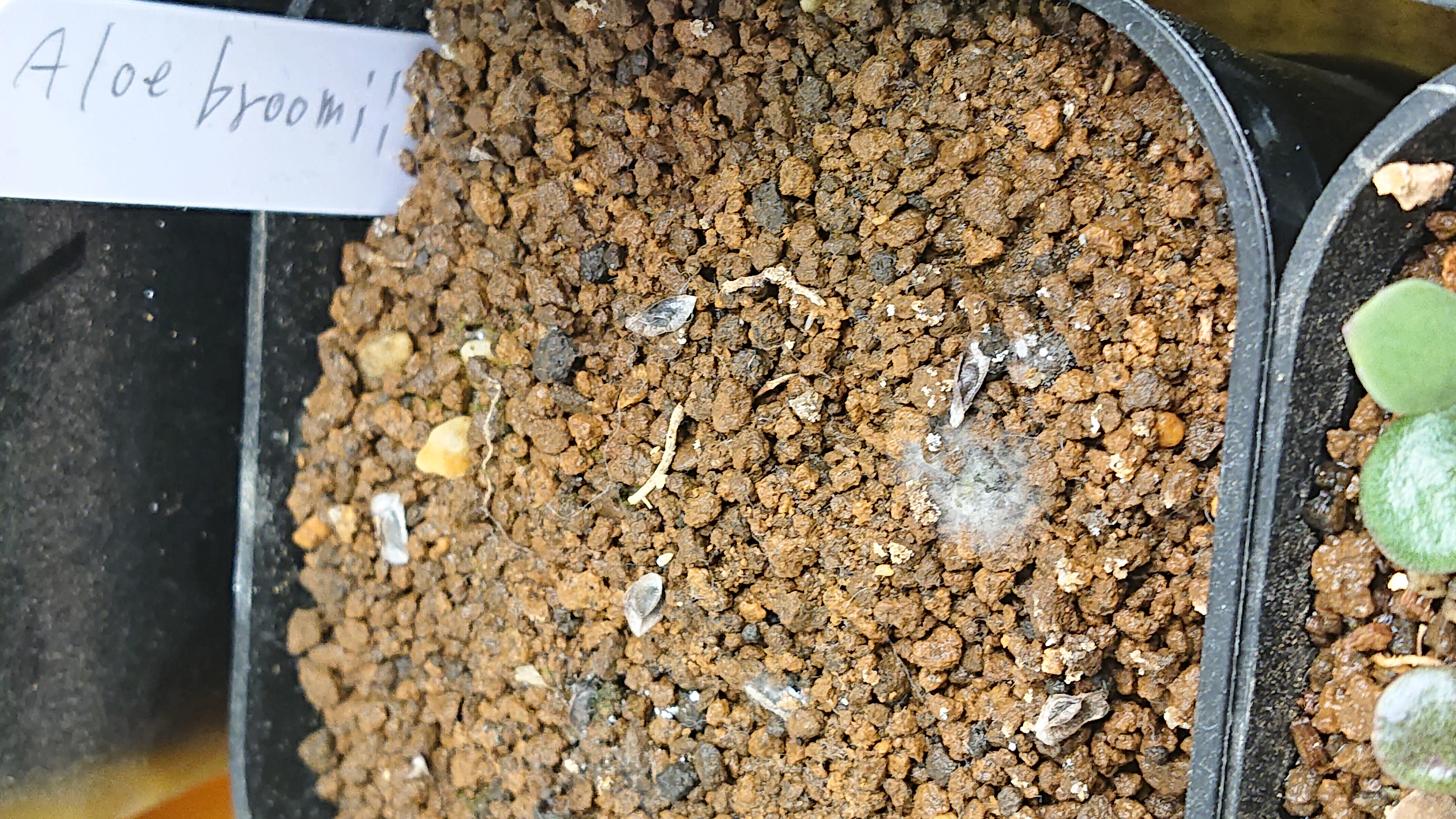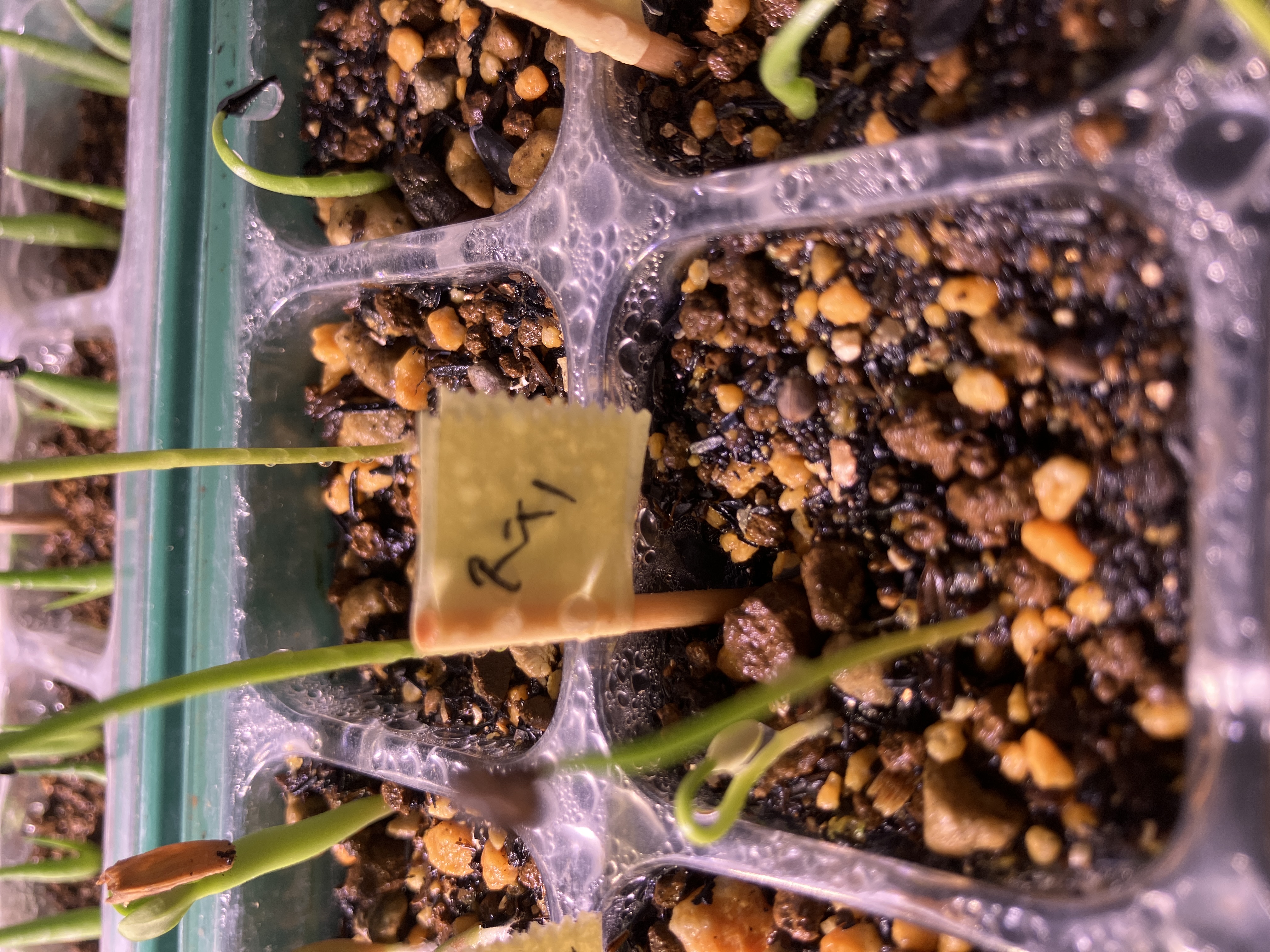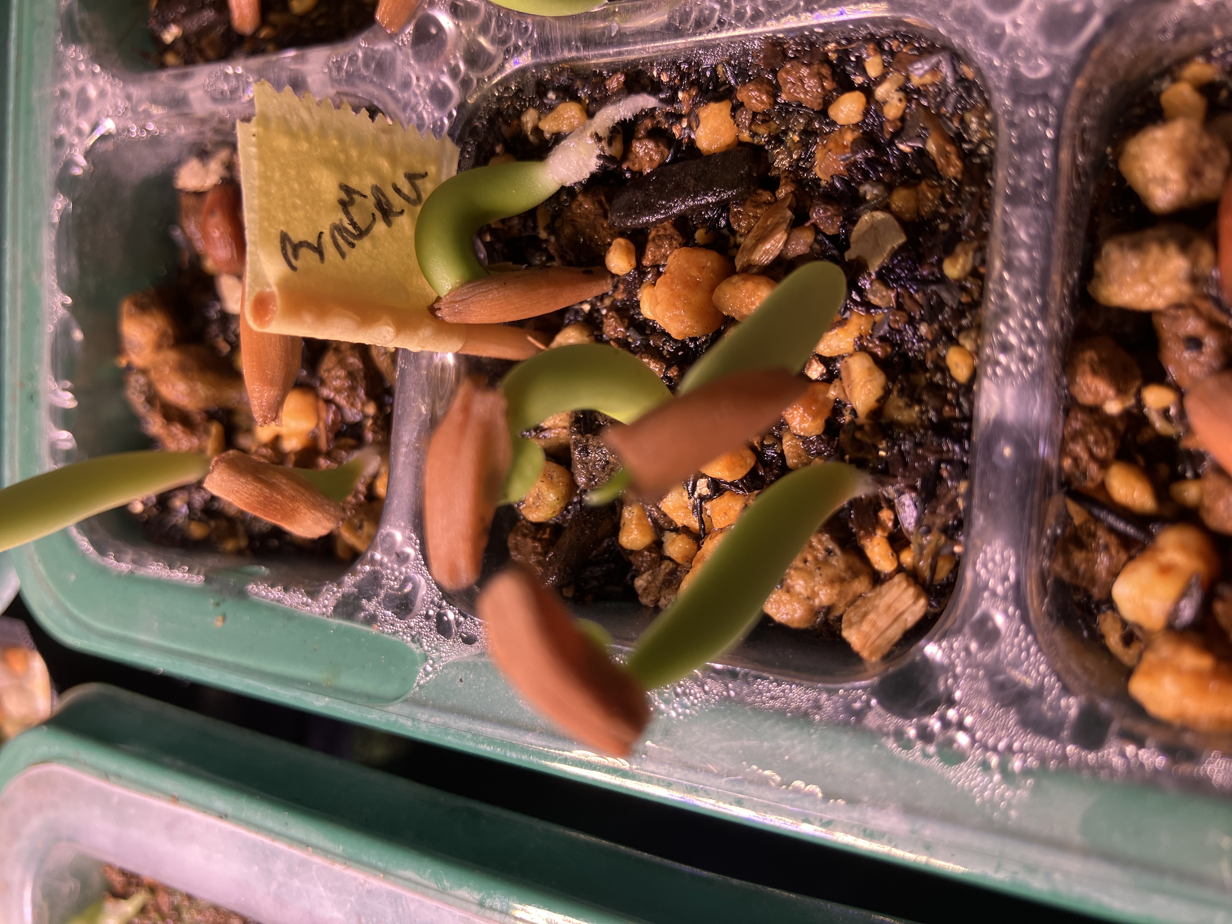 • 2024.4/4播種4/7撮影5粒/4粒発芽播種前ベンレート溶液に1日浸漬小粒赤玉を下、バーミキュラ...