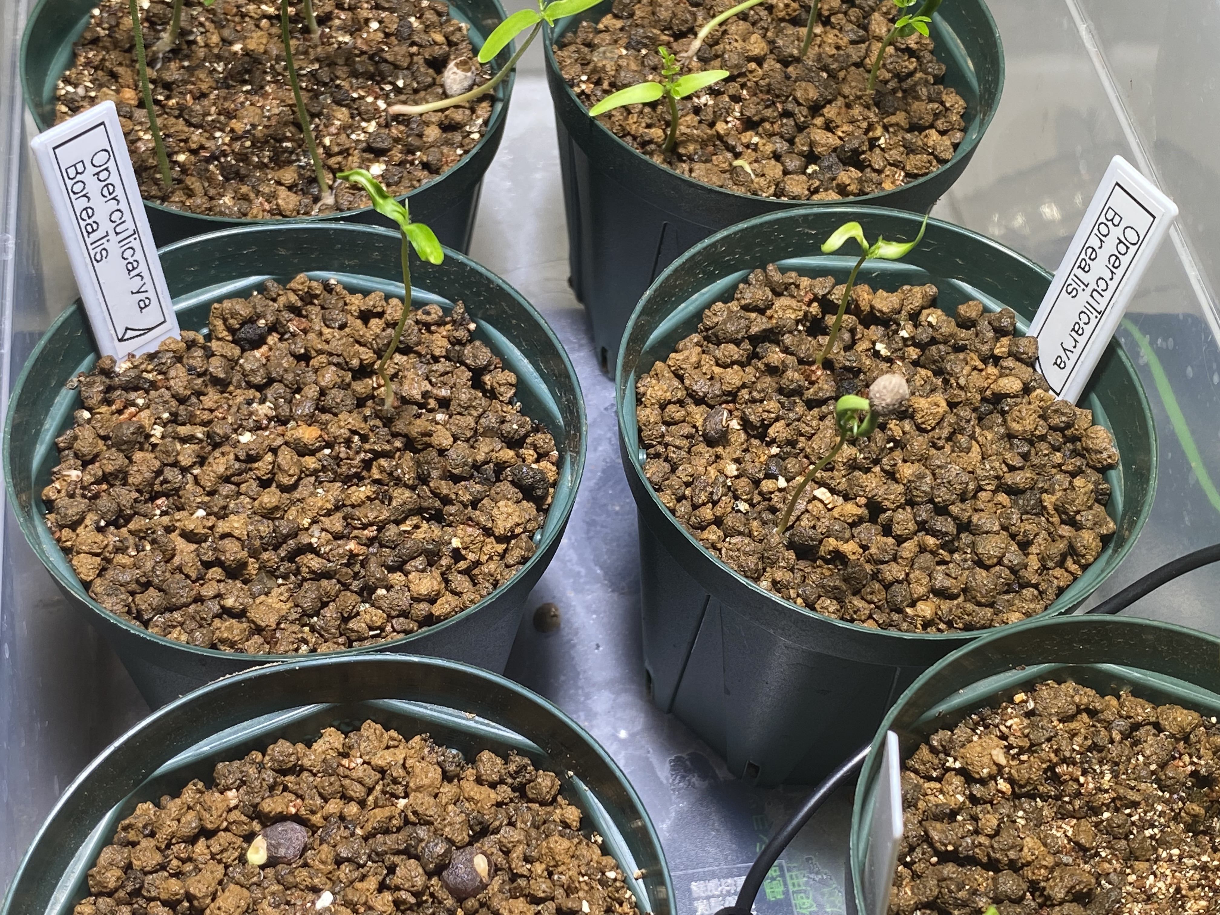 播種日:2024/3/30撮影日:2024/4/910粒中3粒発芽、蓋を外す際に胚を傷付けたのか、デ...