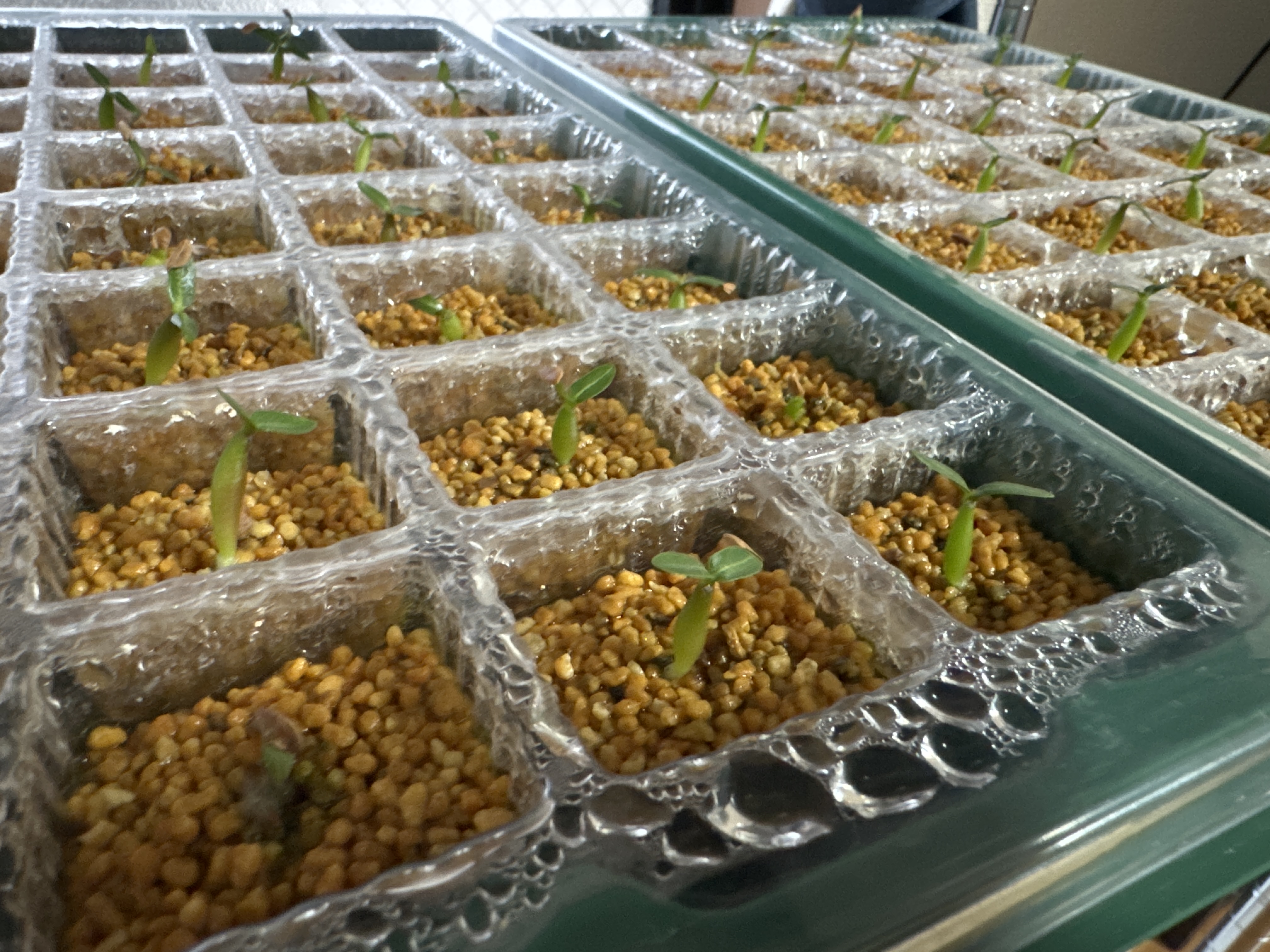 2024/3/25播種 2024/4/9撮影播種数約110粒/ 発芽69粒鹿沼土、腰水、加温...