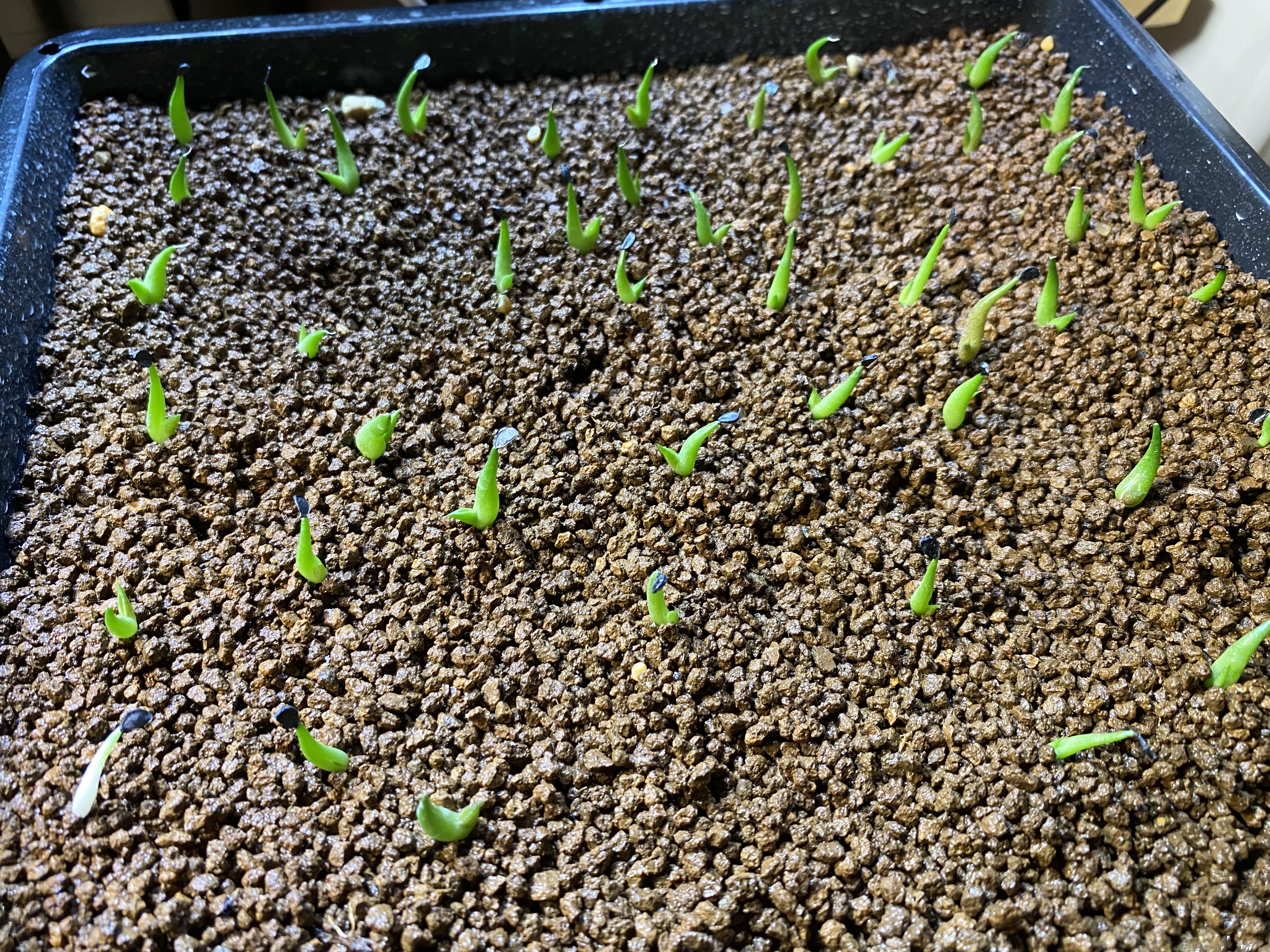 撒いて約1ヶ月おまけ分は多少発芽しないものもありましたが、購入株数分は間違えなく発芽してくれています...
