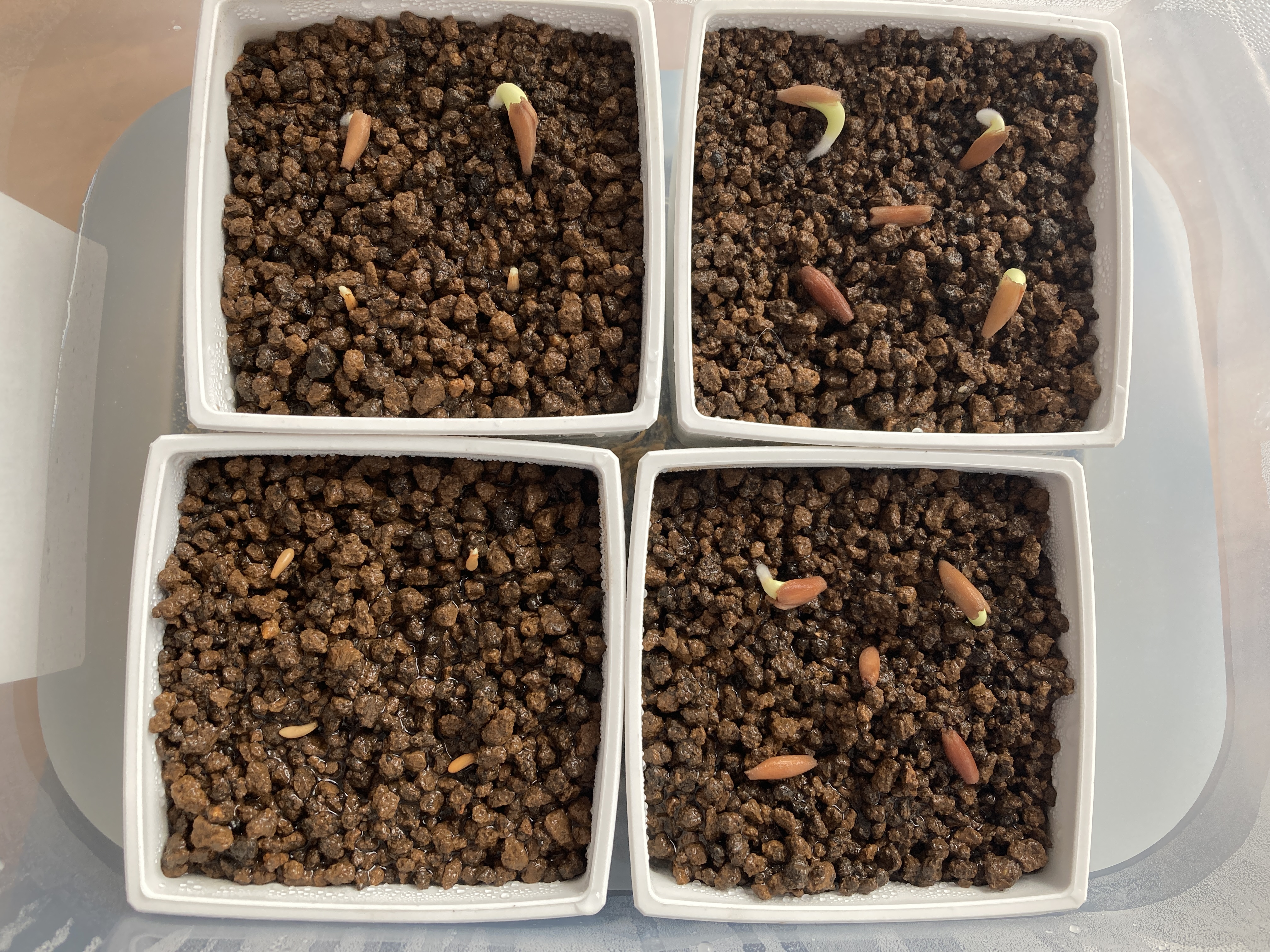 30粒中20粒発芽。初心者ですが、黒くなっている種は、発芽しなかったです。...