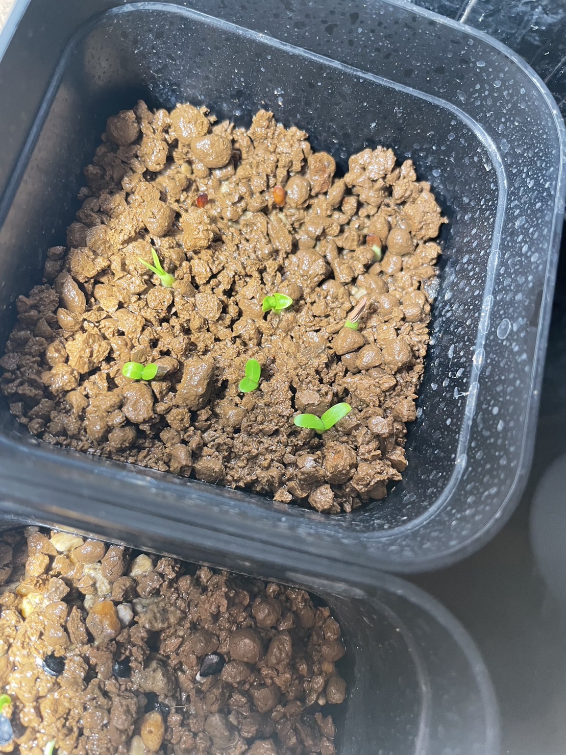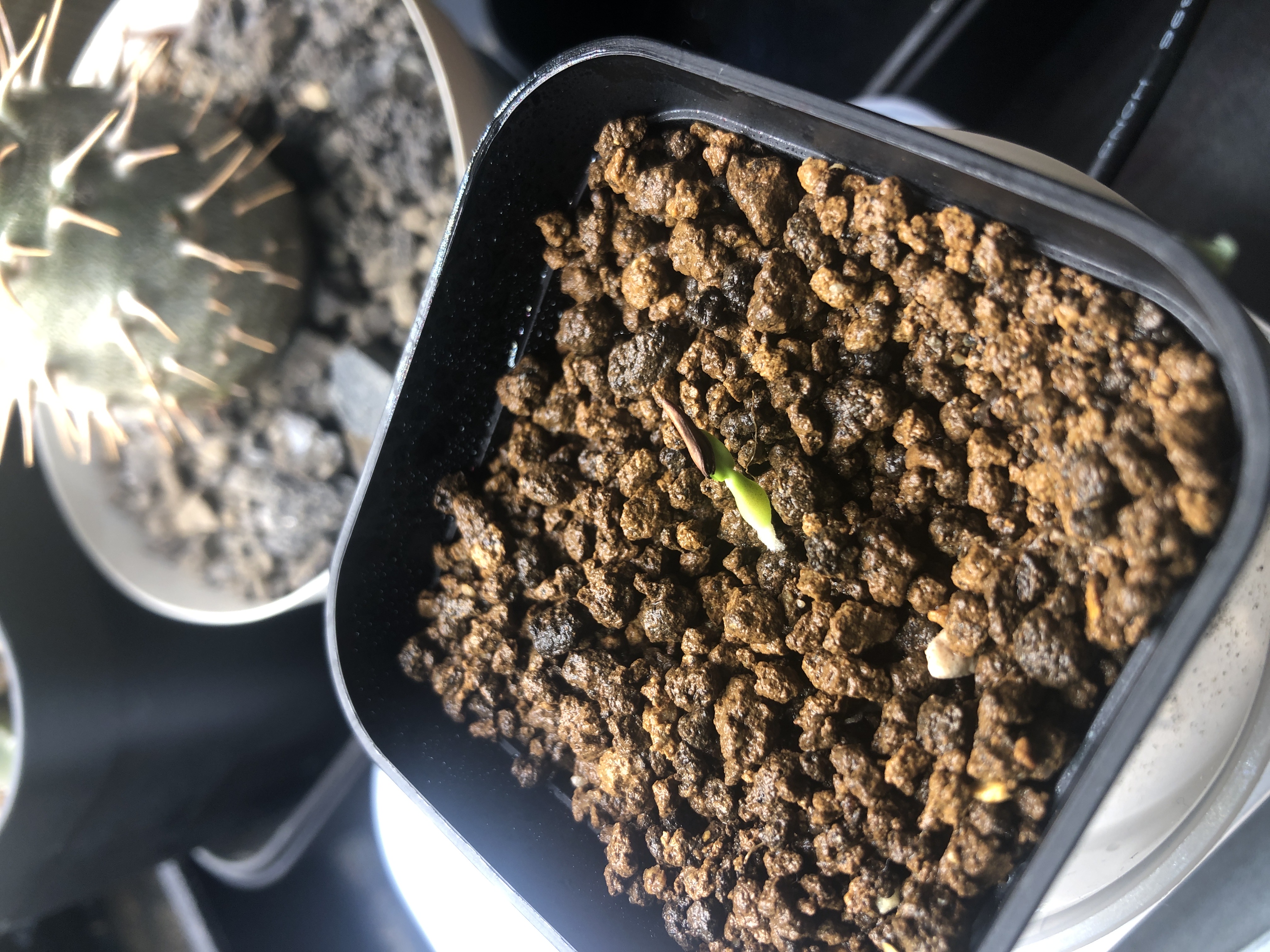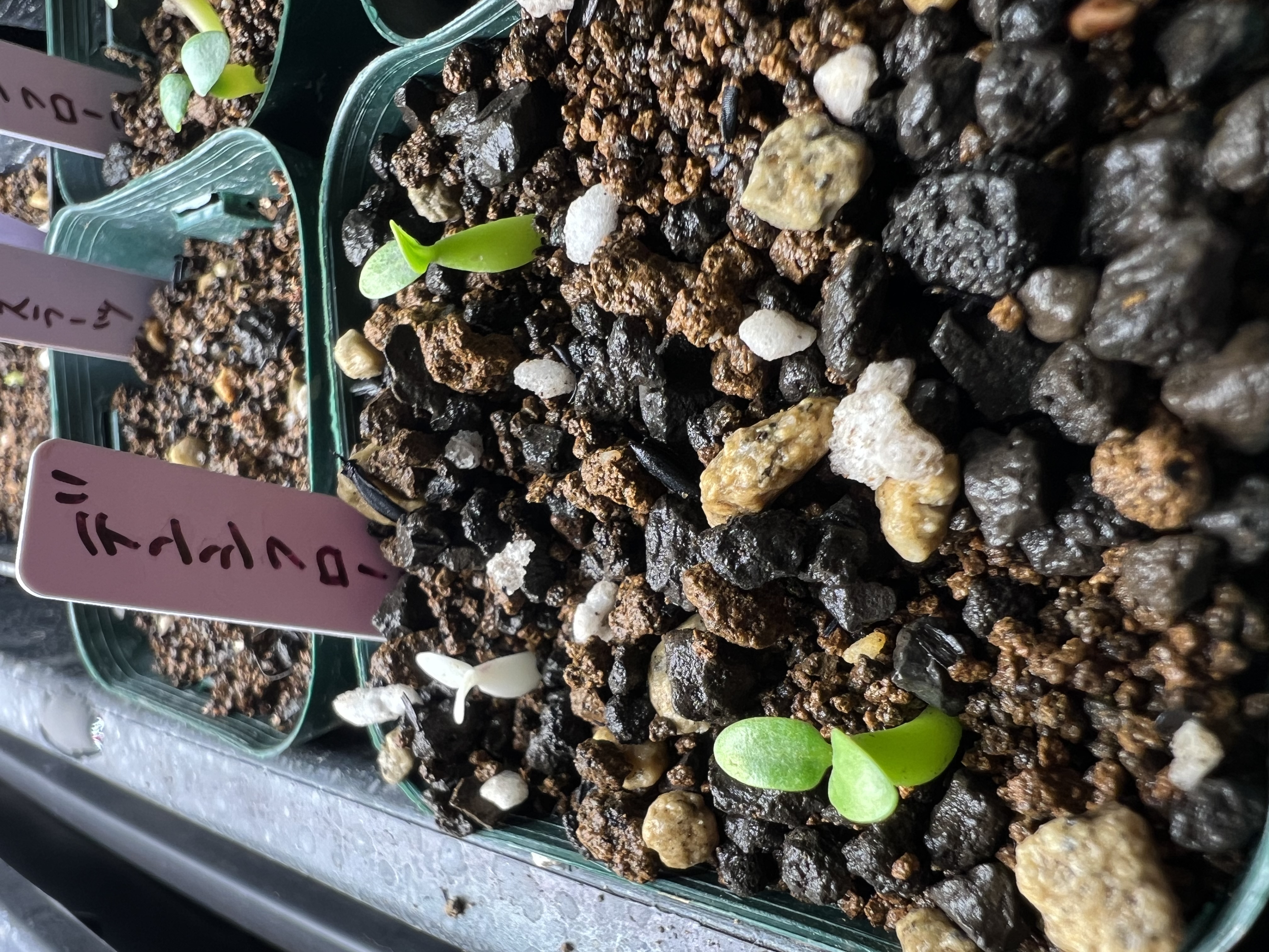 13粒中10粒が発芽中。播種から継続して簡易温室(室温25-30℃、湿度50%前後)にて管理中。メネ...