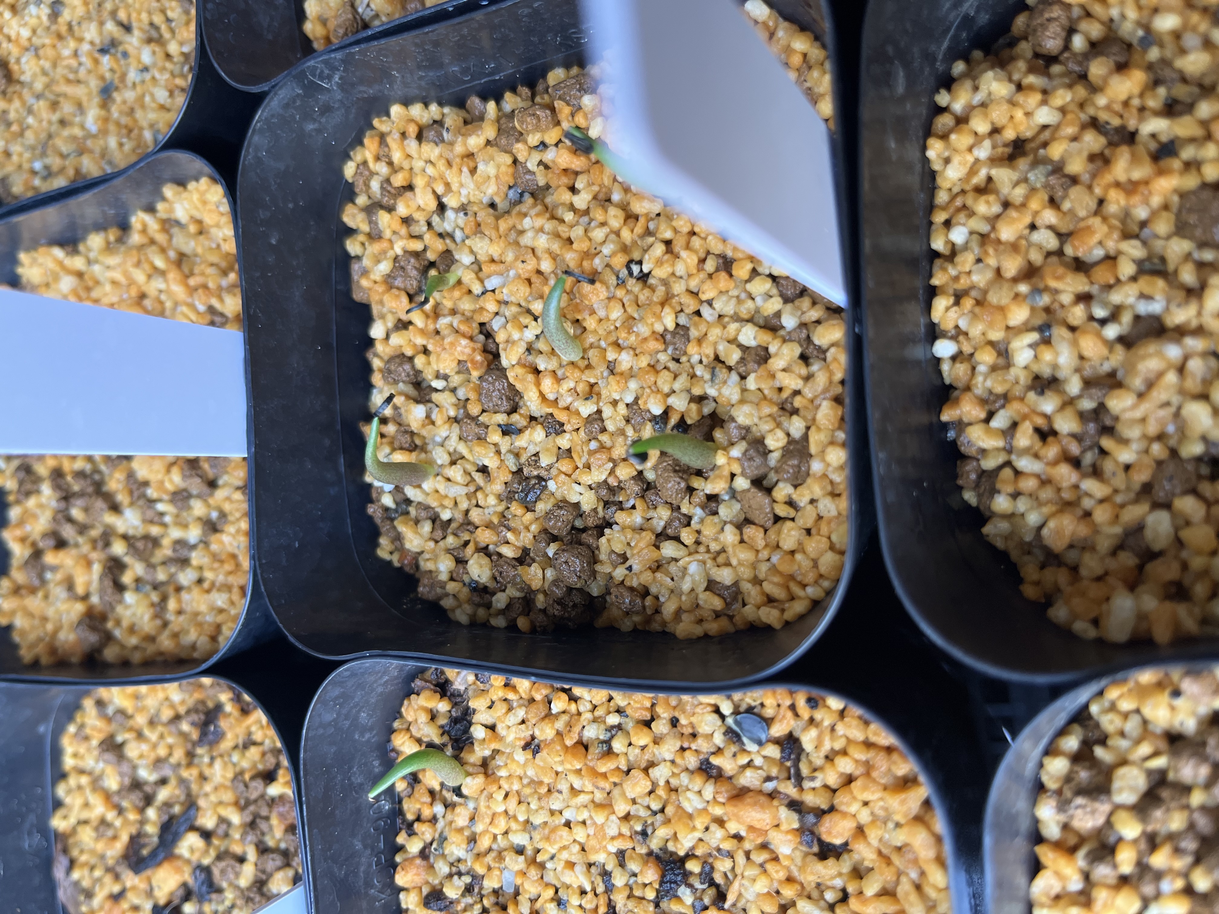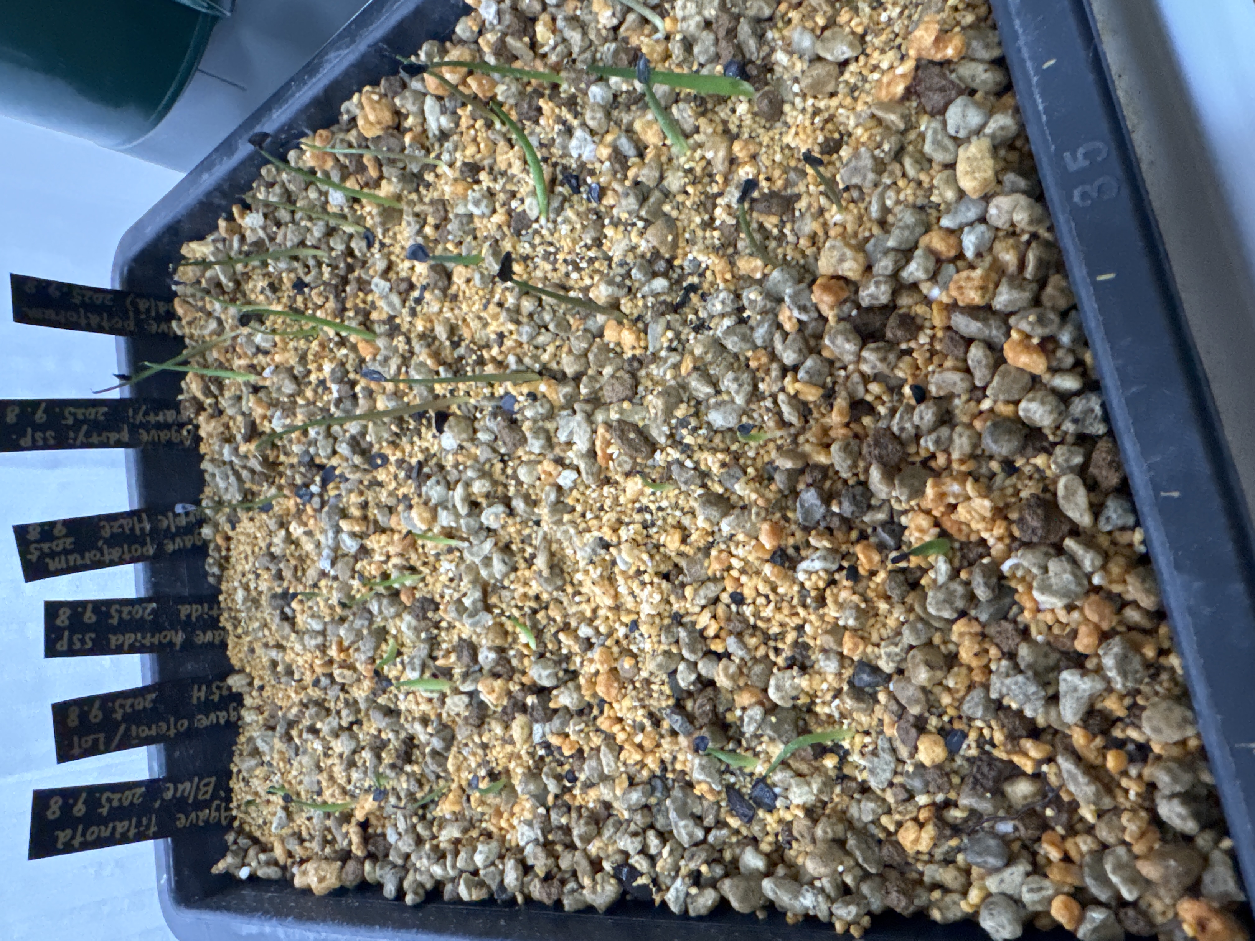 2025/10/26播種、11/3撮影12粒の内9粒発芽播種前にダコニール+メネデール溶液に12時間...