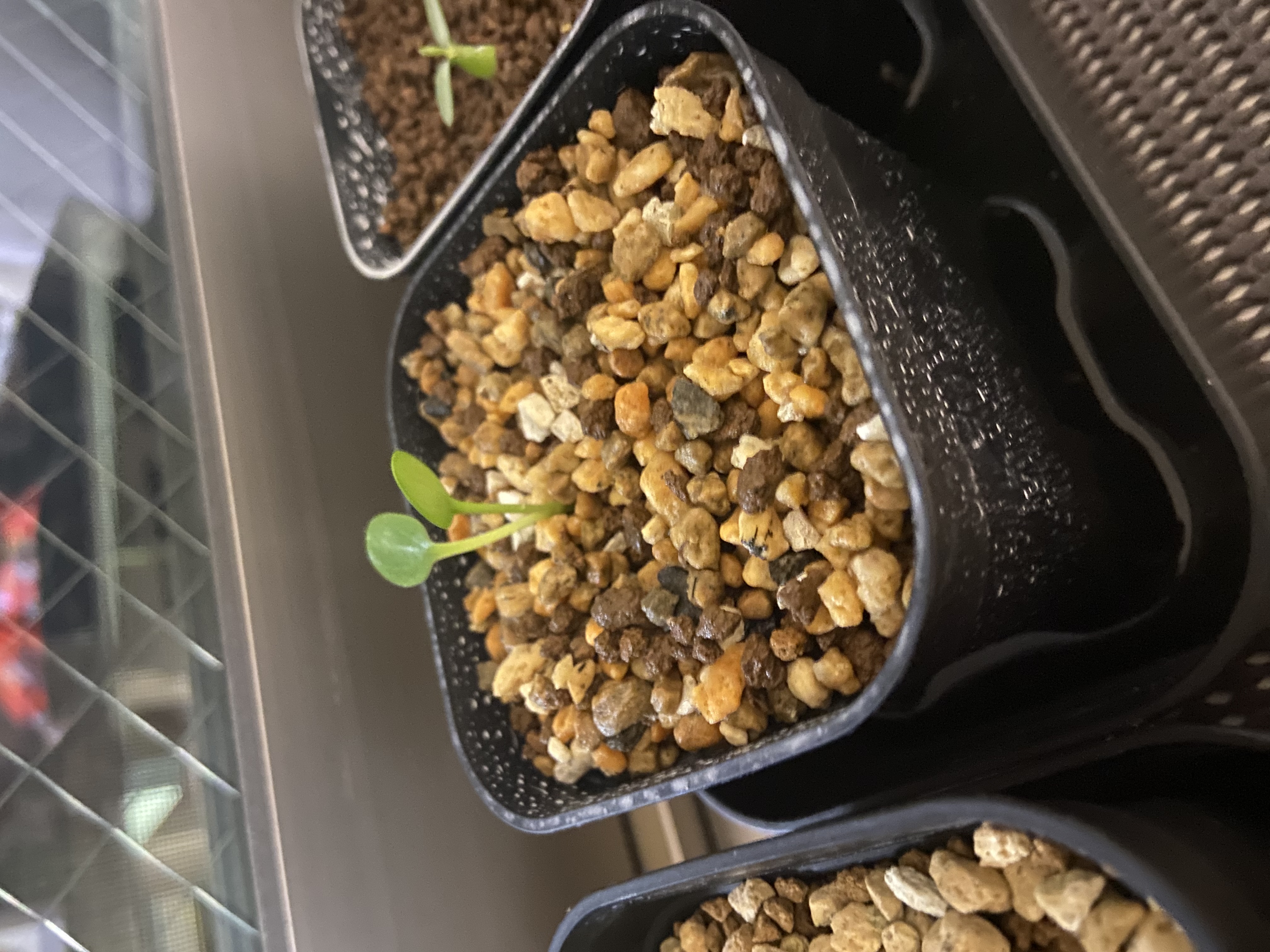 2024/04/14メネデール水に半日浸けて赤玉・鹿沼・日向・バーミキュライト・竹炭培養土に6粒播種...