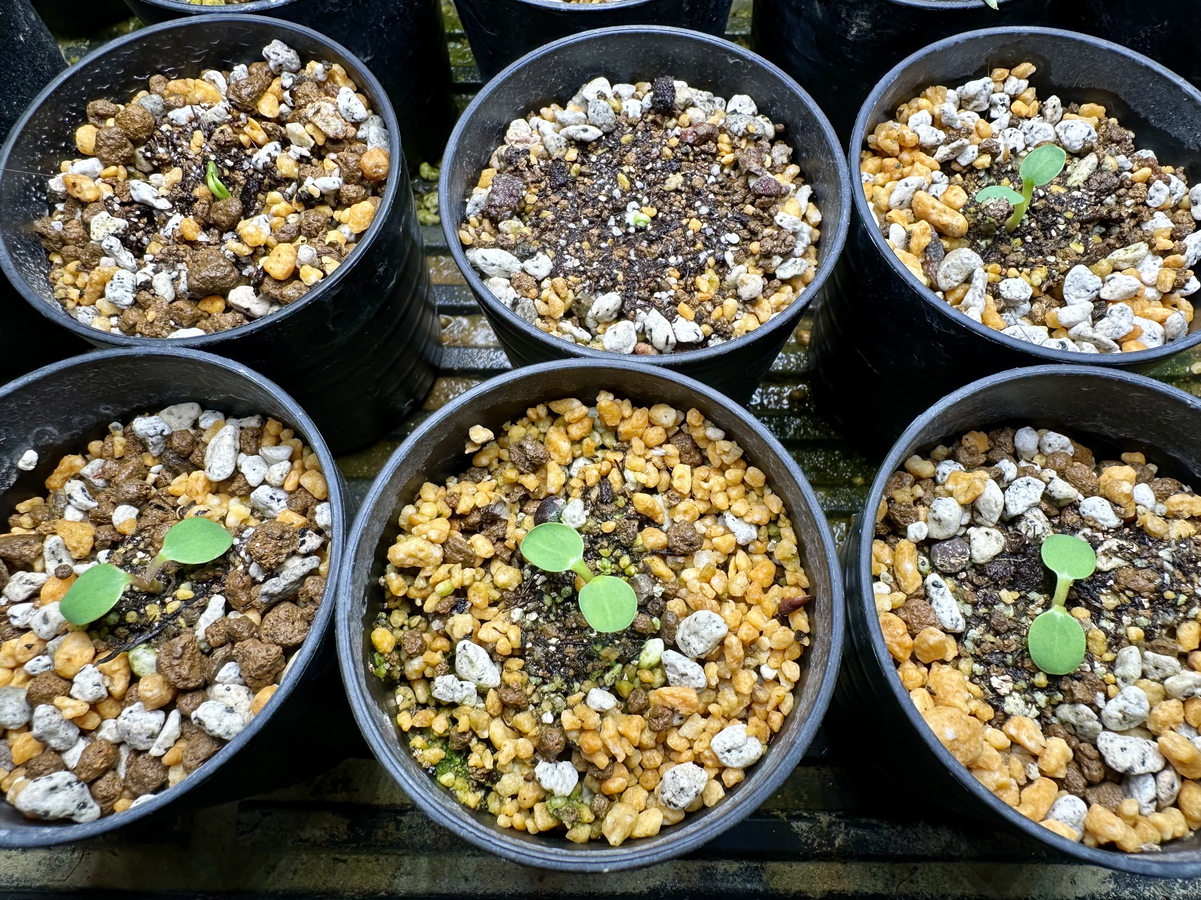 2024/4/13播種 2024/5/24撮影6粒/3粒 発芽ギラウミニアナとして販売されてたもので...
