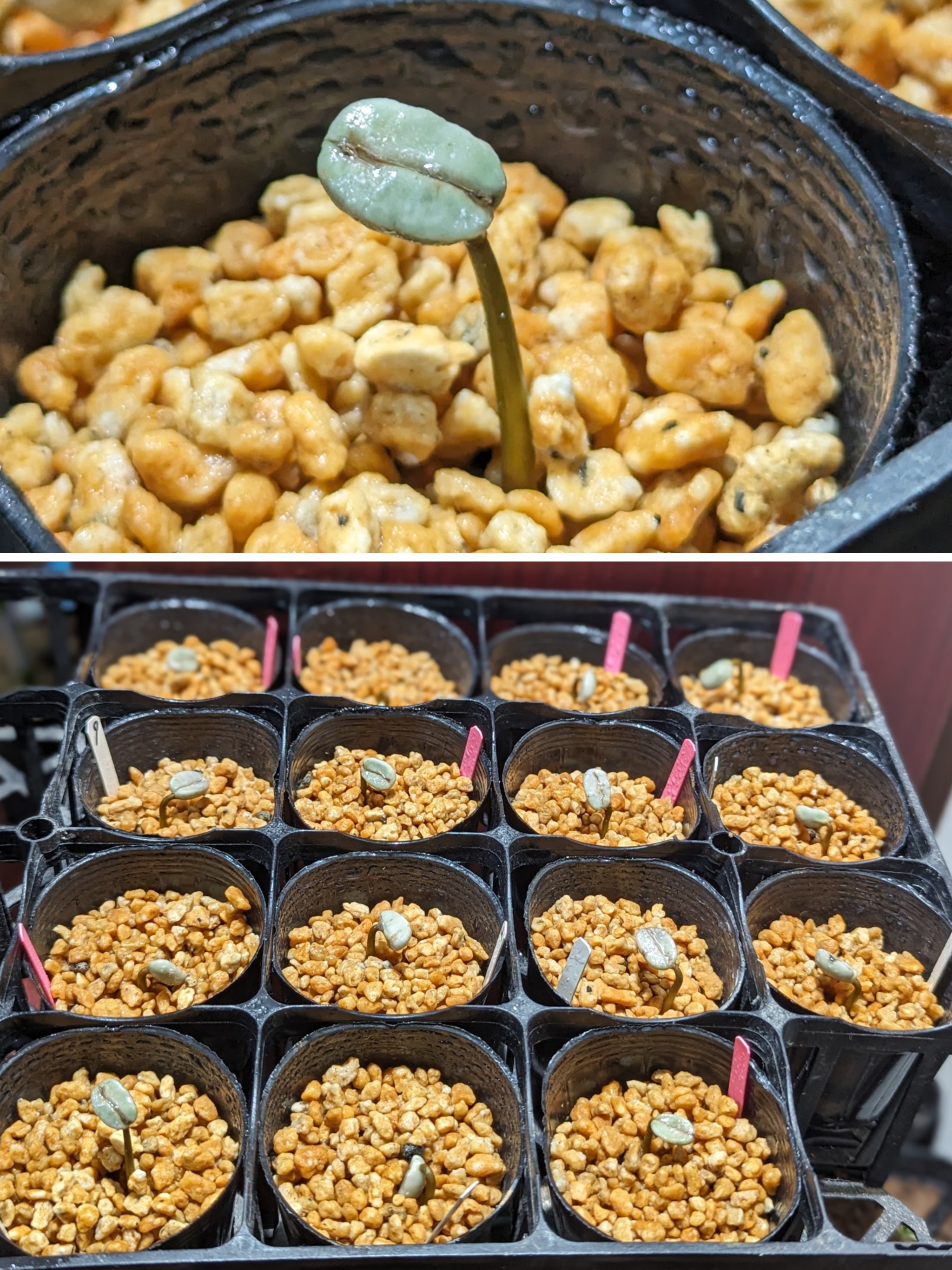 2025/6/23 鹿沼土に前日よりメネデール溶液に浸した種を蒔きました。ベランダの育苗用の棚で毎朝...