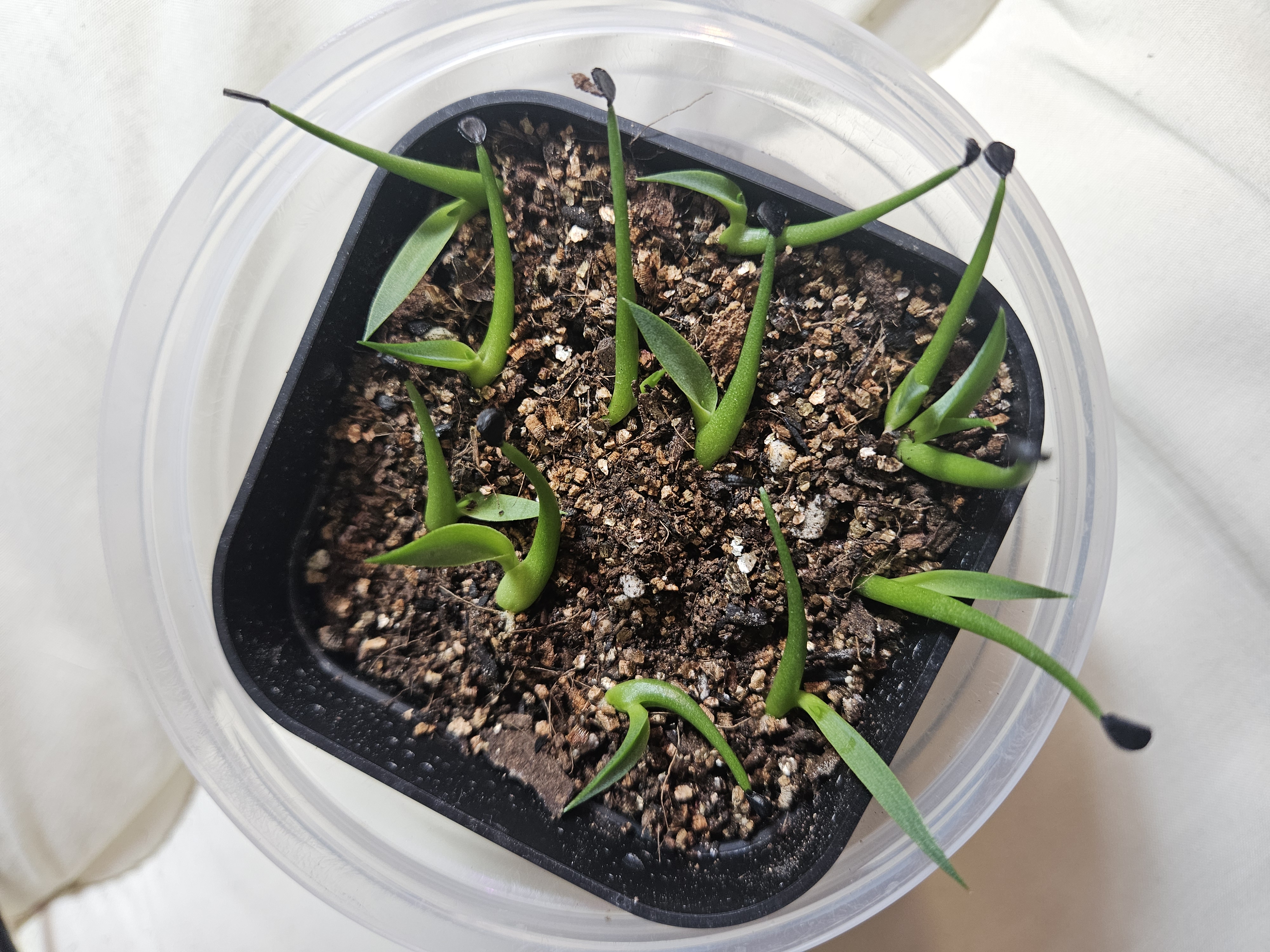 2025/6/15播種2025/6/24撮影12粒中→12粒発芽播種後にベンレート2000倍希釈で腰...