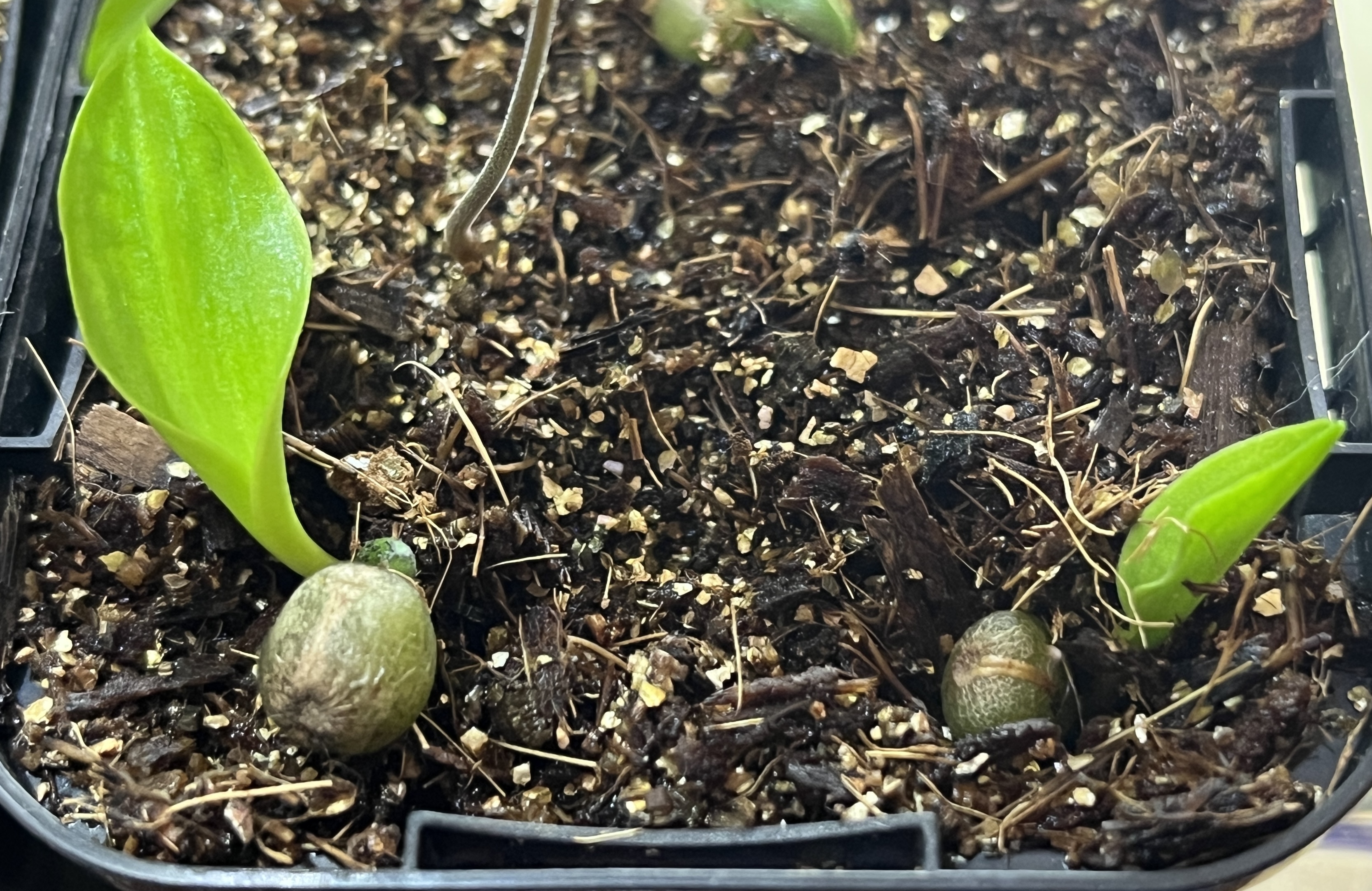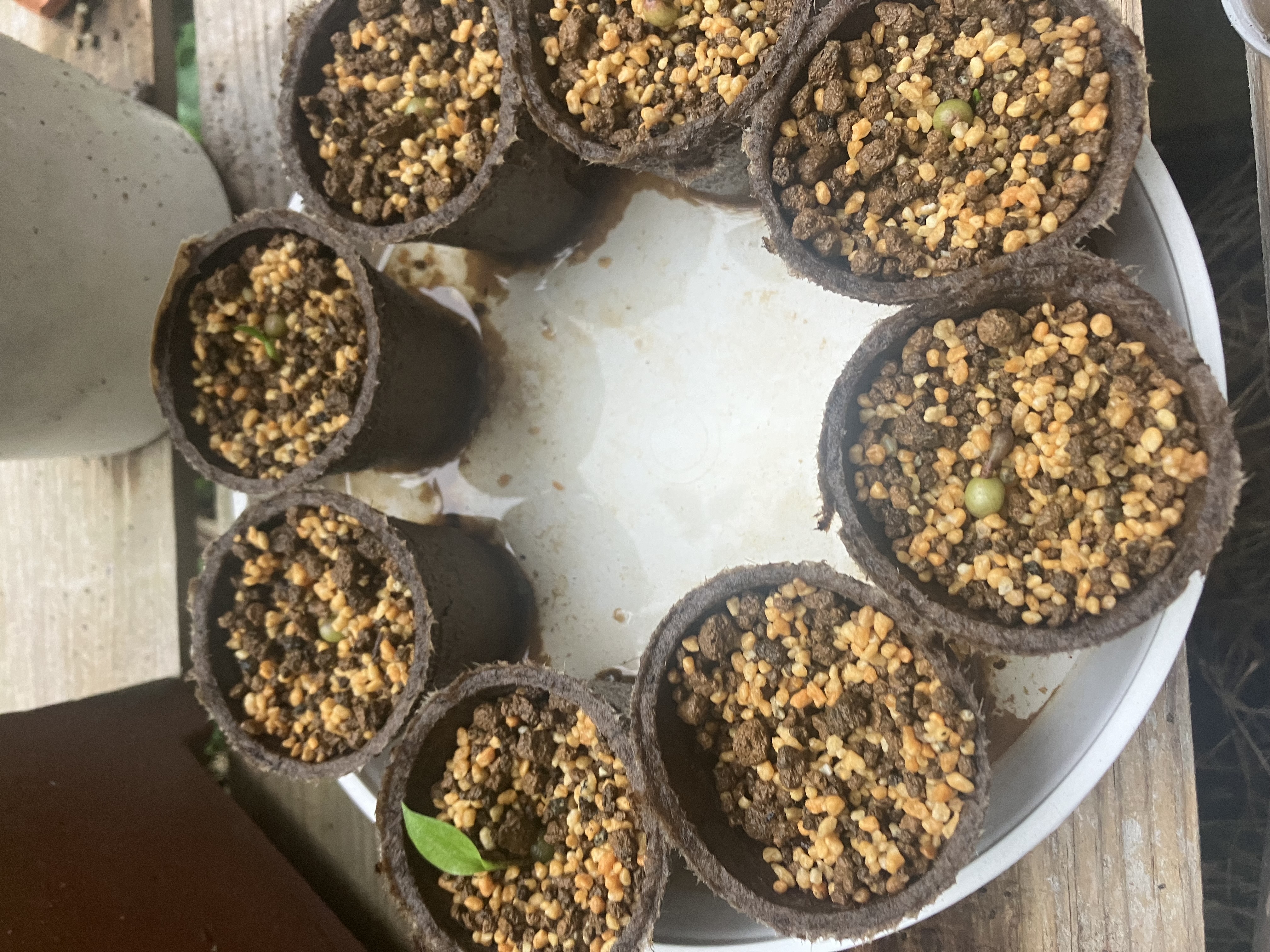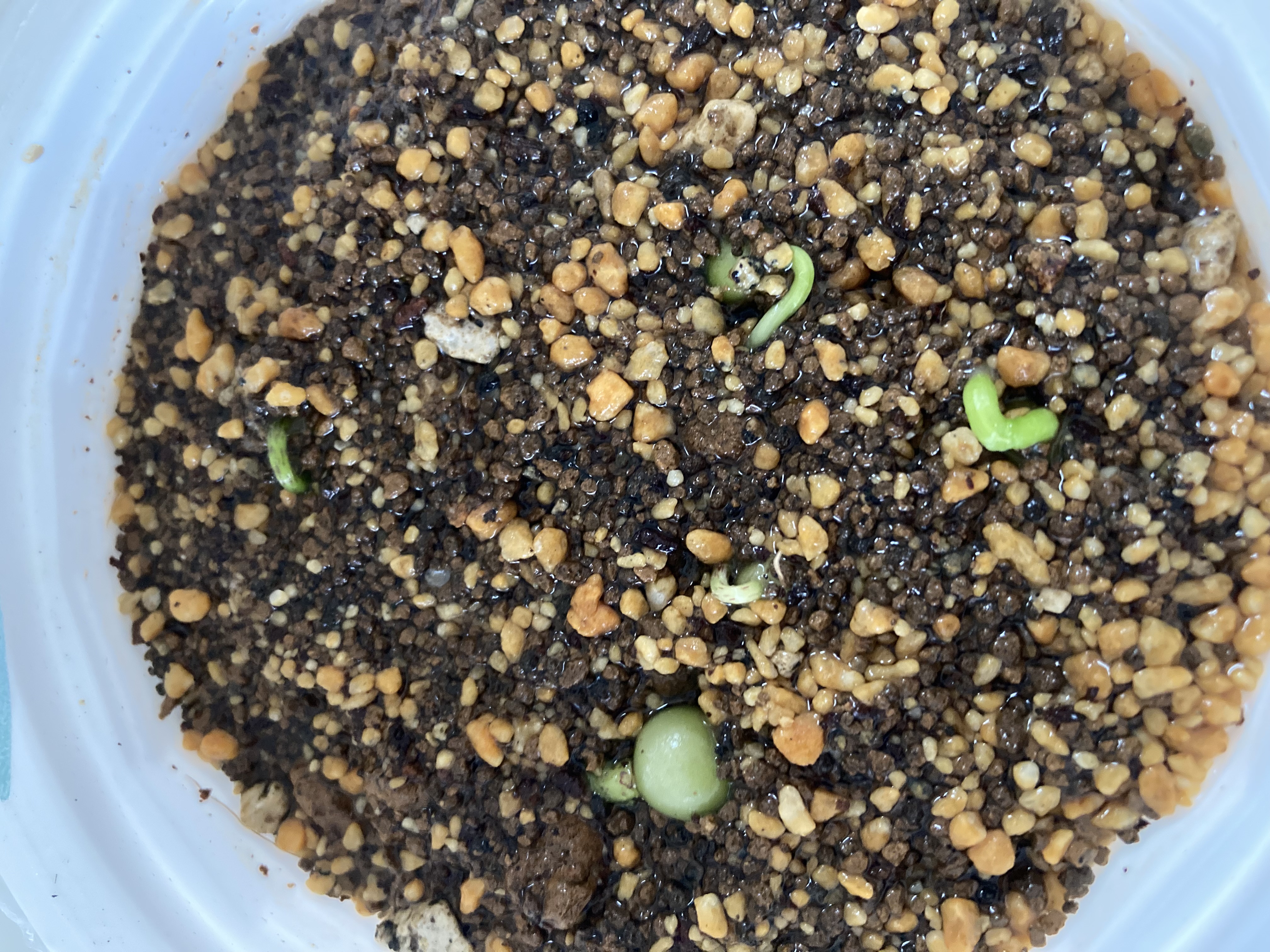おまけのもの、腰水管理7割発芽、梅雨で何個か腐った多肉用土にマグァンプkとオスモコートハイパーk腰水...