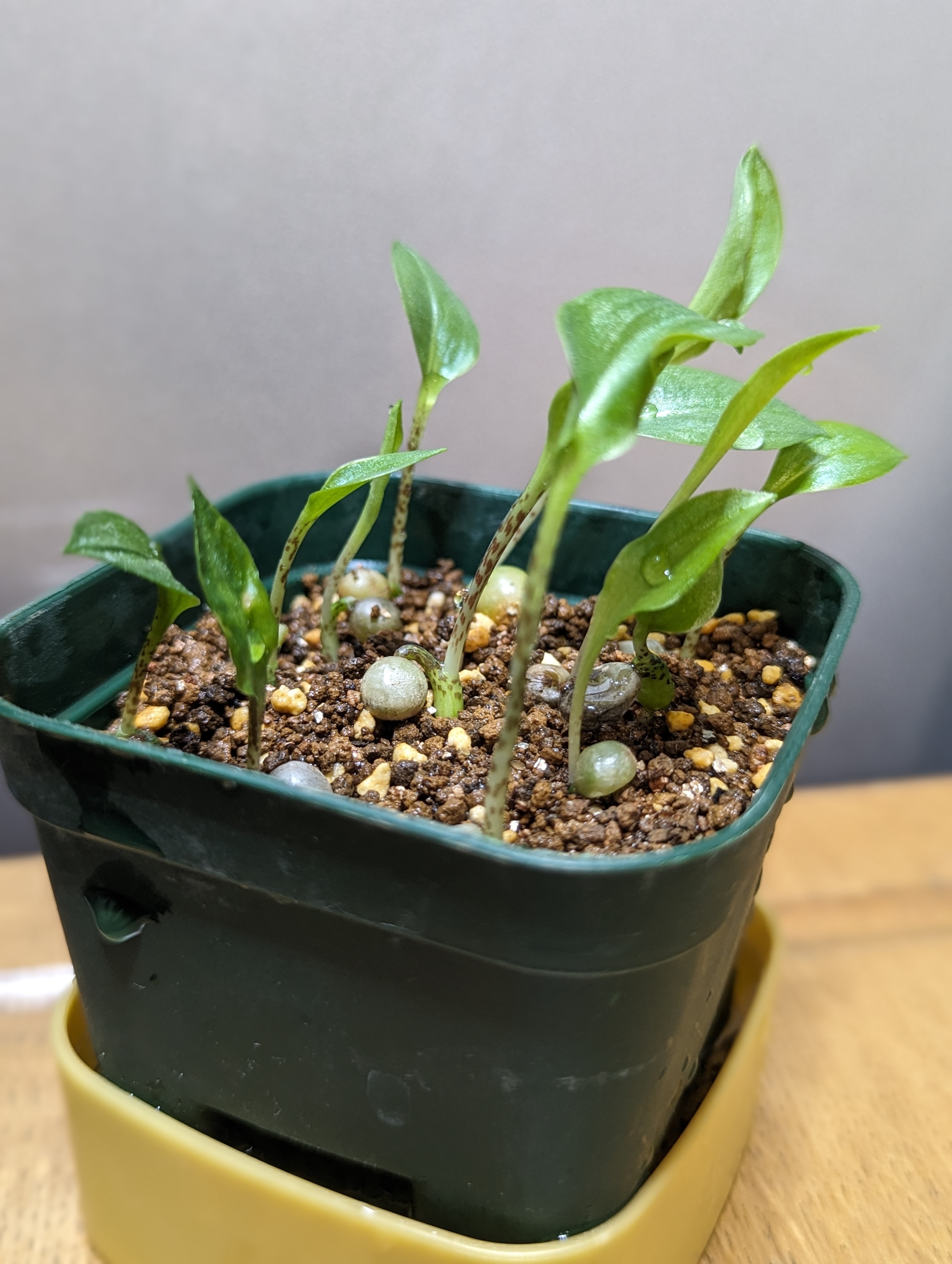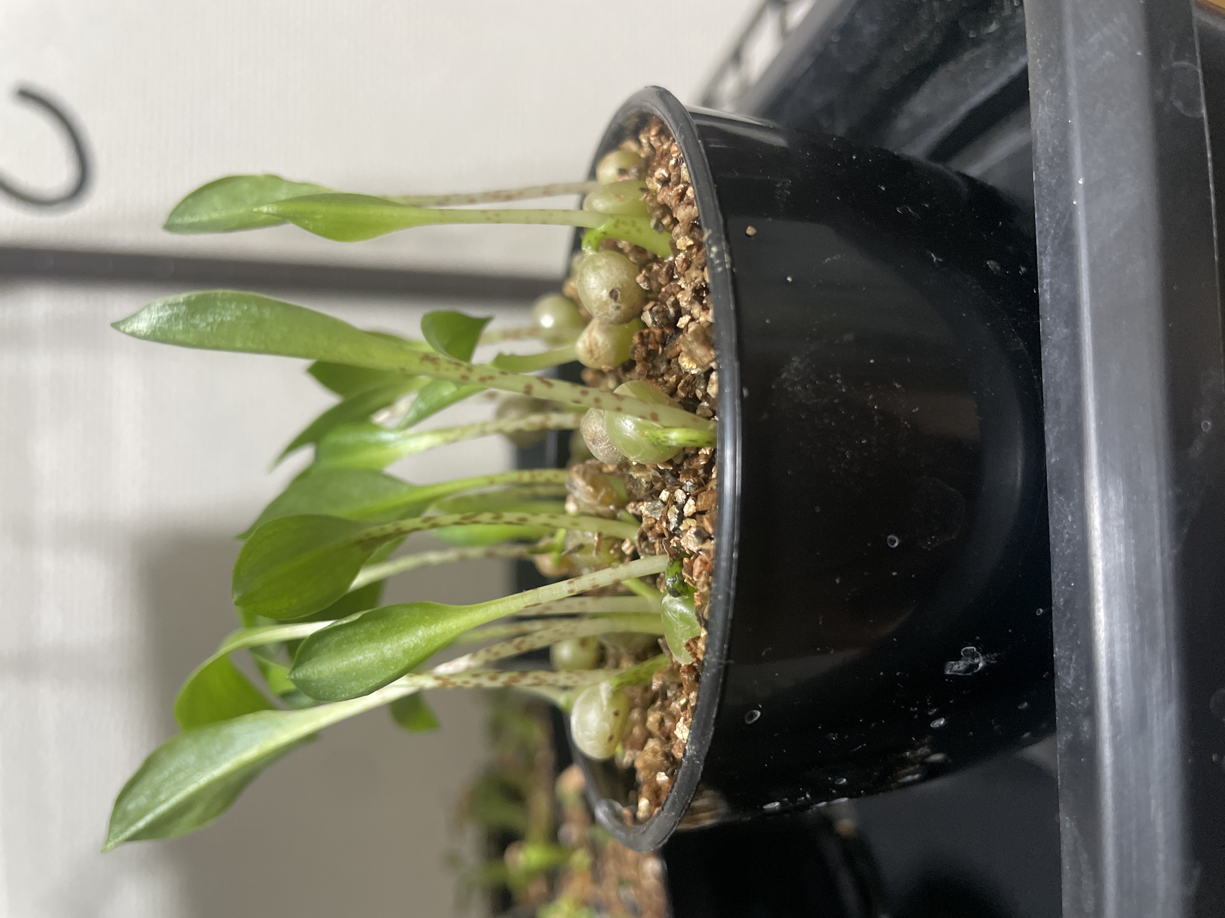 2024/6/6播種 2024/6/25撮影播種数 8球 発芽数 4球赤玉と鹿沼土を1:1配合種と比...