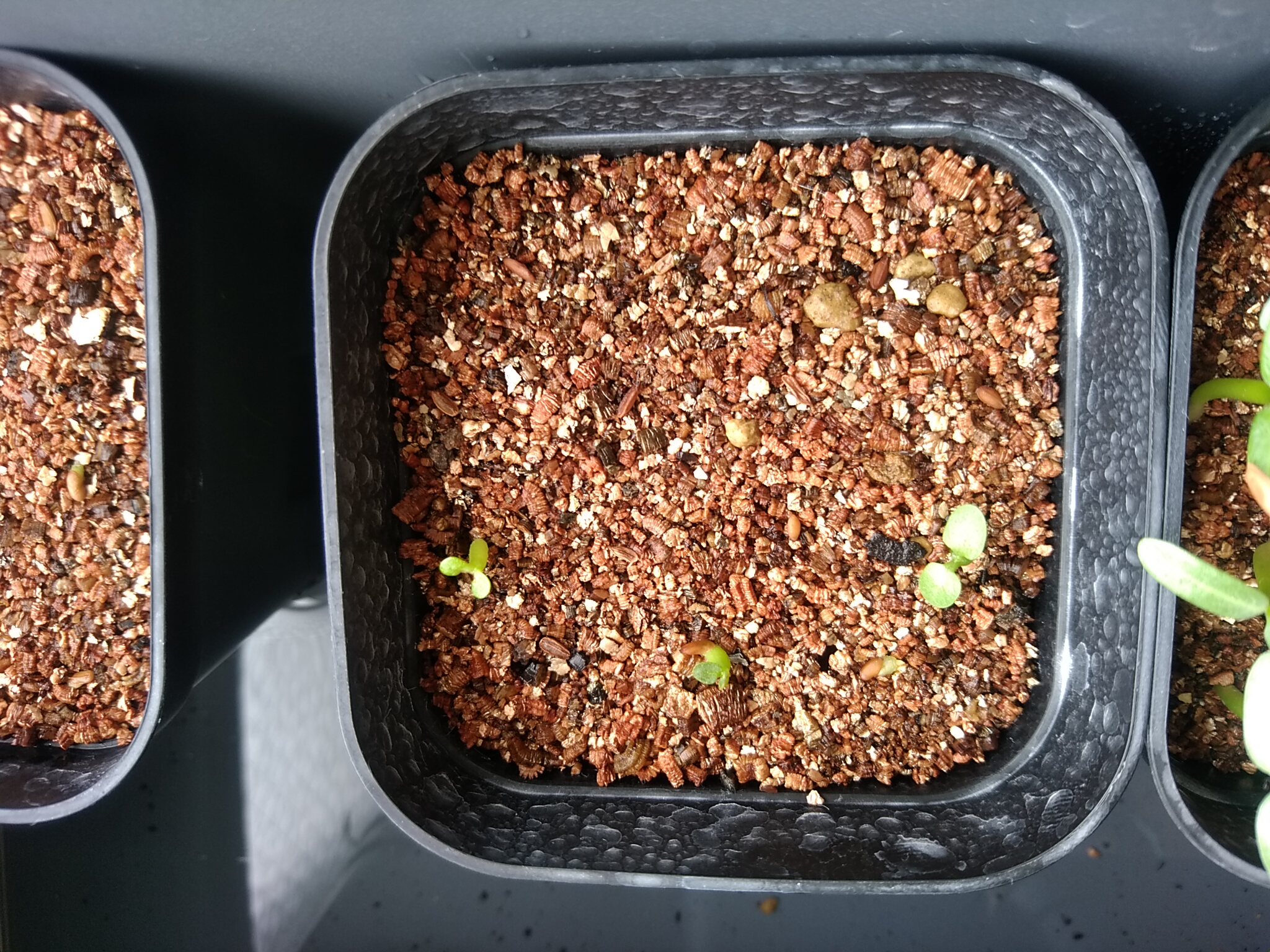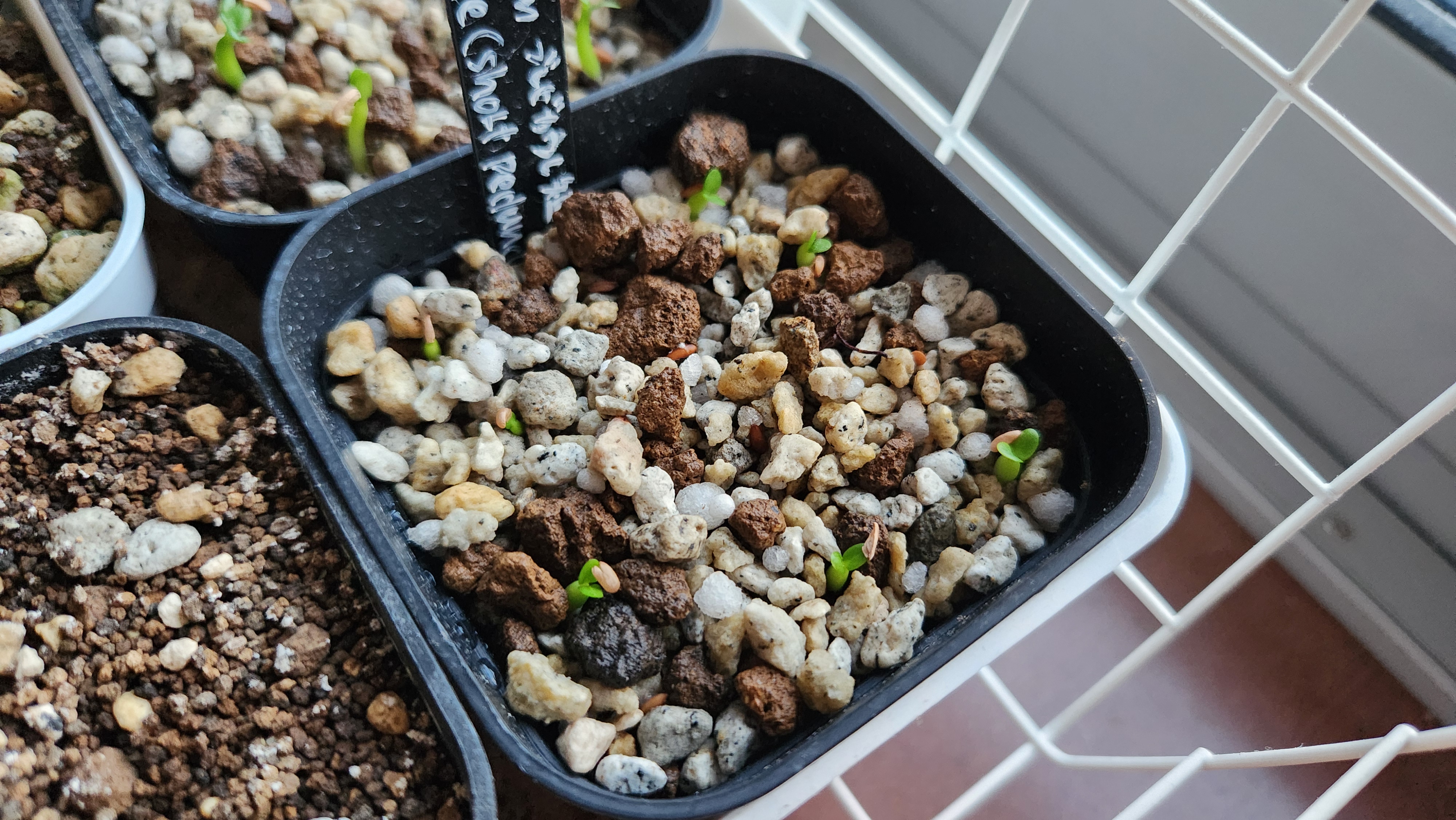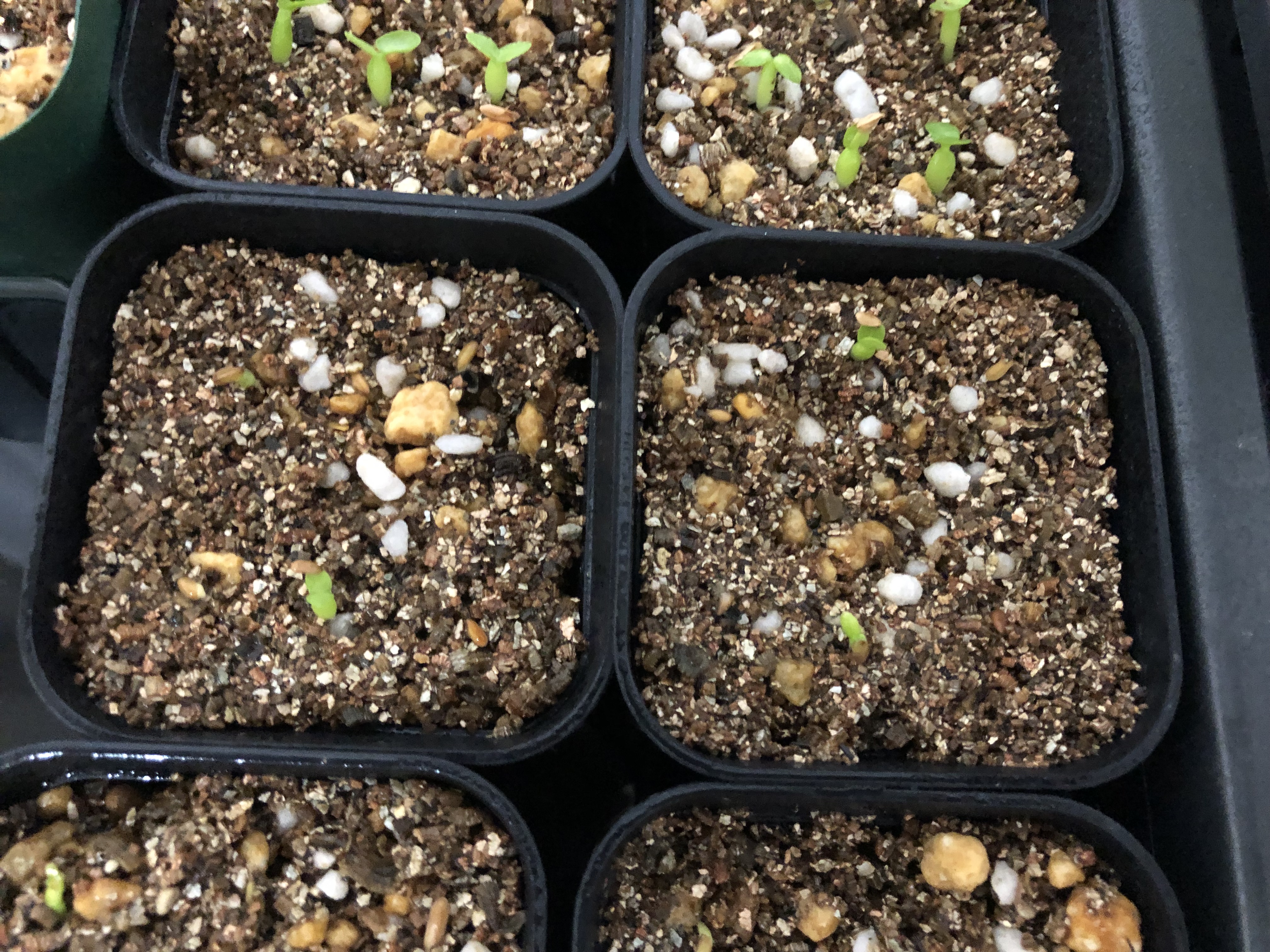 24年5月19日播種5月27日撮影12粒中8粒発芽消毒殺菌あり赤玉軽石パーライト腰水屋外管理...