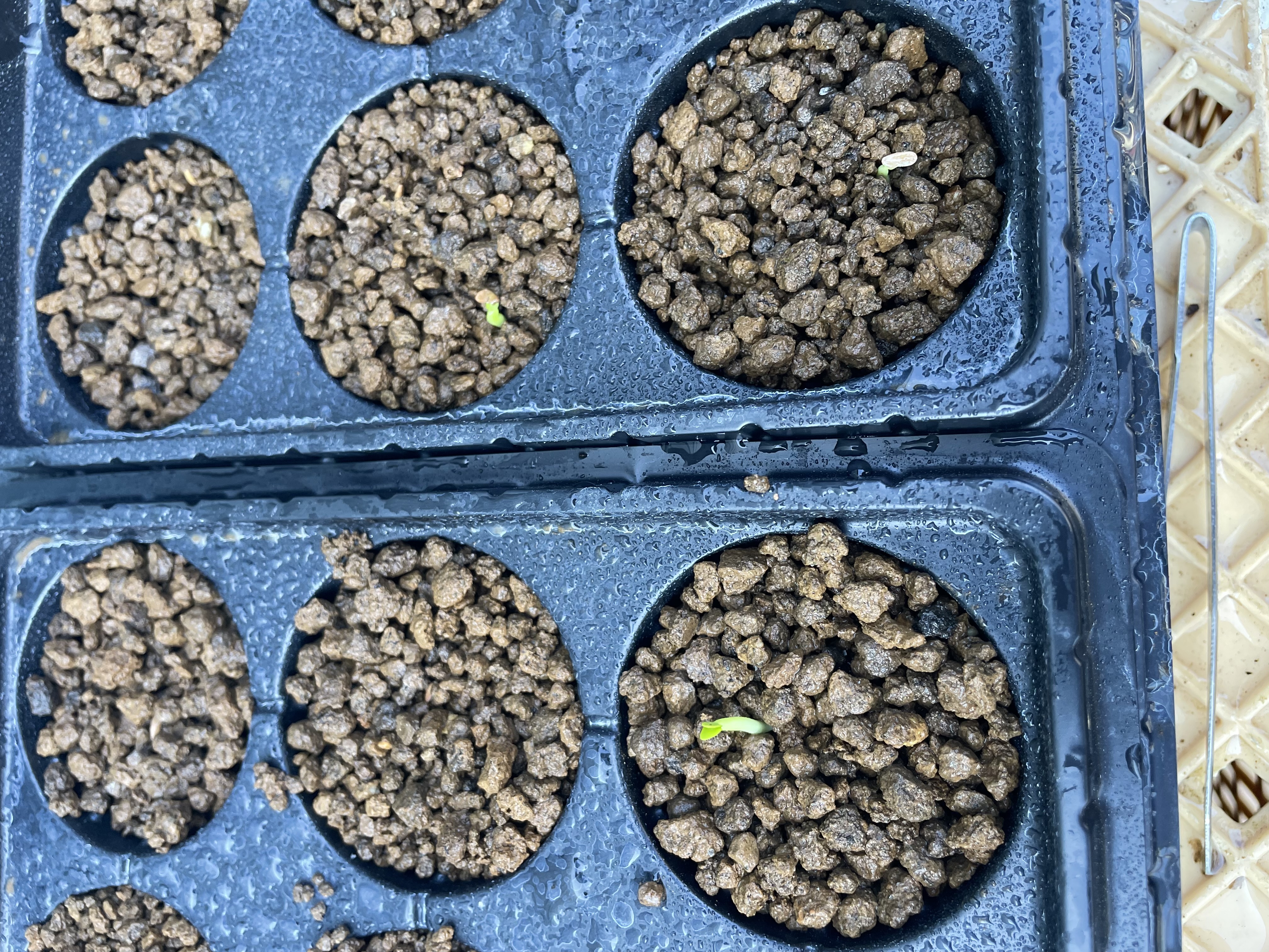 ベンレート1日浸漬細小粒赤玉と細小粒軽石2024/9/1120粒播種2.3日で4粒ほどカビその後カビ...