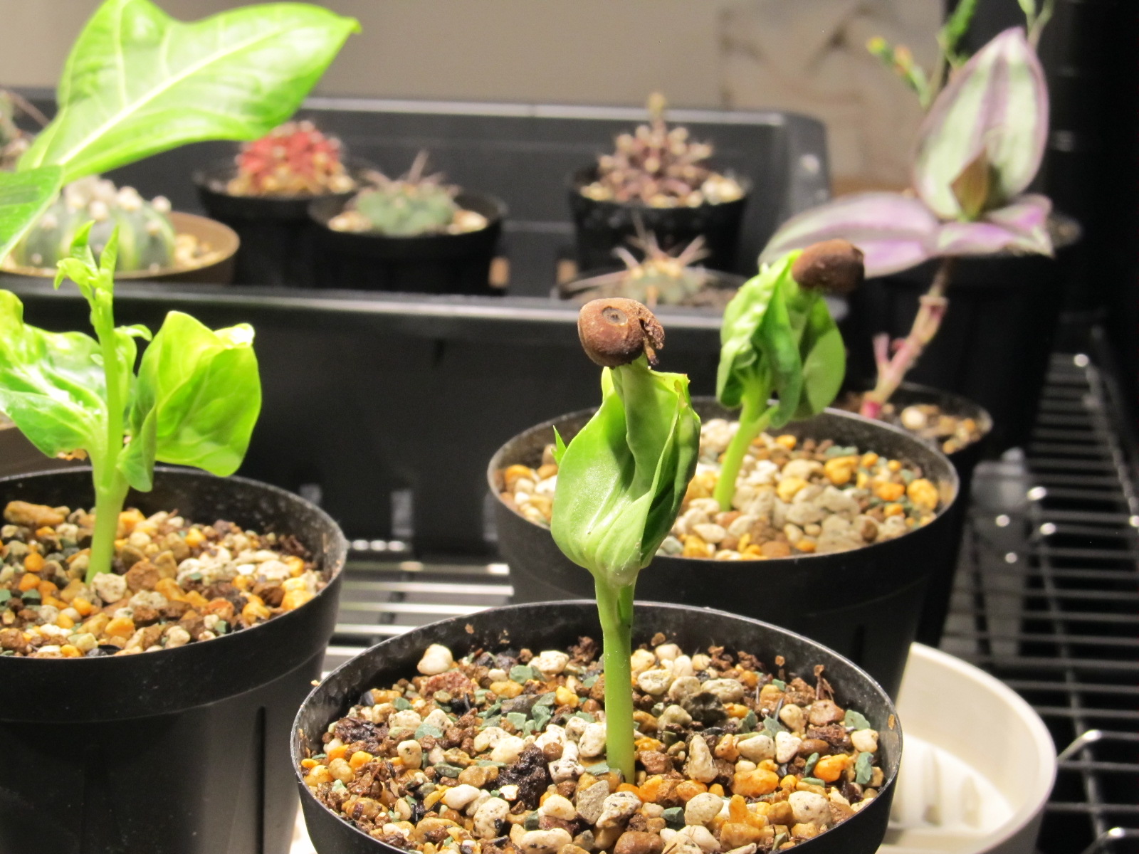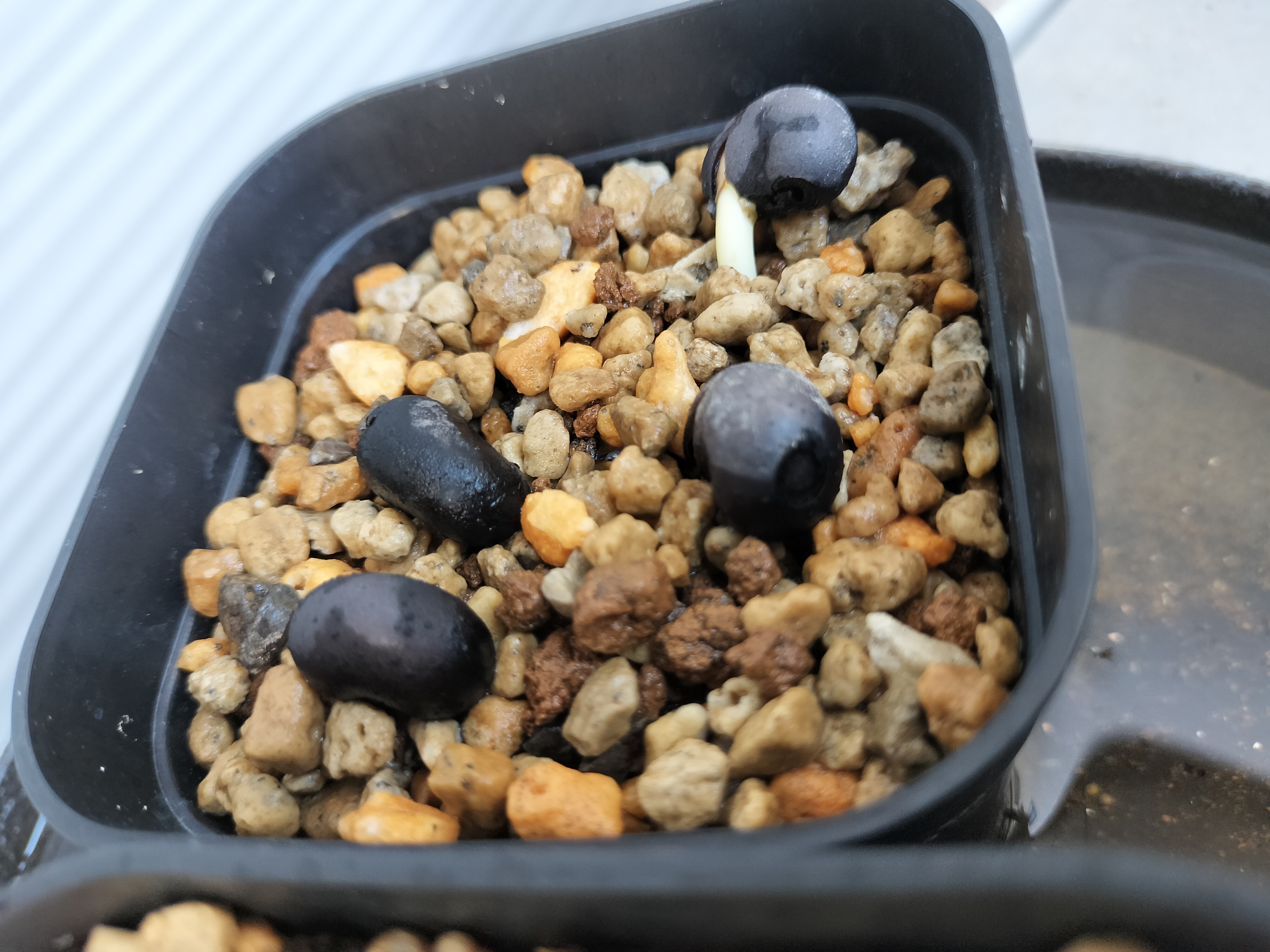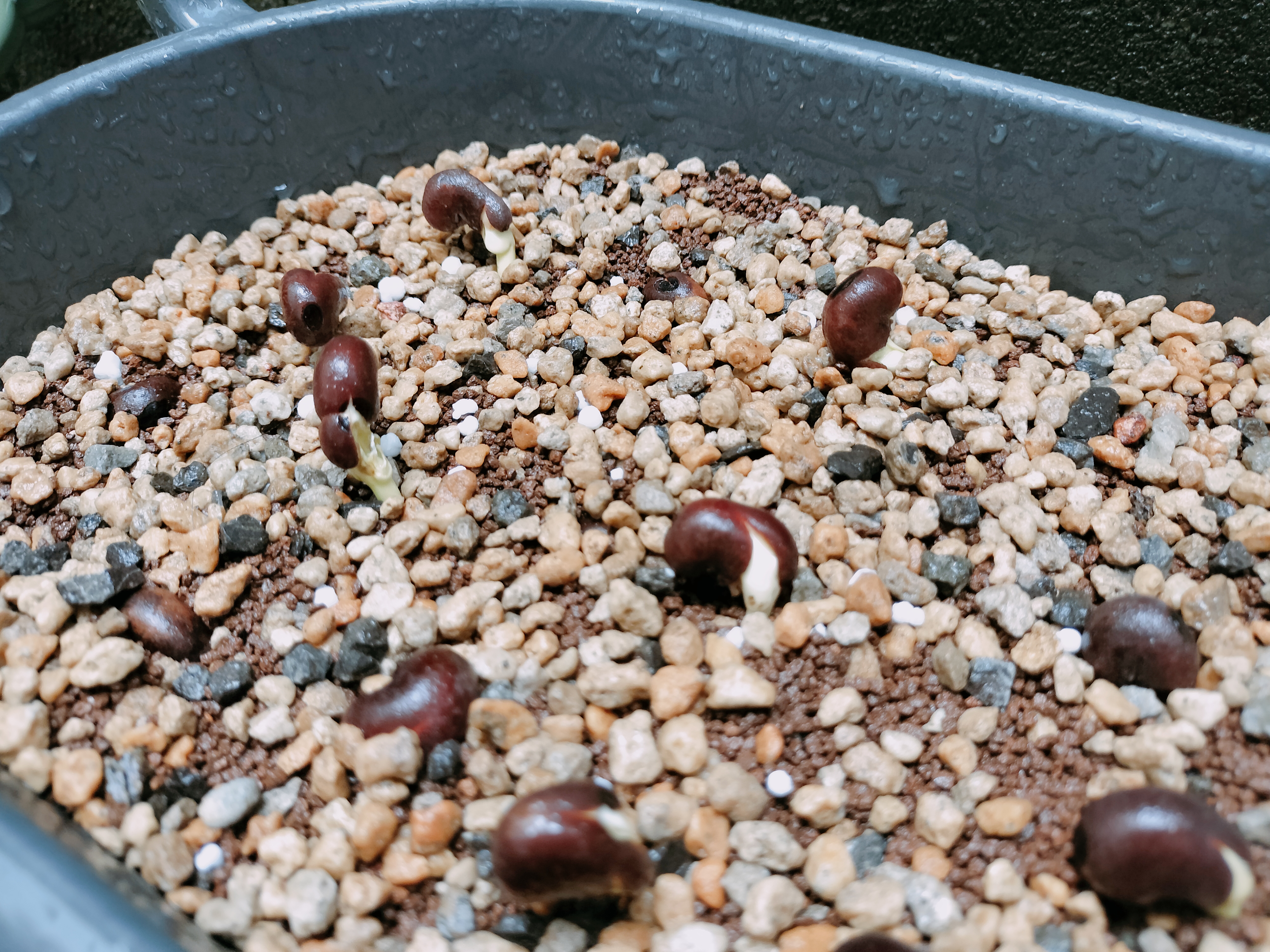 9月末に播種、現在2ヶ月ほど。10個中2個だけ発芽できました。殻をうまく破れず腐ってしまったものが多...