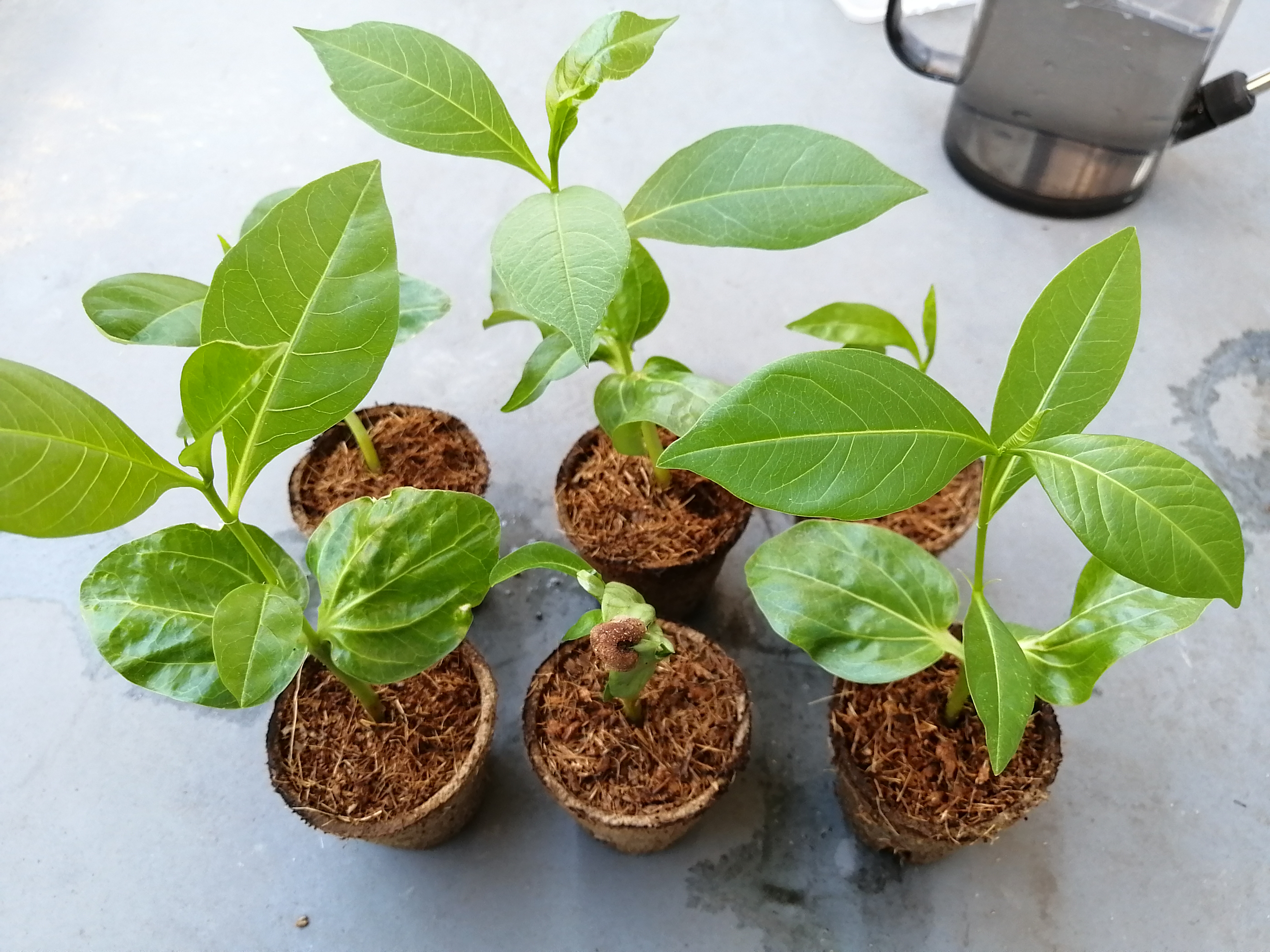 2024/6/16播種 2024/7/9撮影播種12粒/発芽8粒1個は、残った種皮を無理に取ろうとし...