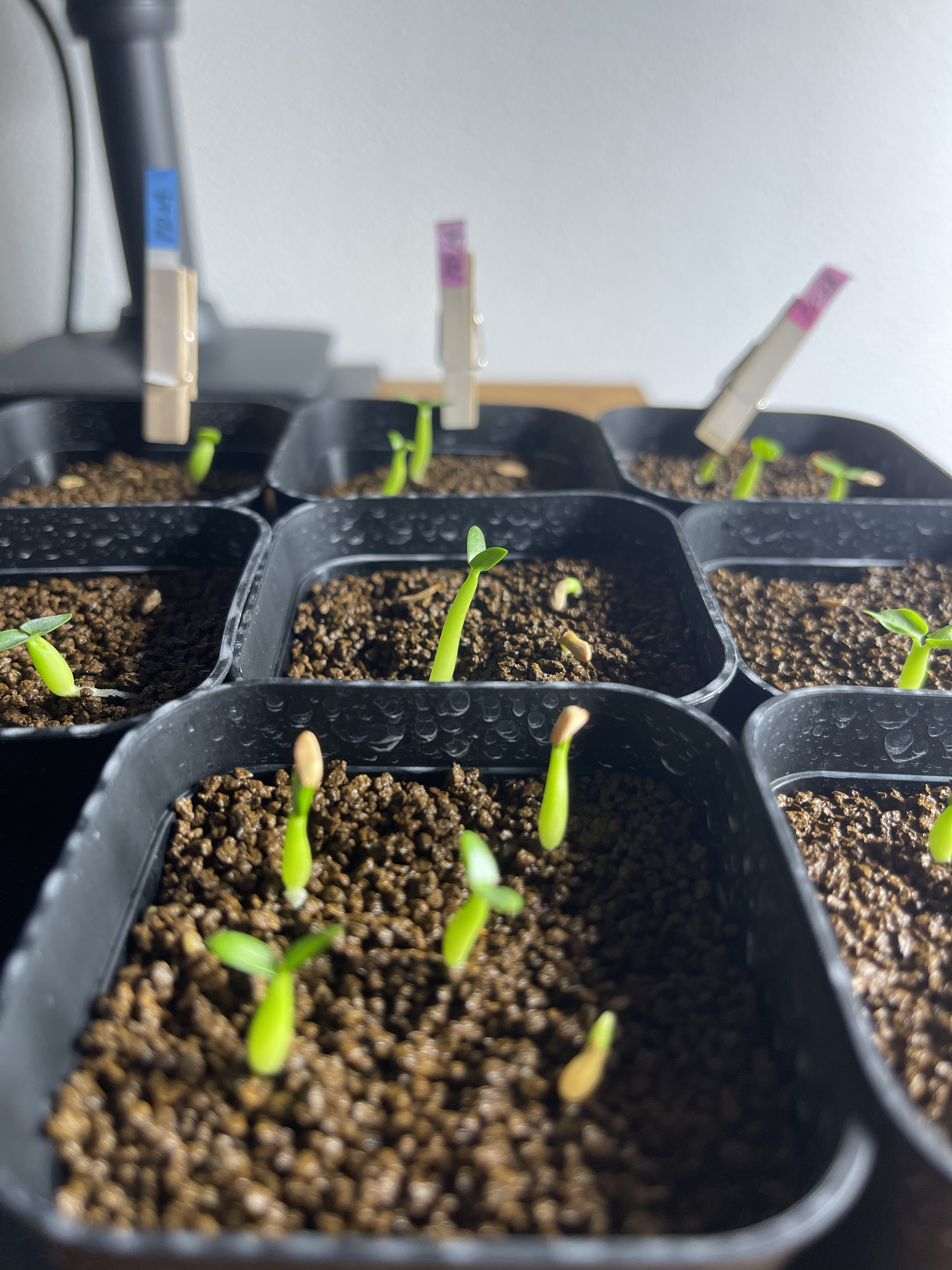 播種日6/5撮影日6/15播種数13発芽8温度管理25度程度赤玉1.軽石2ベンレート、メネデール溶液...