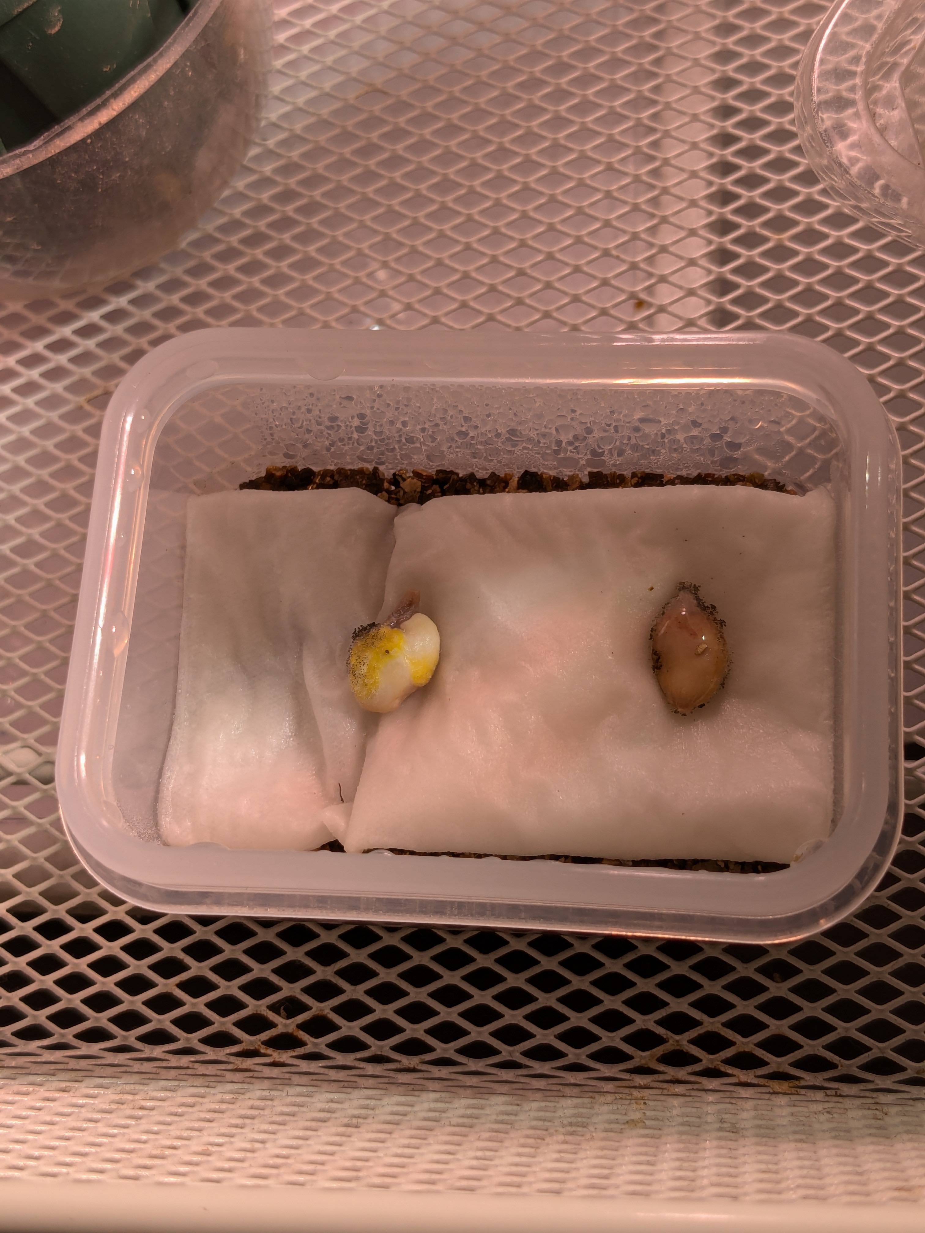 2024.9.29播種2024.10.07 1/4 発芽確認。条件 メネデール+オーソサイド溶液に半...