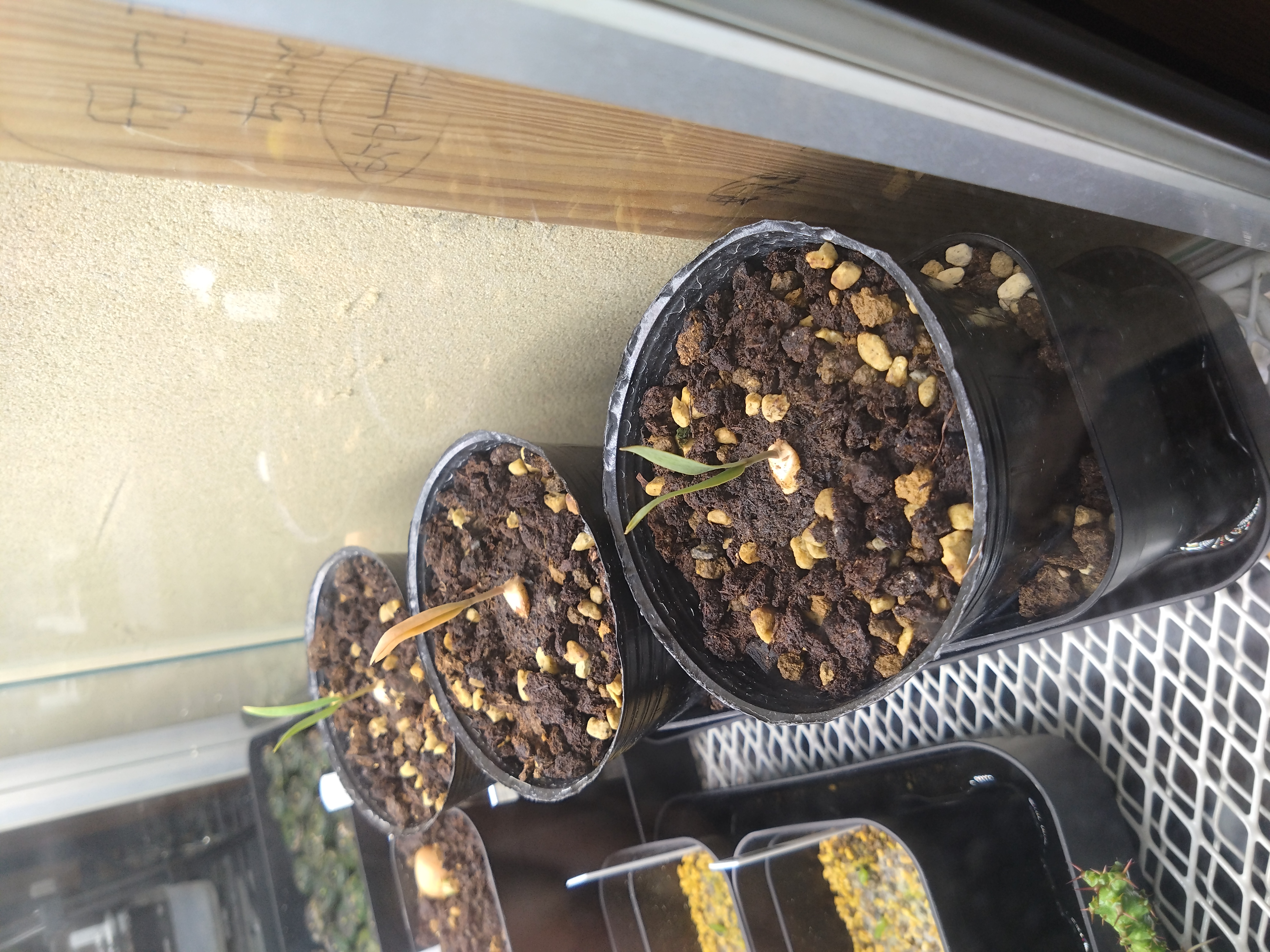 2024年9月22日3粒播種。事前処理は何もなし。水にも漬けてません。プロトリーフ社粒状軽い培養土の...