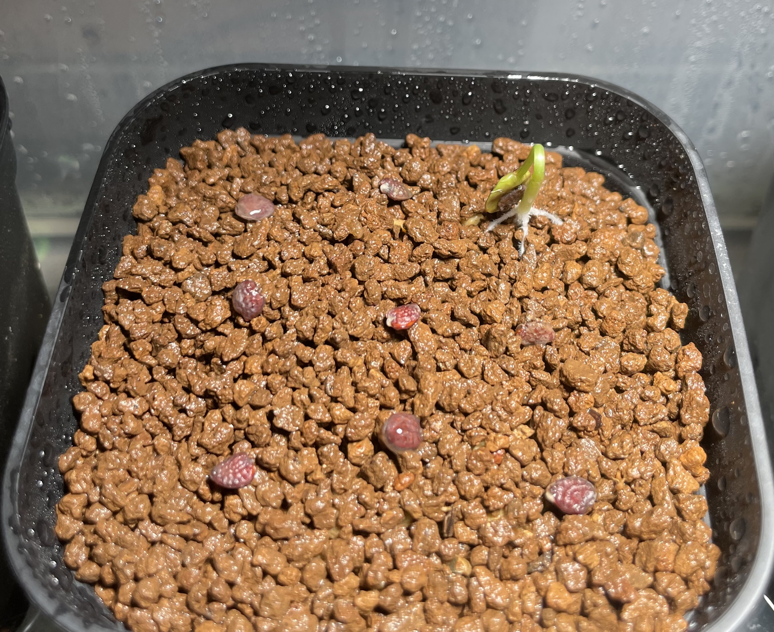 2025/2/8播種 2025/2/21播種数20粒/発芽数1粒播種前:ベンレートとメネデール希釈液...