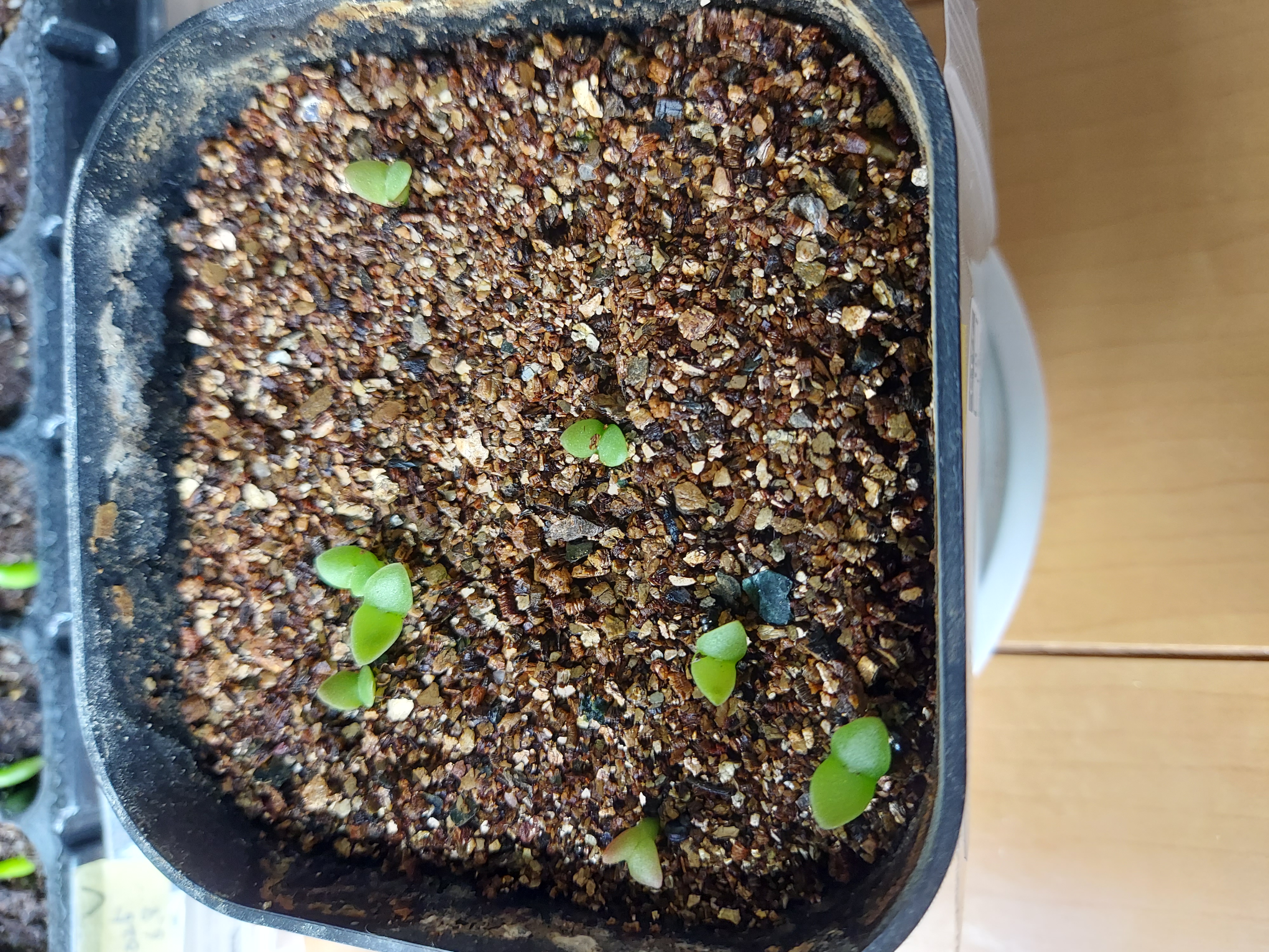 6/4 種まき6/10 発芽 3/10粒プレステラポット鹿沼土、赤玉土、日向土メネデール、ダコニ...
