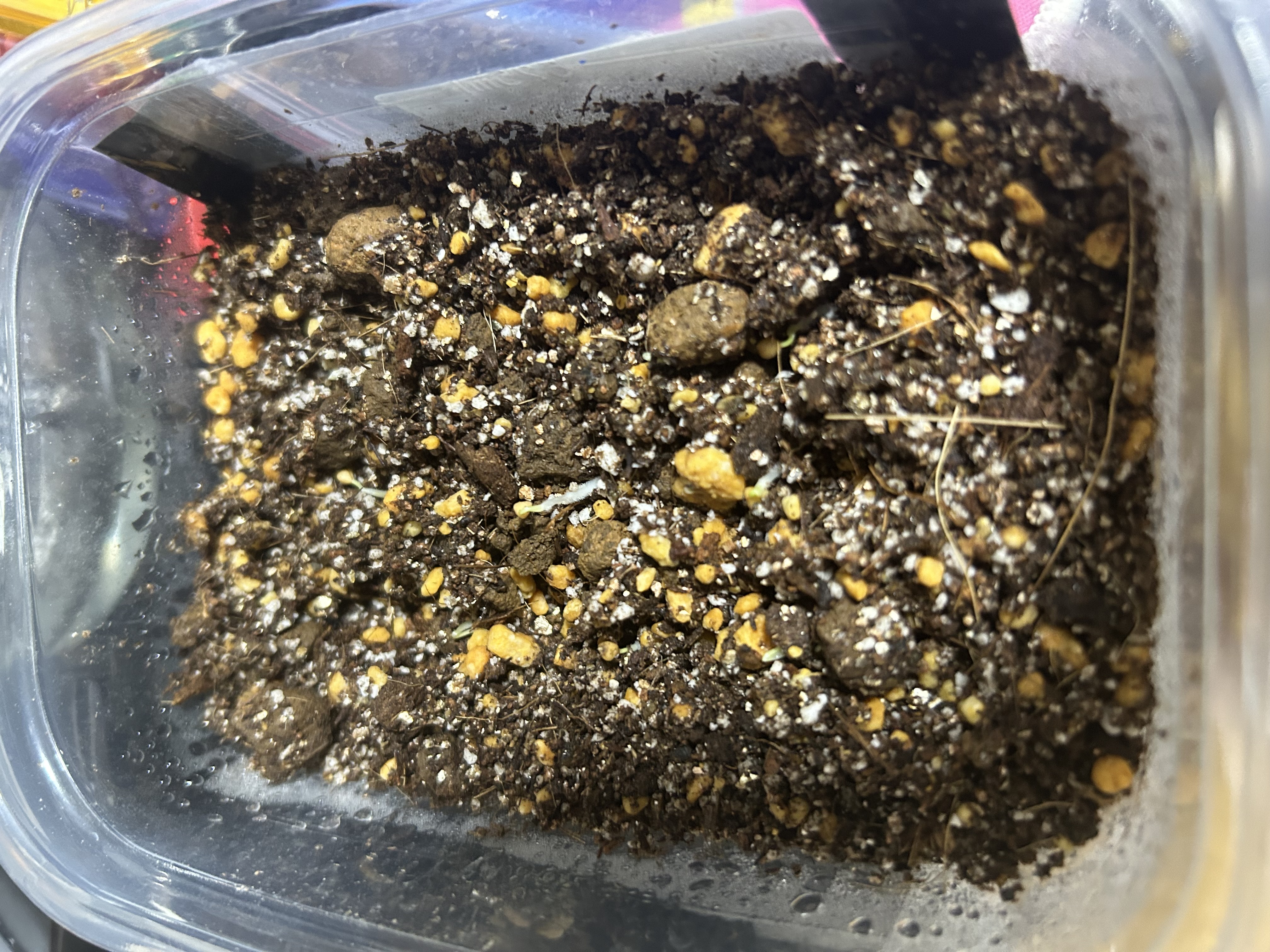 6/5撮影 土に撒いてタッパー管理してました5/28に撒いて撮影日に発芽を確認10粒あって7本発芽が...