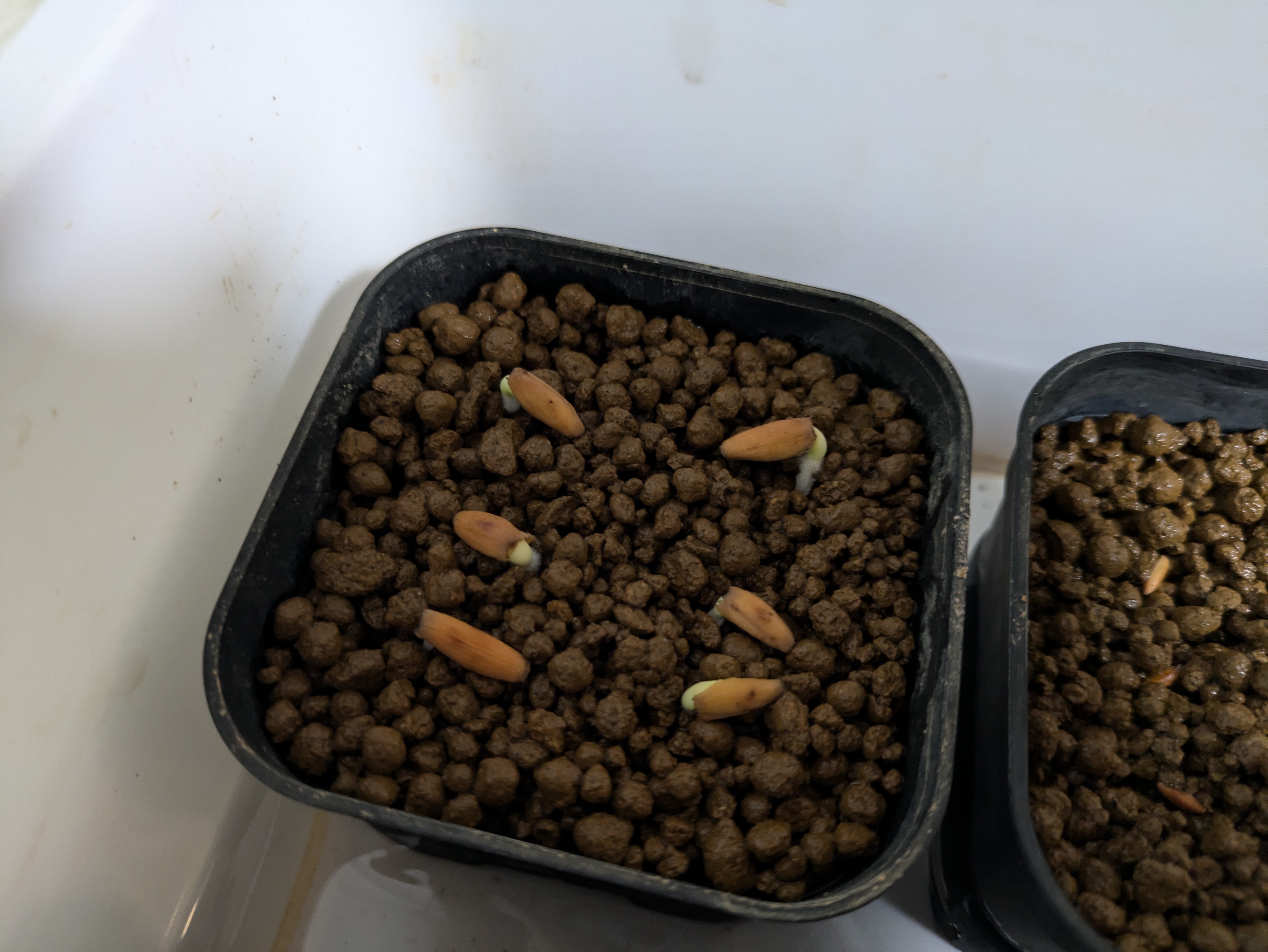 10上旬に六粒播種10日程で全部発芽してます播種する前は一週間程冷凍庫に保存してました振るいにかけた...