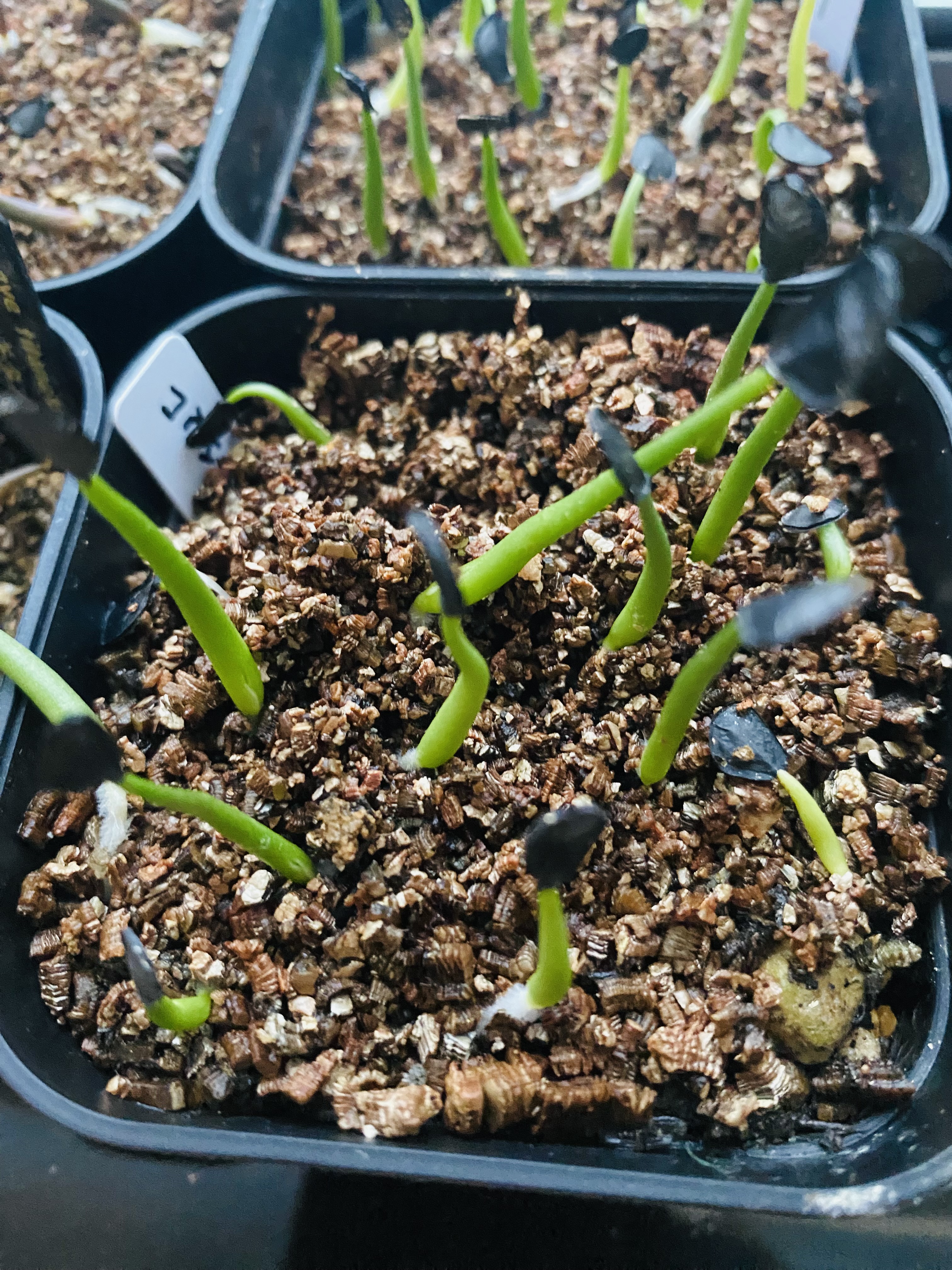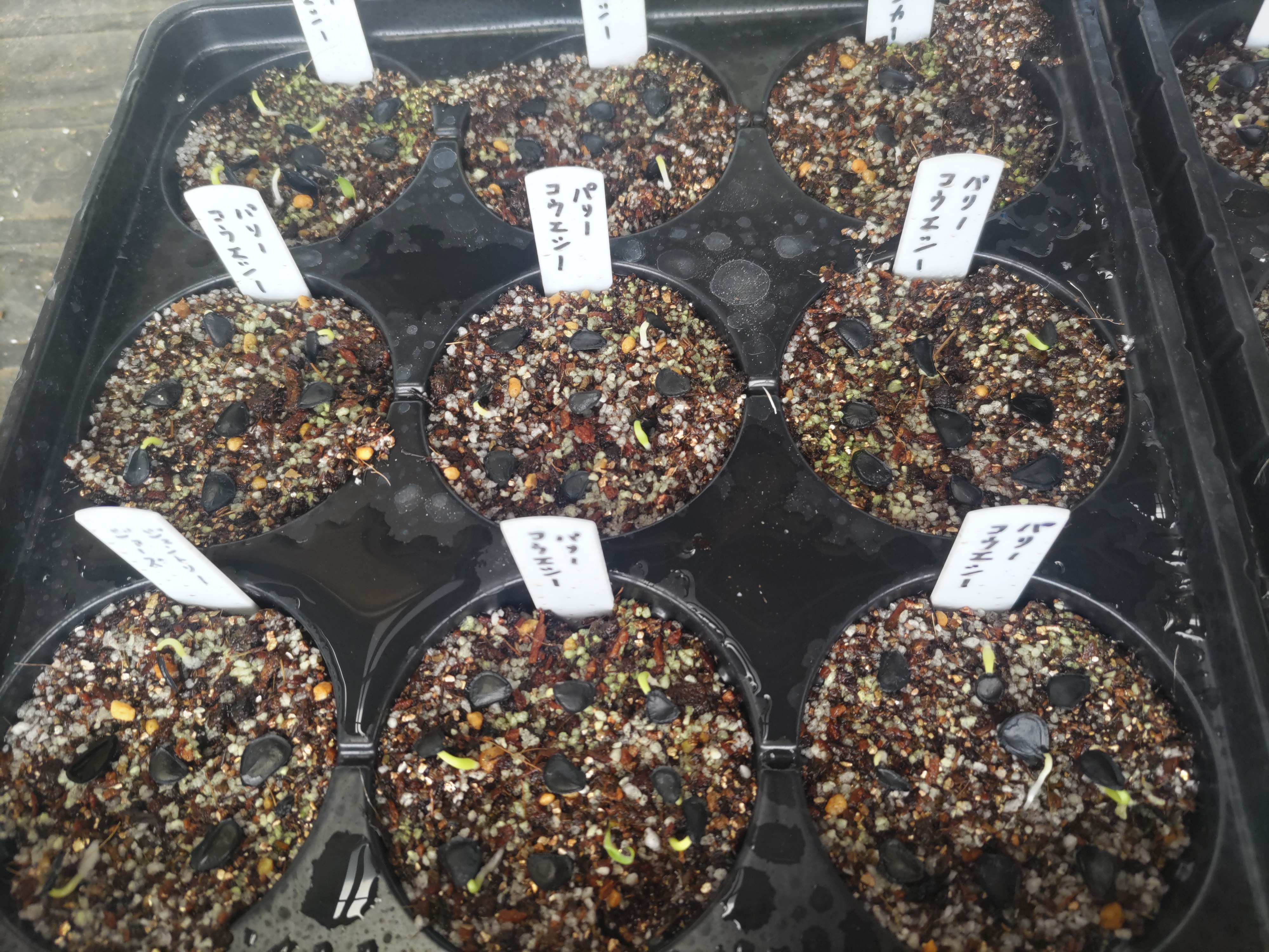 4月上旬に蒔いたコウエシー50粒がようやく発芽し始めました!3週間程かかって15粒程発芽しています!...