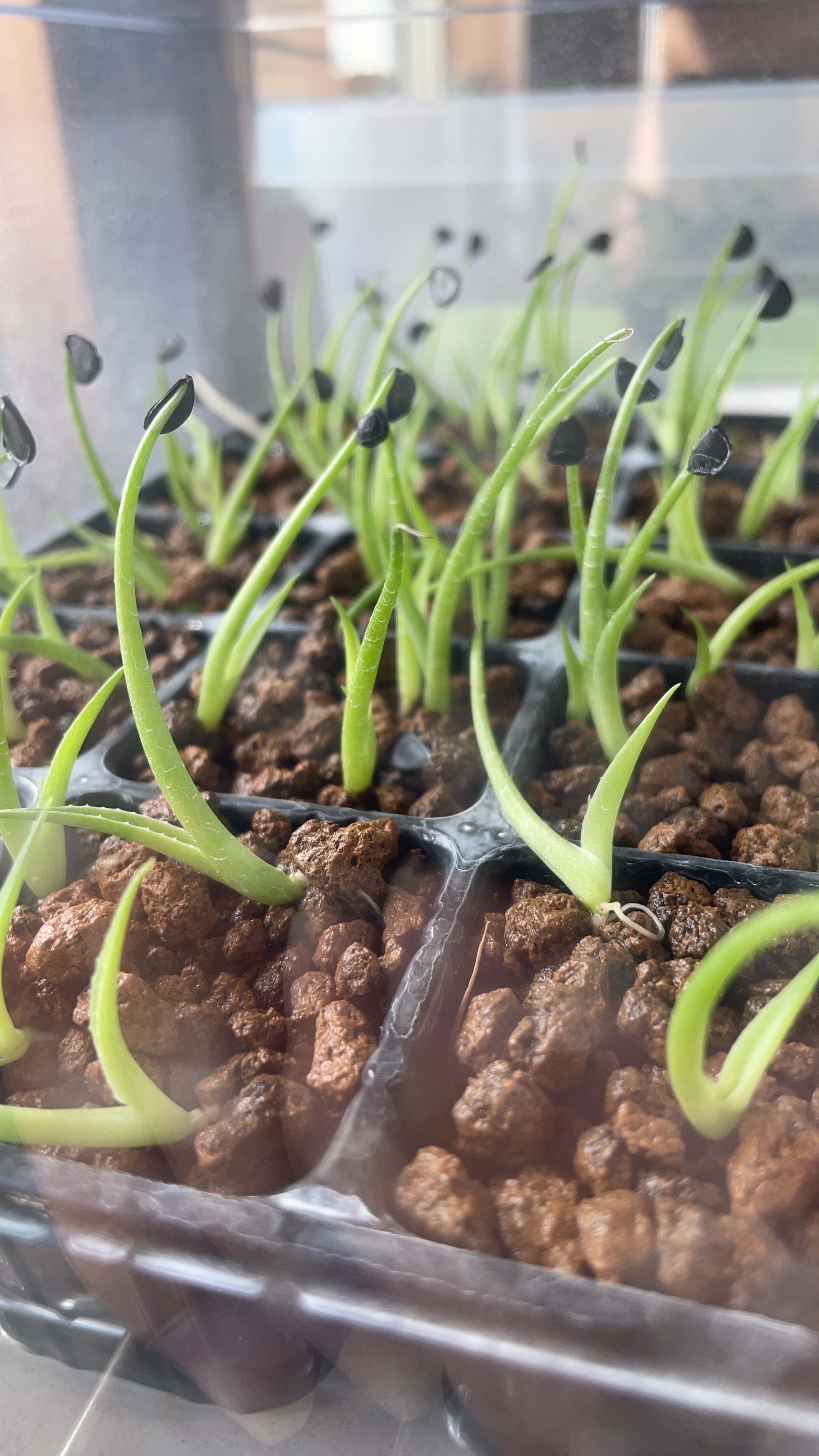 サンプルで同封頂いた種子。11粒入っており、内9粒発芽。播種後、約1ヶ月の状態。外気温が氷点下になる...