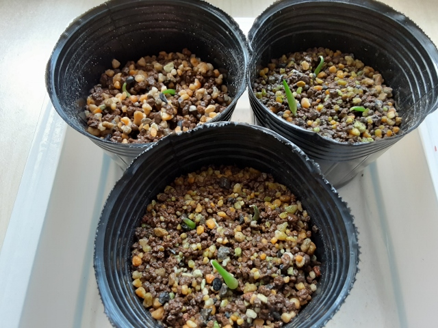 サービス種子 6/10だったが1つ溶かした。高湿度発芽後、適当な大きさ(だいたい1ヶ月)で常湿へ変更...