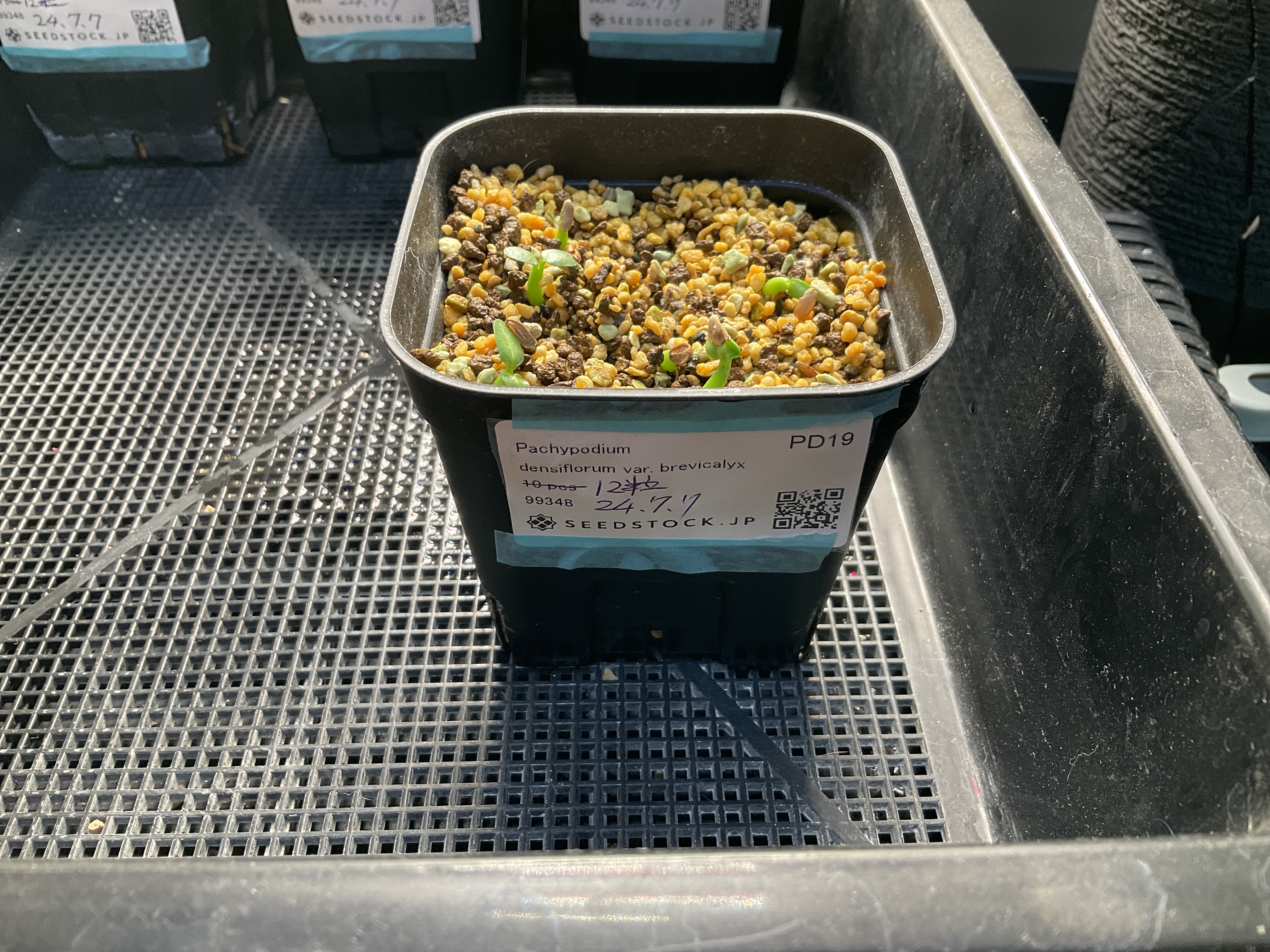 2025/5/25播種2025/7/16撮影パキポディウムブレビカリックス12粒中4粒発芽アガベパリ...