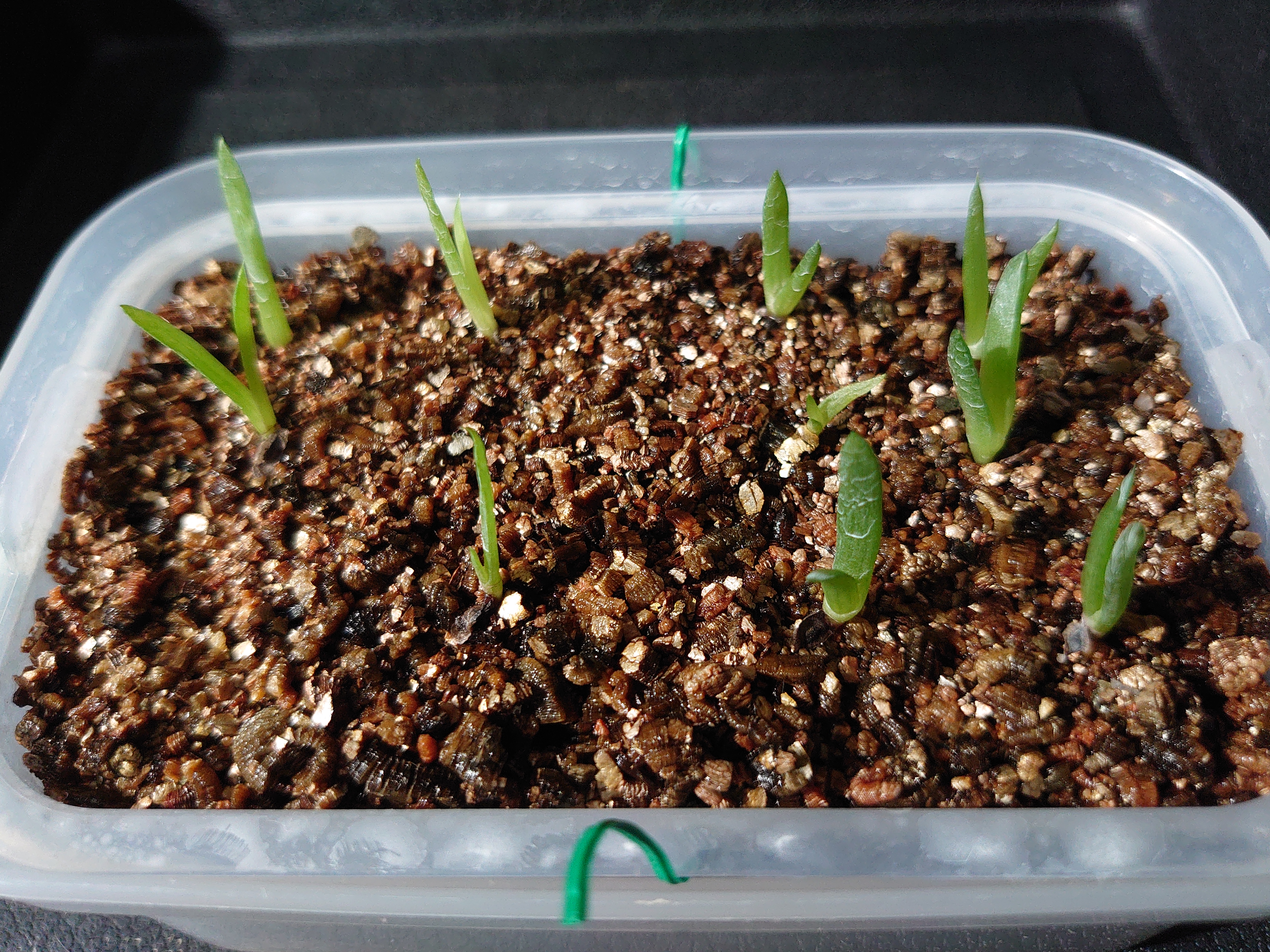 播種日3/15撮影日4/11播種数13発芽3少しずつ芽が出て来たのでまだでるかも赤玉、日向、軽石、鹿...