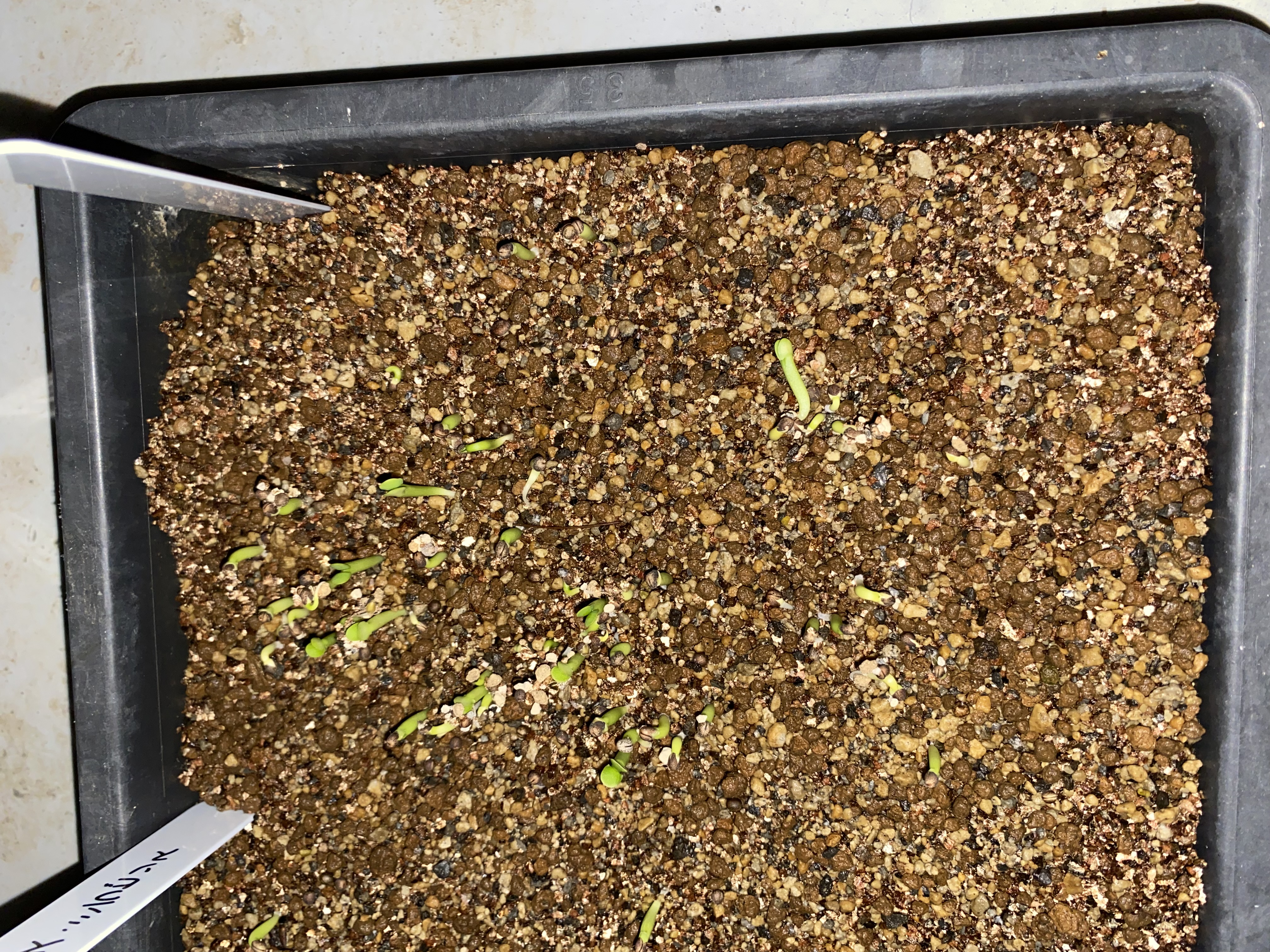 播種日2024.11/4 撮影日202411/11 播種数/発芽数100/50播種前24時間水につけ...