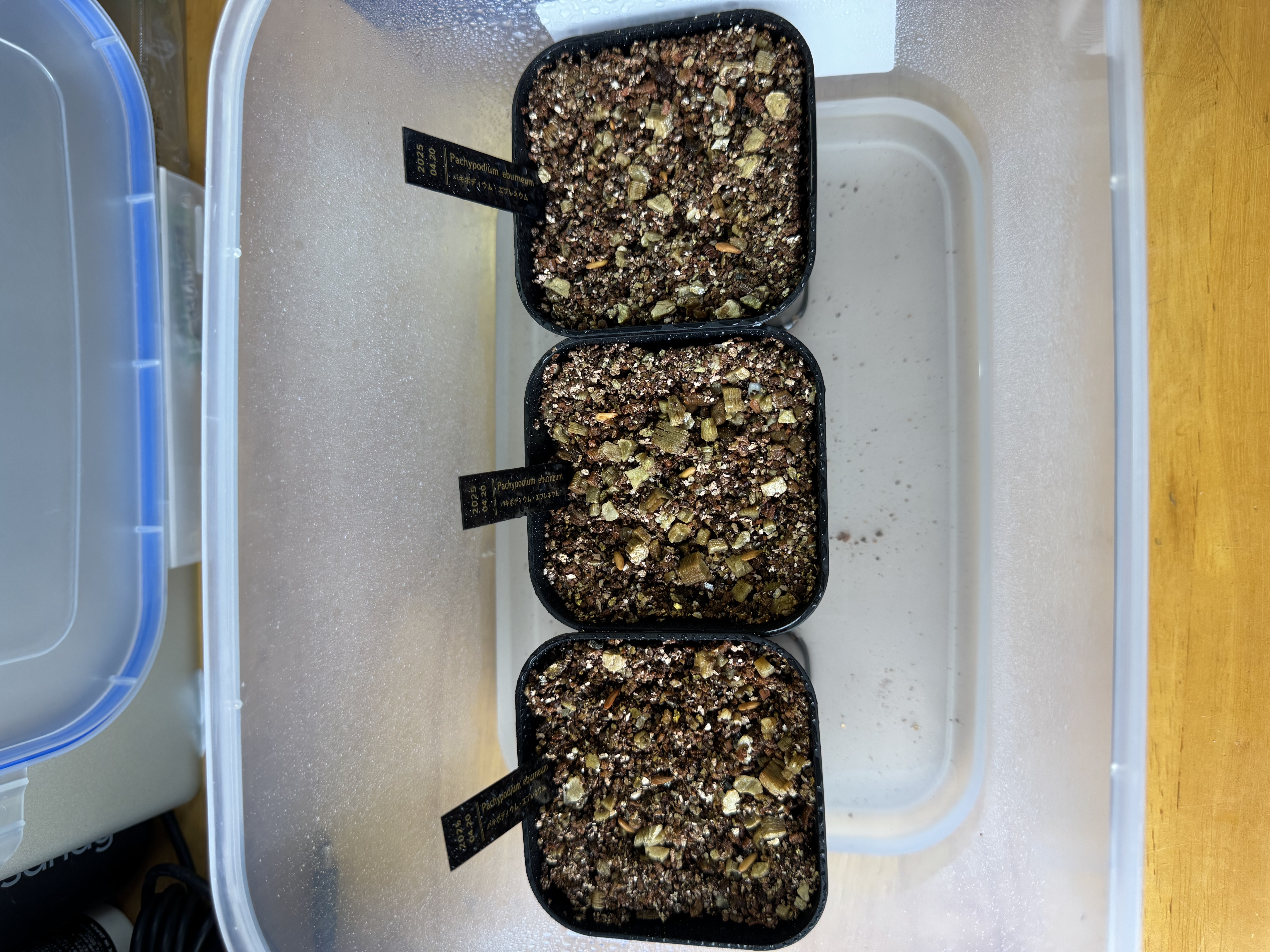 播種日 2025.5.31撮影日 2025.6.22播種数 13発芽数 4多肉植物用土を7割入れてそ...