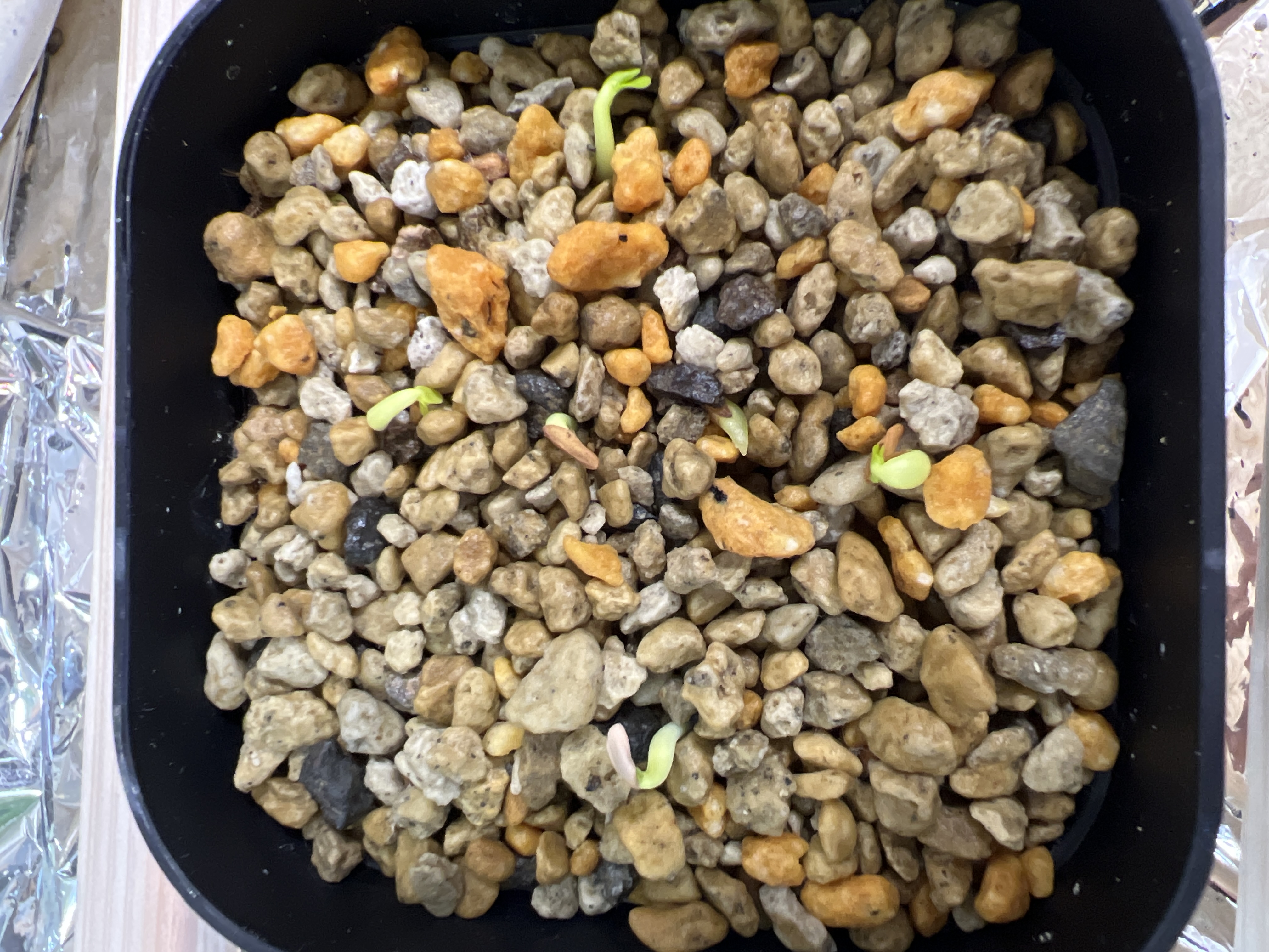 25年4月28日播種ベンレートに24時間浸水させキッチンペーパーに播種。カビも出ず3日ほどで発芽しま...
