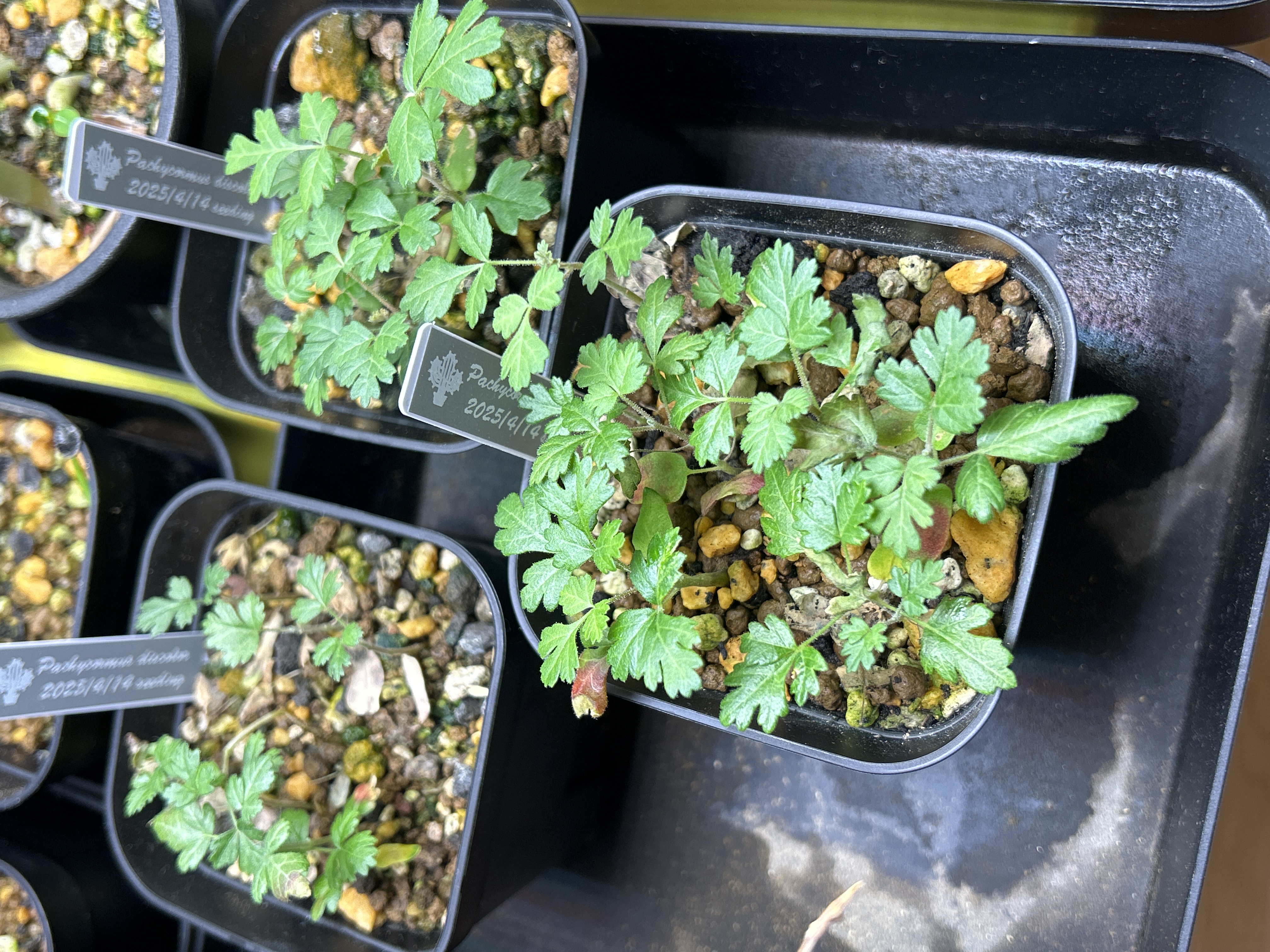 2025/4/25播種パキコルムスディスカラー4/10発芽撮影6/21ベンレート消毒後赤玉細粒に播種...