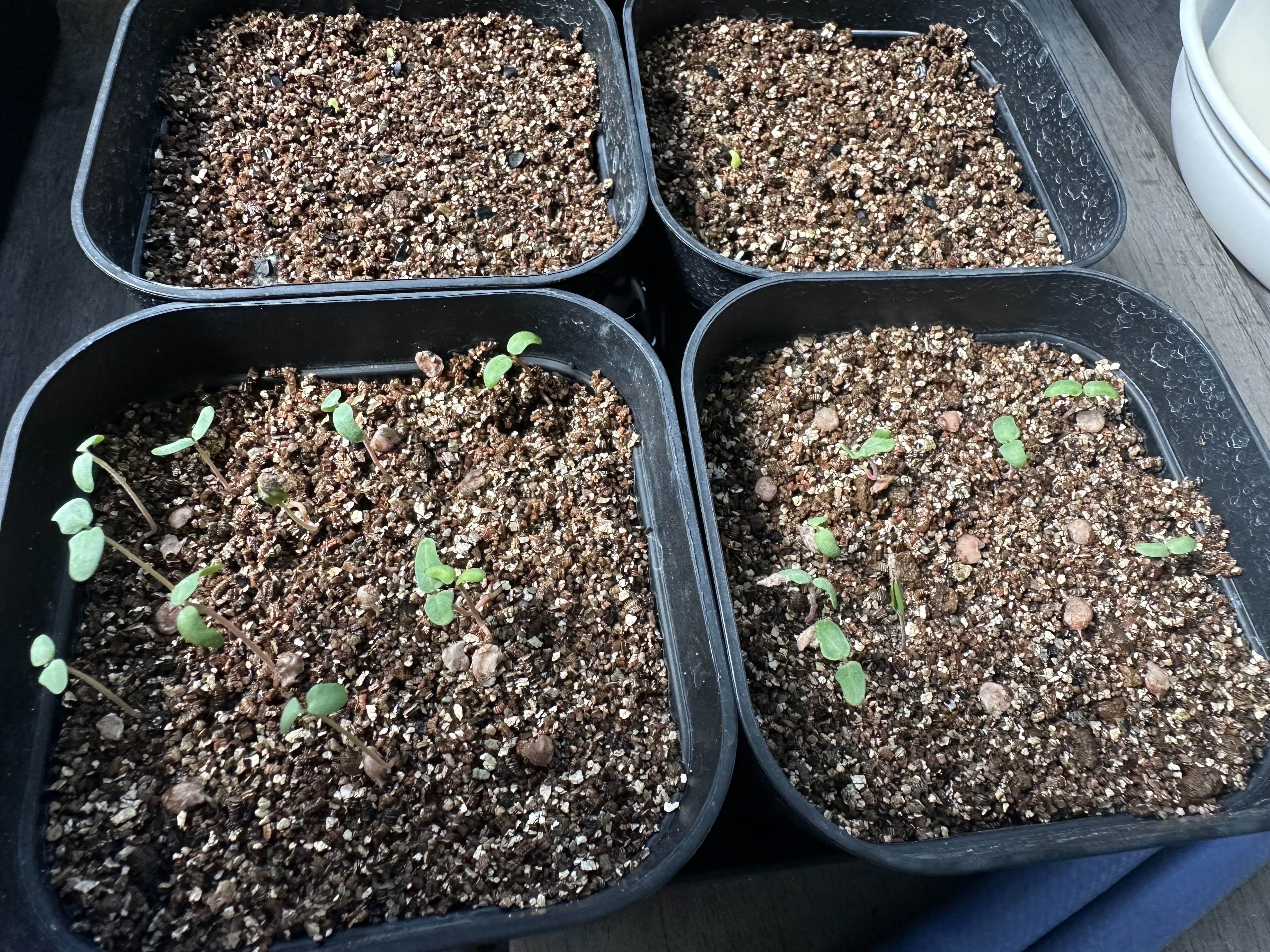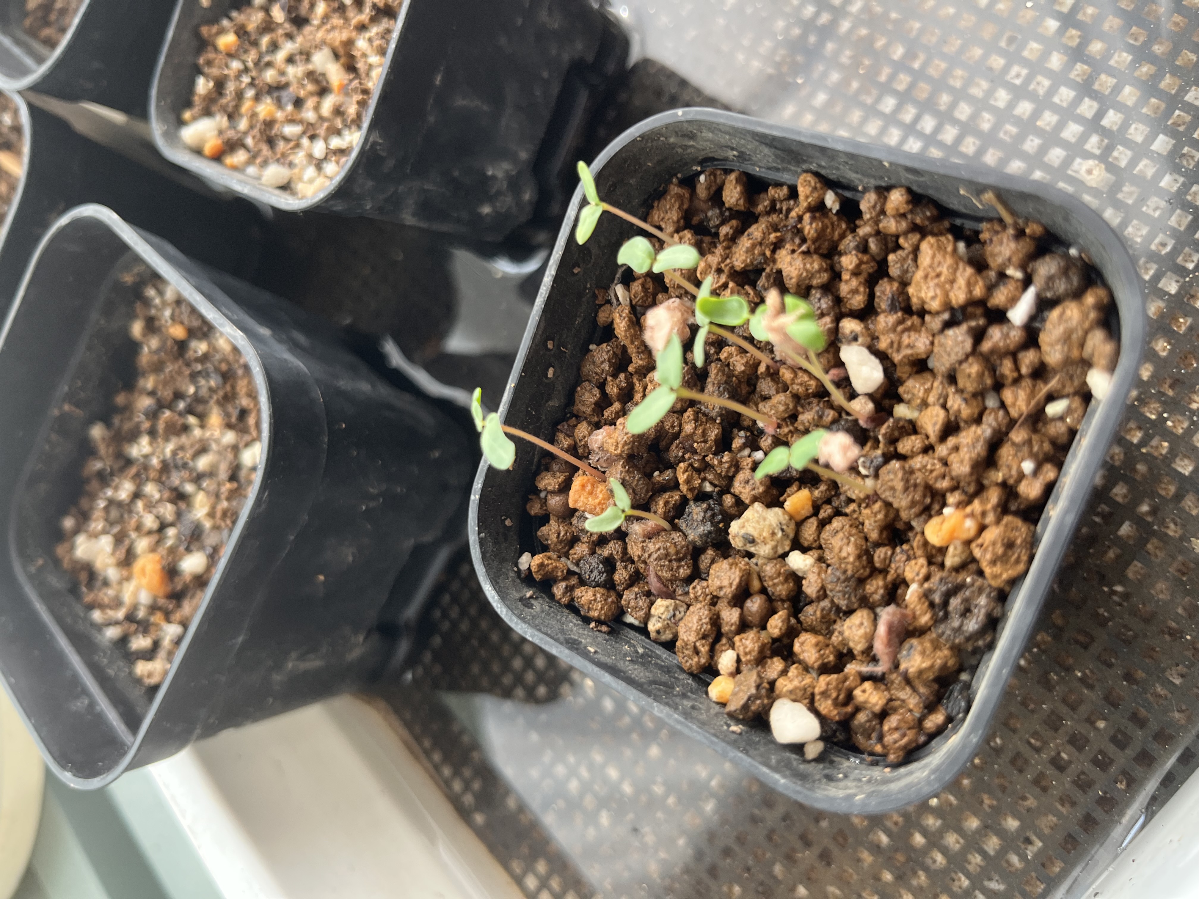 2025/3/23播種一度水切れさせてしまい葉が全て落ちたせいか成長が遅い様に感じます。わかりにくい...